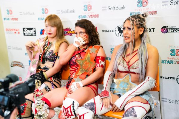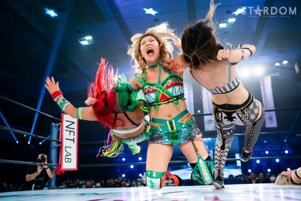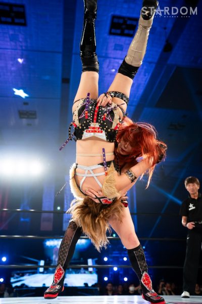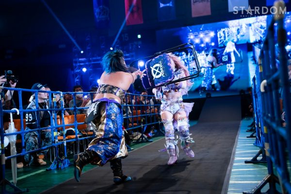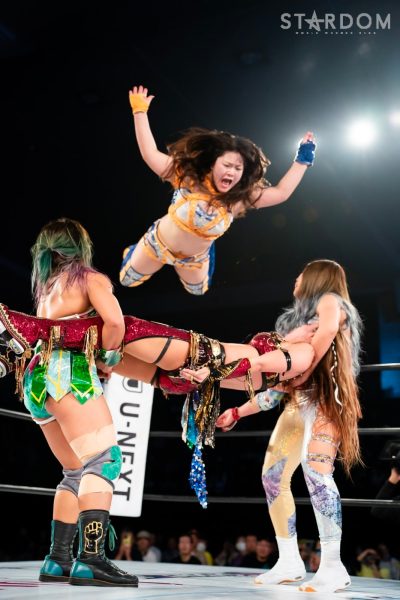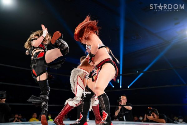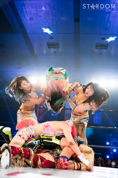 ドンナ・デル・モンドのバリバリボンバーズ、ジュリア&桜井まい&テクラ組が2度目の防衛戦。桜井が欠場していたため久しぶりのアーティスト戦となる。対戦相手は舞華&鈴季すず&メーガン・ベーン組。挑戦者組の舞華は王者組とのDDM同門対決で、舞華とともに世代闘争を提唱した鈴季が名乗りを挙げた。さらに鈴季とタッグを組む機会の多いメーガンがここに加わる。トリオでの実力こそ未知数ながら、舞華と鈴季は5★STAR GP決勝を争ったばかりで、初来日ながらいきなり赤いベルトに挑戦したメーガンはタイトル奪取こそならなかったものの相変わらずスターダム勢をパワーで圧倒してきた。それだけに、王者組には厄介な相手となることは間違いない。