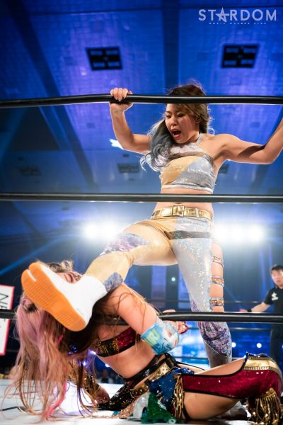 本来ならばなつぽい&安納サオリ組のゴッデス・オブ・スターダム王座にクイーンズクエストの林下詩美&AZM組が挑むゴッデス・オブ・スターダム王座戦が予定されていたが、詩美、なつぽいともに頚椎ヘルニアにより欠場。2人の欠場により、期せずしてAZMと安納サオリの一騎打ちに変更となった。AZMと安納は5★STAR GPにおける8・6浜松で対戦し、AZMが勝利。安納に初めてのリーグ戦黒星をつけたのがAZMだった。この黒星により安納は失速した感が否めないだけに、安納がリベンジを果たすか、それともAZMが返り討ちにしてみせるか注目のカードとなった。パートナー復帰後にあらためてタイトル戦をおこなうためにも重要な試合となる。