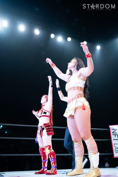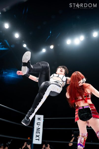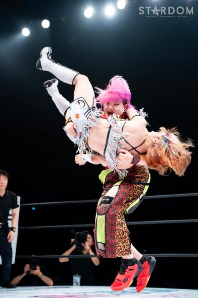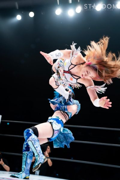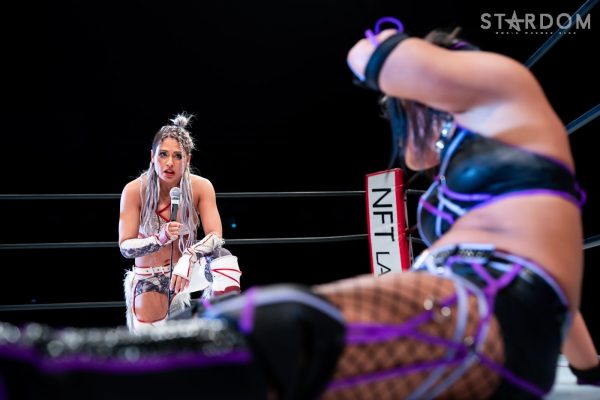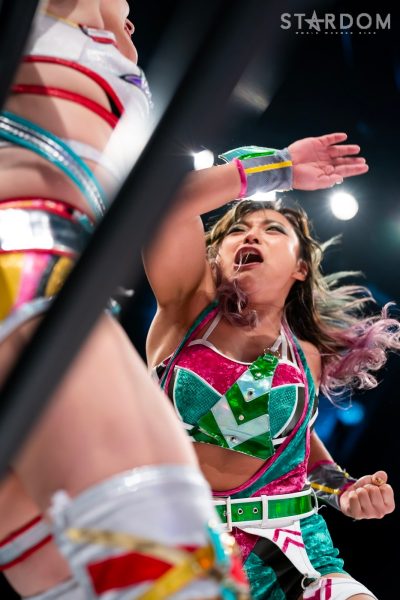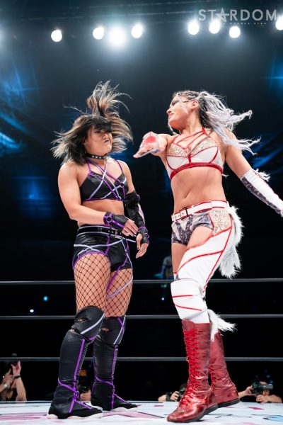世羅「クソッ。ああやって奇襲を仕掛ければ、確実に勝つんじゃないかってこっちもいろいろ考えてたわけですけど、やっぱりあっちがこっちを知りすぎてるんだろうなと思った。こっちももちろんあいつの性格はわかってるし、ああやって挑発すれば絶対に受けて立つのはわかってたし。ただ、いまのあいつは5★STAR優勝者? ノリに乗ってる鈴季すずとハイスピードチャンピオンの星来芽依でしょ。落としたくはなかったんだよね、初戦。奇襲したのにドローで終わるのはちょっとふがいない結果ではありますけど、我々今日でどんなタッグかわかってもらえたと思うので。これからバンバン大型の2人でバンバンバンバンスターダムの選手をなぎ倒していって、楽しみにしときな、残りのヤツら。(タッグリーグでの)狙い? もちろんすずの首だったんですけど、初戦だったし今日の奇襲も失敗しちゃったんで、とりあえず方向転換。アイツに並ぶには優勝しかない。優勝してすずと同じ位置に立って、あらためてあいつをボコボコにしてやりたいと思います」