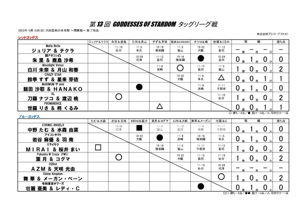 | ◆ブルーゴッデス公式リーグ戦 15分1本勝負 | ||