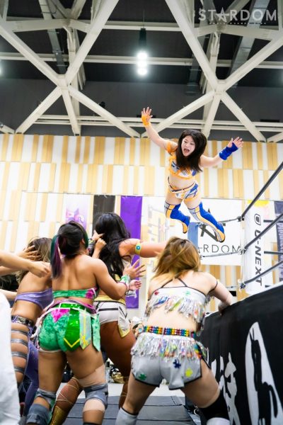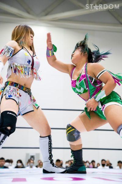 星来が先発に名乗りを挙げるとSTARSがいっせいに突進、静岡県伊東市出身の星来をつかまえると、飯田のキャメルクラッチに葉月とコグマがドロップキックの挟み撃ち。葉月が星来をロープに追い込んで顔面ウォッシュ。コグマが星来を踏みつけフットスタンプ。星来がコグマにエルボー連打。ダッシュを葉月が妨害しコグマがロープに振る。星来が切り返しクロスボディー。メーガンがコグマにドロップキック、串刺しボディーアタック、ショルダータックル、俵返し。コグマが返してエルボーで向かっていくがメーガンが一発で倒す。メーガンがコグマを抱え上げると飯田のダイブをキャッチし、まとめてバックフリップ。コグマがメーガンのエルボーをかいくぐり突進。メーガンがかわすとコグマがコーナーに上がる。メーガンが突進するとコグマが自軍コーナーに避難、葉月がミサイルキック。葉月のエルボーアタックをメーガンがキャッチ、担ぎ上げるとスタンプホールド。鈴季が葉月の背後からニーアタック連打。葉月の突進を星来が妨害し鈴季と連係で攻める。ダブルのドロップキックも決め、鈴季がリング下からドロップキック。葉月がかわしエプロンでフットスタンプ。さらに二段蹴りからフェースロックで鈴季を捕獲する。鈴季がエスケープすると葉月は「終わらせるぞ!」と叫んでブレーンバスター狙い。鈴季が切り返しジャーマン。葉月が立ち上がりブレーンバスター。鈴季も立ち上がりトラースキック、葉月がカウンターで二段蹴り。飯田が星来のドロップキックをかわしショルダータックル。星来が飯田をかいくぐりサイドからドロップキック。飯田が逆水平連打。星来がエルボー連打で反撃。星来の突進を葉月とコグマがカットし飯田がバックエルボー、STARSが合体フェースクラッシャー。しかし、星来が返してみせる。飯田がコーナーに上がると鈴季がカットしデッドリードライブ。鈴季と星来、メーガンがキックの挟み撃ち、星来がブレーンバスター。鈴季と星来が合体も葉月とコグマがDDT。メーガンがラリアットも葉月とコグマがロープを引いて場外に送り出す。コグマがプランチャで飛ぶがメーガンがキャッチしてSTARSに叩きつける。10分経過。鈴季と星来が合体のジャーマン。星来がジャックナイフもコグマがカット。星来はフィニッシュを宣言しラリアット。しかし飯田が飯田橋。鈴季がカット成功。葉月とコグマで鈴季にDDT。メーガンが葉月とコグマにラリアット。星来が飯田の顔面にドロップキック。飯田がラリアット。星来が丸め込みメーガンがラリアット。さらに星来が足を固めて首をロック。飯田がギブアップし星来の勝利となった。
