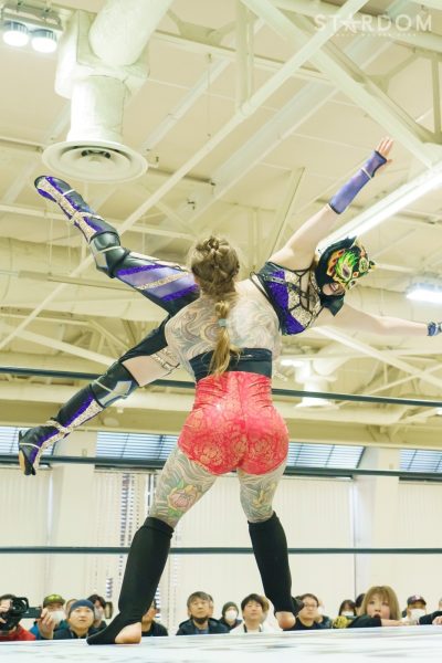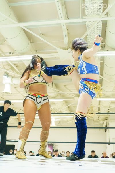 ゴッズアイの朱里&MIRAI&壮麗亜美&スカンジナビア・ハリケーン組と大江戸隊の刀羅ナツコ&渡辺桃&スターライト・キッド&琉悪夏組が8人タッグのイリミネーションマッチで激突。総力戦となるこの試合で勝利をつかむのはどちらのユニットか。