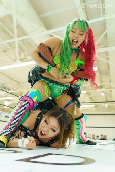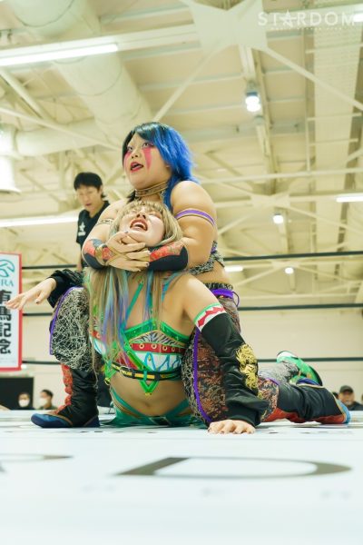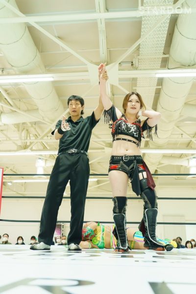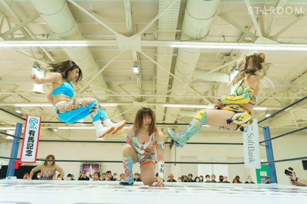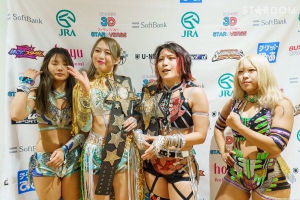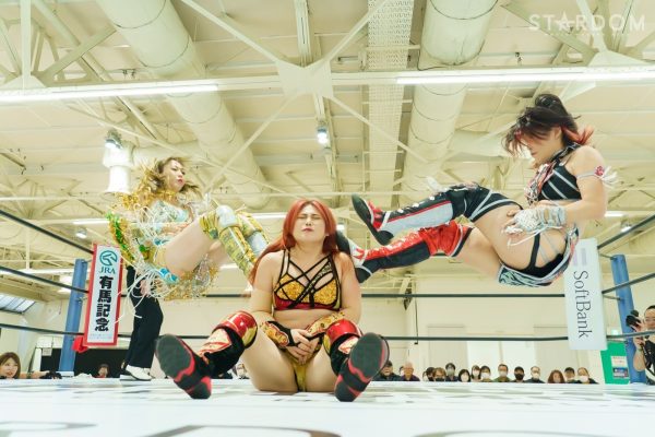 入場時の白川のダンスに星来もトライ、白川が自身と星来をコールする。試合は羽南と星来の先発でスタート。いきなり髪をつかみ合い、エルボーの応酬。羽南がロープに追い込むが星来が突進、羽南がエルボー、コーナーに振られると反転し、ダイビングボディーアタック。白川が乱入し、ドロップキックで合体。星来が羽南をカバーするが、1で返される。星来が羽南にドロップキック、髪を束ねると、怒る羽南をコーナーに叩きつけてヘアーホイップ、コーナーに追い込み顔面を踏みつける。葉月が入り、羽南と合体で攻撃。ドロップキックの挟み撃ちから羽南が背中にニーアタック。葉月が星来の後方からドロップキックを見舞い、顔面ウォッシュへ。葉月は「お返しだ!」と星来にヘアーホイップの連続からスリーパーに捕らえキャメルクラッチ、羽南のドロップキックを呼び込む。羽南が星来にボディースラムの4連発。星来が返すが、羽南が連続でカバー。羽南がロープに振ろうとすると、星来が切り返しクロスボディーアタック。白川が羽南に串刺しエルボー、ドロップキック。葉月が乱入し、羽南と合体を試みる。しかし、白川がかわして羽南に延髄斬り、葉月にネックブリーカー。白川は羽南にDDT狙い、こらえられると打撃の連打、ミドルキックでダウンさせる。白川の突進に羽南が払い腰、ランニングエルボースマッシュ。葉月が白川にセントーン、フェースロック。リング下では羽南と星来が髪をつかみ合う。白川がエスケープすると、葉月とエルボーの応酬。白川がカウンターのローリングエルボーで葉月をダウンさせる。星来が葉月にドロップキック連発。白川が羽南にパロ・スペシャル、星来が葉月にサブミッション。葉月が2人まとめてコードブレイカー、星来に串刺しエルボー、ミサイルキック。星来が返すと、葉月はフェースロック。星来が葉月のサブミッションから脱出。ブレーンバスターの掛け合いは、どちらも譲らず。葉月が星来を妨害しサンドイッチ攻撃。星来が返すと葉月の突進をかわし、白川が串刺しエルボー、コルバタ式河津落としを星来のソバットから決める。残り3分。白川のハイキックと星来のドロップキックが同時に決まると、場外に同時プランチャも敢行。星来が葉月を戻しネックブリーカー。葉月が返すと、コーナー上の星来とエルボーの打ち合い。葉月が雪崩式ブレーンバスター、星来が向かっていくと二段蹴り。羽南が2人を場外に出し、葉月がトペスイシーダ。残り1分。葉月と羽南が合体フェースクラッシャー。しかし、星来の肩が上がる。葉月がボディースラムからダイビングセントーン。かわした星来が丸め込み。葉月が返して丸め込みの応酬。しかしゴングが打ち鳴らされ、時間切れ引き分けに終わった。試合後も、羽南と星来が激しく乱闘。