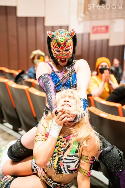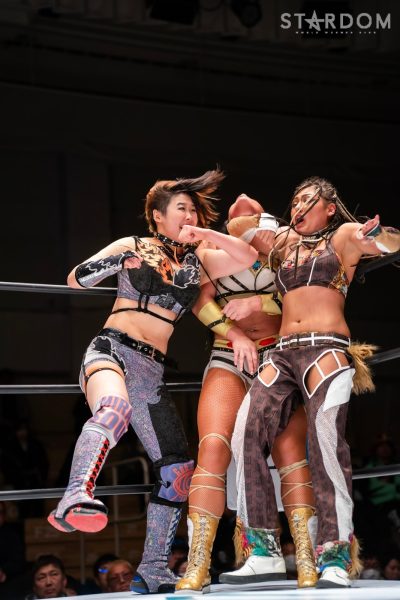 ドンナ・デル・モンドのアーティスト・オブ・スターダム王者、桜井まい&テクラ組がSTARSの葉月&飯田沙耶組と対戦。葉月&飯田組にとってはSTARSをアーティスト王座挑戦に向けて絶好のチャンス。現王者の桜井&テクラを破れば年明けのチャンスも生まれそうだ。