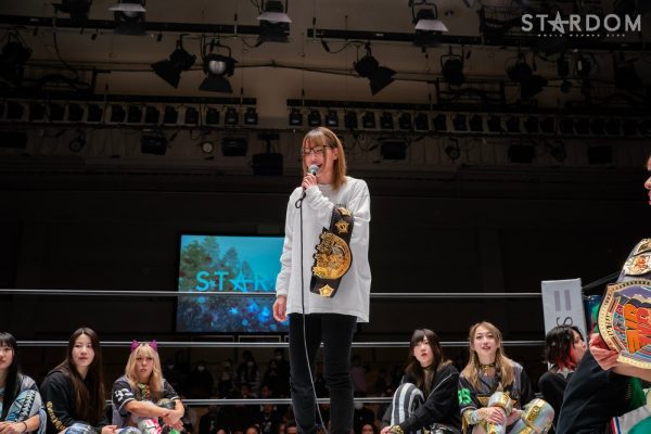 「試合は負けてしまったんですけど、両国で2人とあたるので、そのときたくさんお返ししたいと思います。そして、今日、イッテンヨン、IWGP(女子)挑戦、言わせていただきました。2023年、自分自身動きがなかったというか、たくさん悩んでた部分があって、でも、この一年いろいろ悩んだからこそ、自分の道が見えたというか、やっぱり私は次はIWGP、個人として取りたい。私のこの腰にあのベルト、絶対にほしい、そう決意しました。なのでイッテンヨン、このチャンス必ずつかんで、この腰にあのベルトを巻きます」