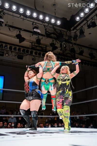 ジュリアがメーガン、舞華が鈴季に襲いかかり場外へ。MIRAIと安納は視殺戦から握手。安納がヘッドロックにとるとMIRAIが取り返す。グラウンドから安納の延髄、MIRAIのドロップキックをかわし合う。安納がMIRAIの髪をつかんで挑発、舞華はジュリアにタッチさせず自分が出てきて鈴季と対峙。鈴季がヘッドロック、舞華がエプロンに送り出し突進。鈴季が止めてリング下から舞華にドロップキック。舞華は鈴季のドロップキックをかわしてショルダータックル。メーガンが入るとジュリアがリングイン。ロックアップからバックを取り合いメーガンがマットにジュリアをたたきつけてヘッドロック。ジュリアが取り返しヘッドロック。メーガンがヘッドロックに切り返しグラウンドへ。ジュリアが脱出しドロップキックもメーガンがこらえる。ジュリアは手を引くが「重てえな、テメエ!」。メーガンがジュリアを軽々とボディースラム。片足でカバーするがジュリアが返す。メーガンはコーナーに追い込みジュリアに逆水平。鈴季がジュリアに串刺しエルボー、ドロップキック。安納がジュリアにミサイルキック。フィッシャーマン狙いはジュリアがこらえてドロップキック、後方にスープレックスで叩きつける。MIRAIが安納をかいくぐりショルダータックル、串刺しラリアット、ミサイルキック。安納が返すと、エルボーの応酬に。MIRAIがエスケープすると安納がロープを蹴り上げ張り手。MIRAIが突進を止めて後方に投げつける。ジュリアが入りMIRAIと合体バックドロップ。MIRAIがラリアットを放つがメーガンがカット。安納がMIRAIに丸め込み、延髄斬り、フィッシャーマン。鈴季がタッチを求めるが安納は答えずMIRAIにバックドロップ。タッチをして鈴季がリングイン、MIRAIに串刺しニーアタック、サッカーボールキック。舞華が鈴季に串刺しラリアット、ショルダータックル、滞空時間の長いブレーンバスター。鈴季が返すと、舞華はスリーパーホールド。MIRAIが安納、ジュリアがメーガンにサブミッションで援護。10分経過。舞華が鈴季へのスリーパーを継続し、胴締めに移行する。鈴季がエスケープしカウンターのエルボー。エルボー連打で舞華がダウン状態。鈴季がテキーラショットを狙うが、舞華がこらえてショルダータックル。舞華の突進に鈴季がスパニッシュフライ。顔面蹴りの連続を舞華がこらえてパワーボム。鈴季が跳ね返すとジャーマン、舞華が立ち上がりバックドロップ、両者の打撃が交錯してダウン。ジュリアとメーガンが入り、ジュリアがエルボー連打。メーガンが一発で倒すが、ジュリアがさらに連打で向かっていく。ジュリアが飛びついて蜘蛛の巣にメーガンをとらえる。メーガンが切り返してジュリアをマットに叩きつける。ジュリアが突進をかわすとMIRAIと共闘し次々とミサイルキック。しかし、メーガンが返してみせる。15分経過。ジュリアがメーガンにバックドロップ狙い。舞華とMIRAIがラリアットでメーガンを倒し、ジュリアが丸め込む。メーガンが返すと、ジュリアがサブミッション。しかし安納のカットが成功。ジュリアがメーガンを羽交い絞め。舞華とMIRAIがコーナーに上がるがカットされる。鈴季と安納がフランケン、ジャーマン、ビッグブーツの競演。メーガンがジュリアをエプロン越しにジャーマン。ジュリアがバックドロップでやり返す。ジュリアとメーガンがエルボーの打ち合い。メーガンが打ち勝つとジュリアが張り手。メーガンが持ち上げるとジュリアがマットに叩きつける。舞華と合体でジュリアがメーガンにジャーマン。鈴季が舞華、安納がMIRAIを場外へ送り出しトラースキック、メーガンがジュリアにパイルドライバー。しかし、舞華のカットが間に合う。舞華とMIRAIが合体も、メーガンがMIRAIと舞華をまとめてバックフリップ。20分経過。メーガンは安納を持ち上げ場外に投げ捨てる。さらに鈴季も持ち上げて場外へ。ジュリアを引き起こすとライガーボム。しかしジュリアが返しみせる。メーガンがジュリアを再度引き起こしF5。3カウントが入りジュリアがメーガンに敗れた。