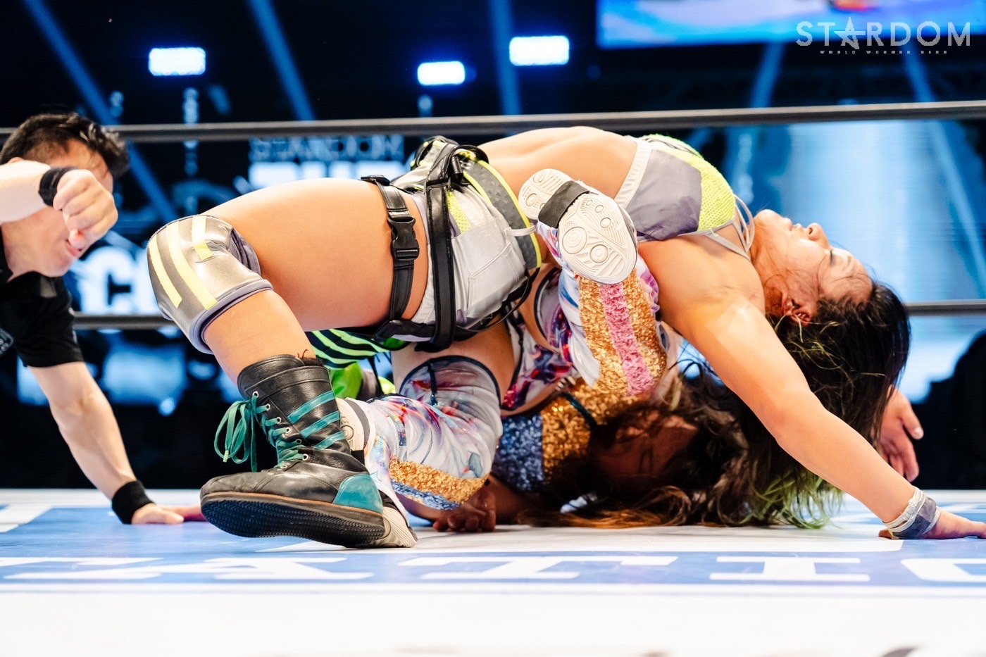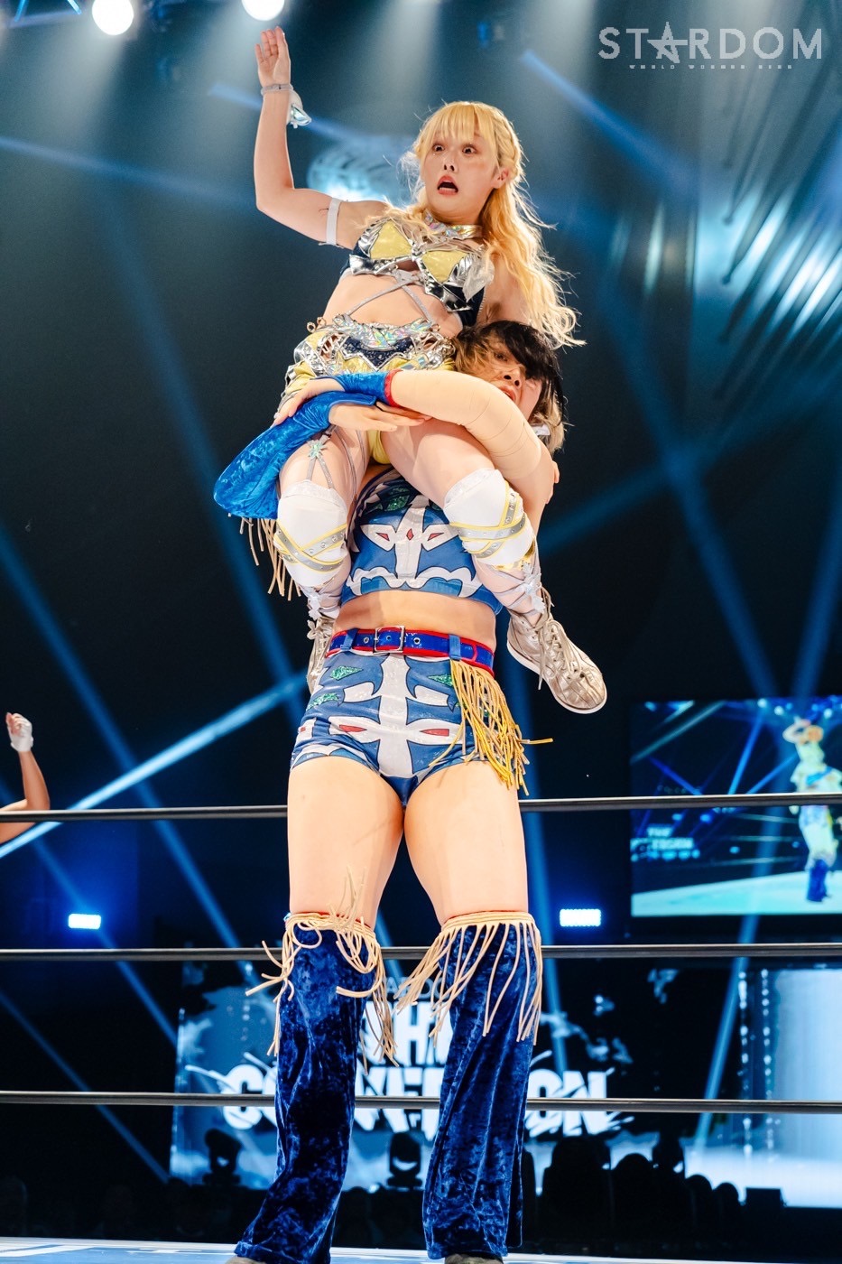福岡での地元凱旋でゴッデス・オブ・スターダム王座を奪回した葉月&コグマ組が2度目の防衛戦。相手はNEW BLOODタッグ王者でもある羽南&飯田沙耶組で、前日に同王座を防衛したばかり。STARS同門対決とは言え、ベルトが懸かればユニットは関係ない。FWCは長期政権の足掛かりをつかみにかかり、wing☆goriは史上初のタッグ2冠が目の前にある。タッグ屋ならではのスリリングな攻防の末、最後にベルトを巻いているのはどちらのチームか?
