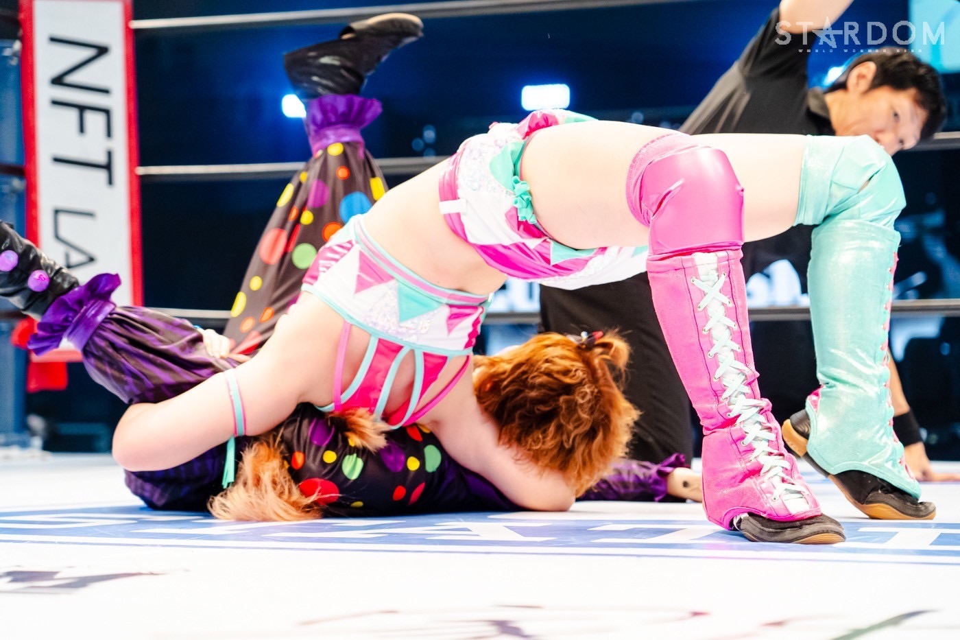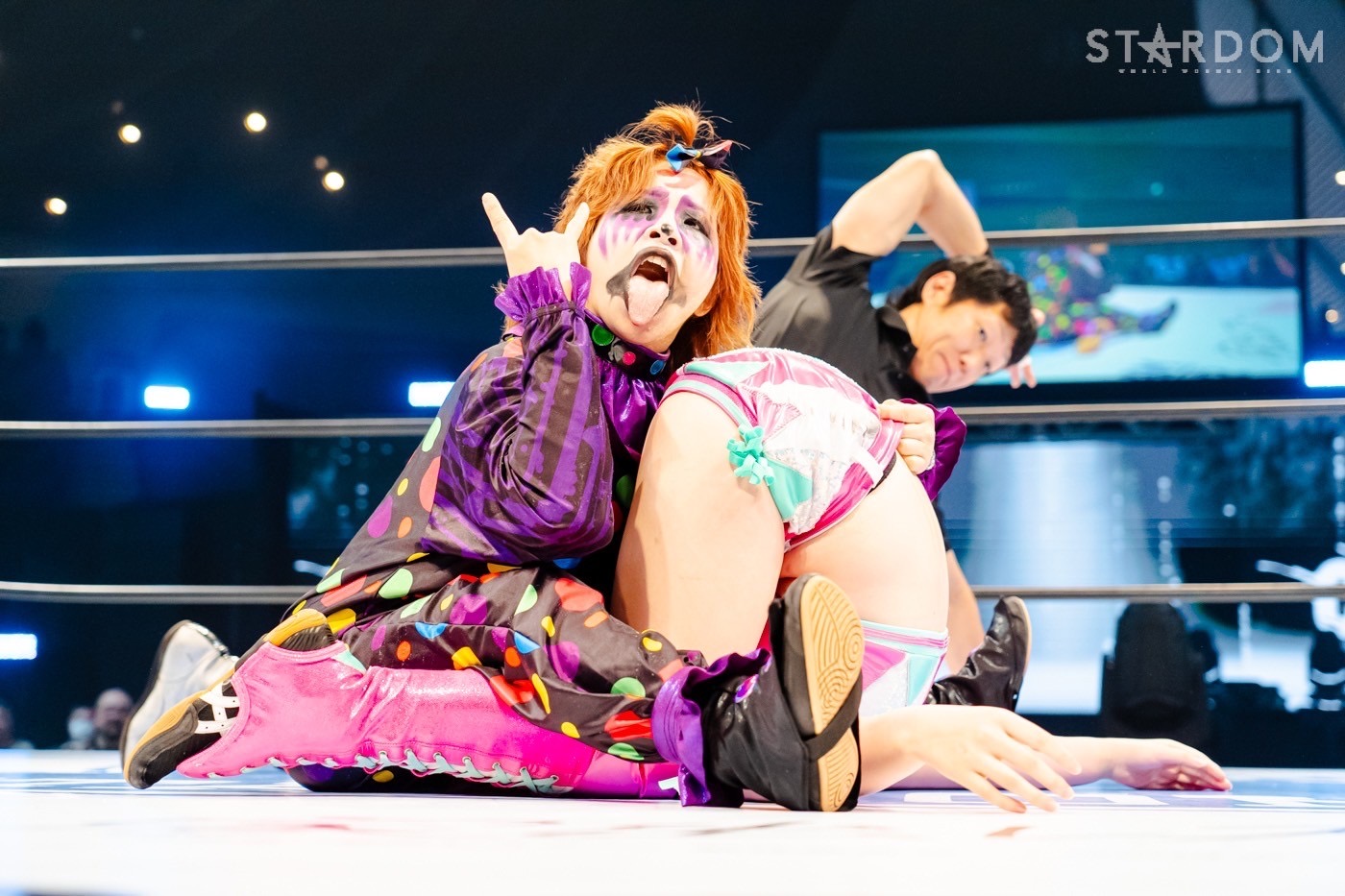 (2)〇吏南(7分55秒、Pink♡Devil→片エビ固め)天咲●