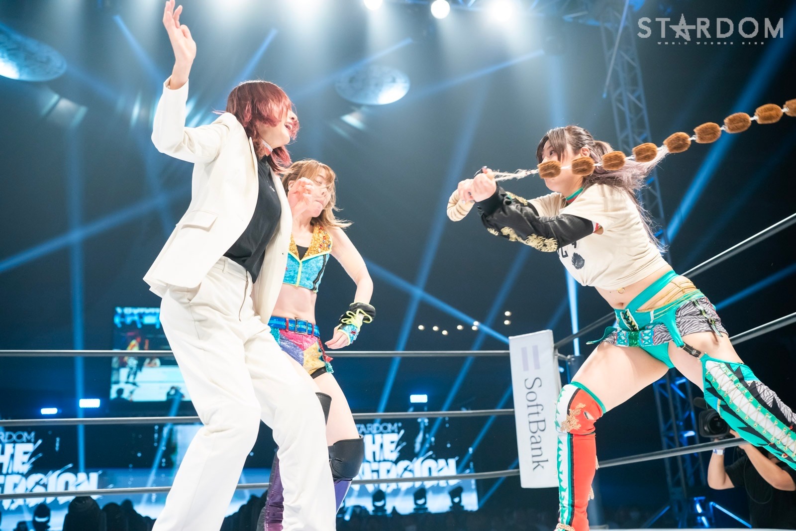 HANAKOが先発に名乗りを挙げると、なつぽいと向かい合う。HANAKOが手を上げて誘うが、なつぽいは届かない。なつぽいはコーナーから手を上げてHANAKOを誘う。HANAKOはなつぽいをデッドリードライブで落としてヘッドロック。なつぽいがロープに振ろうとするが、HANAKOはヘッドロックを離さずに絞り上げる。HANAKOがバックを取り高々と持ち上げる。なつぽいが体を入れかえ丸め込む。返したHANAKOがショルダータックル、なつぽいのクロスボディーをキャッチ。返したなつぽいがドロップキック。水森がHANAKOにボディープレス、なつぽいを肩車するが、息が合わずに白川に蹴り飛ばされる。白川が水森をコーナーから挑発、ローキック、吊り天井を仕掛ける体勢でフットスタンプ。HANAKOがアルゼンチンから水森をコーナーに叩きつけ、串刺しボディーアタック、ニードロップ。水森はバックドロップ狙いをかわしてドロップキック。なつぽいがHANAKOにネックブリーカー、ダイビングボディーアタック、腕十字。しかし、白川がカットする。なつぽいが白川にアームホイップ、2人まとめてドロップキック。HANAKOが返すと、なつぽいにバックブリーカー、顔面ビッグブーツ。白川の突進をなつぽいがかわす。白川はフェイントをかけてコーナーから延髄斬り。なつぽいが返すと、白川の打撃をかいくぐる。白川もなつぽいの打撃をかいくぐる。なつぽいがバックキックからバックラッシュ。水森が白川に串刺しラリアット、ダイビングショルダータックル、ギロチンドロップ。白川が返すと、HANAKOが乱入しボディースラム、白川に指示を出して持ち上げると、水森の上にトルニージョプレスで投下する。白川は水森にエルボー、コーナーに上がるとなつぽいが落として、水森が変型ネックブリーカー。なつぽいのトラースキックから水森が前方に叩きつけラリアット。しかし、白川が返してみせる。水森は白川を引き起こし肩車。白川が切り返し水森をマットに叩きつける。白川はグラマラスドライバー狙い。水森が切り返してラリアット。白川が返すと、水森が三角飛びラリアット。白川がかわしHANAKOがブレーンバスター、白川がダイビングしての十字固め。10分経過。水森が丸め込むが2カウント。白川がエルボーでダウンさせ、引き起こすとグラマラスドライバーMINA。水森が返せず3カウントが入った。