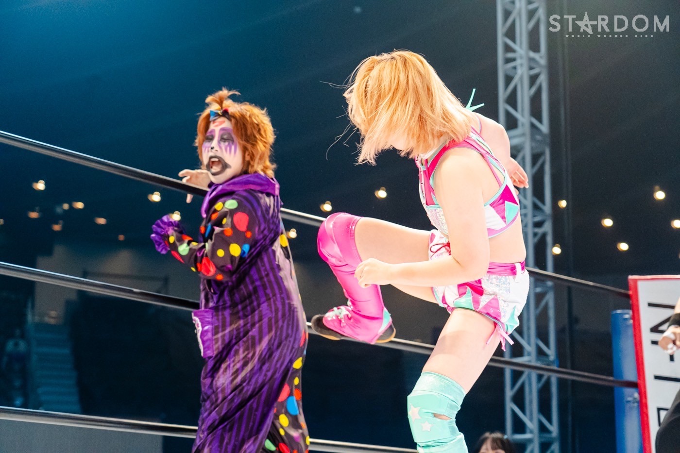 スターライト・キッドと星来芽依が一騎打ちの空中ハイスピードバトル。キッドは現在ユニット無所属で、星来はパートナーの鈴季すずが欠場中。純粋なシングルマッチで、白黒つくか?