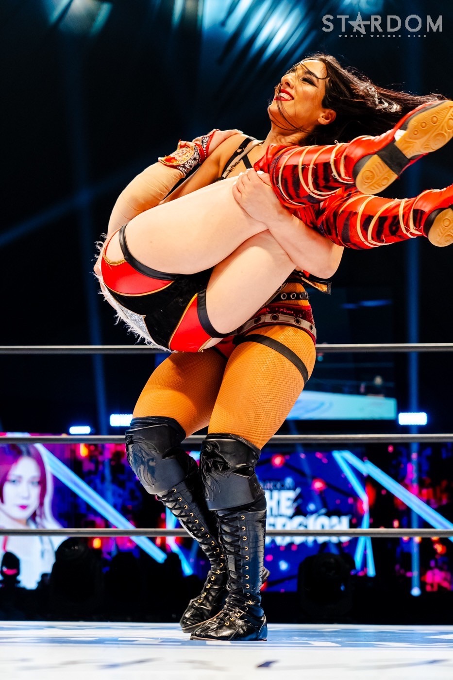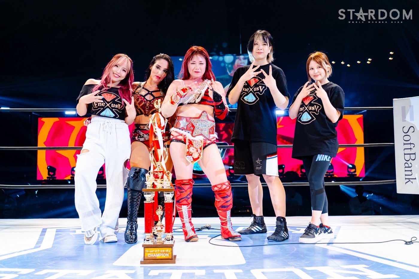 「約1年前に日本に来て、いったんスターダムを離れたときの相手が朱里だった。そしてスターダムに戻ってきて、赤いベルトを巻いていたのが同じユニットのメンバーの舞華だった。舞華は尊敬してる。心の底から尊敬してる。一緒にこれからもチームとしてやっていく。個人としても闘っていく。そしていまE neXus Vは私のホームになった。次にまた、挑戦のチャンスをつかみたい」