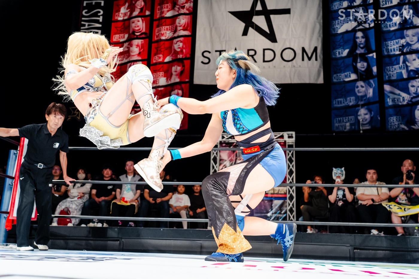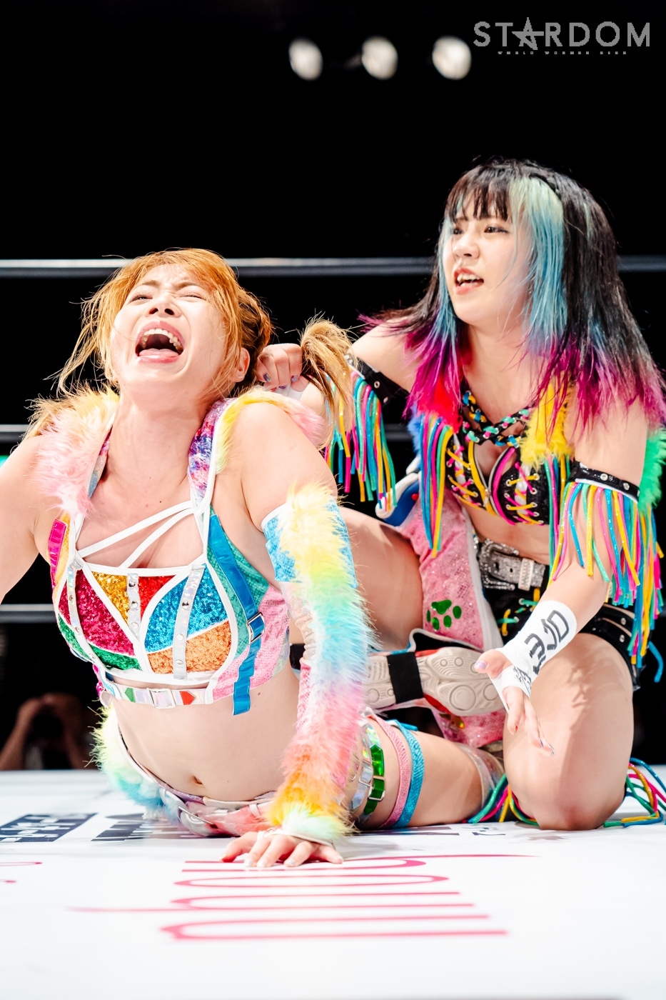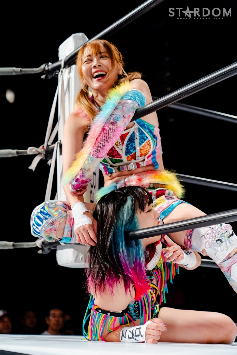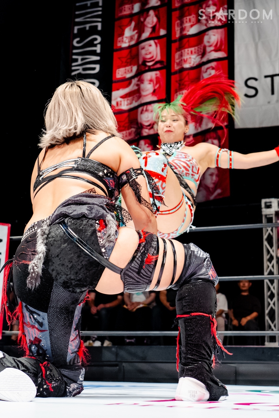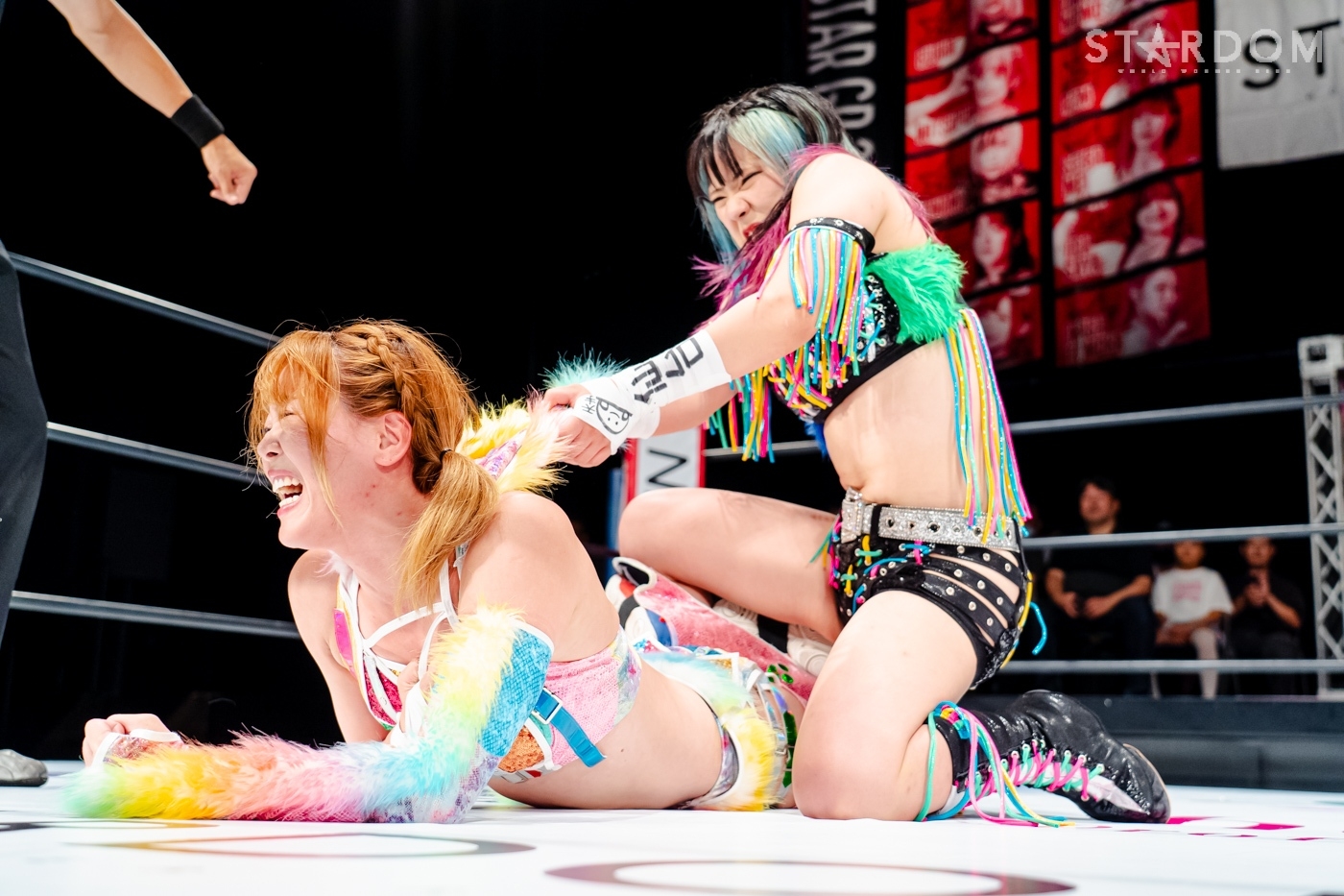 当初は刀羅ナツコ&琉悪夏&吏南組vs月山和香&向後桃&梨杏組の6人タッグマッチが発表されていたが、レディ・Cの体調不良による欠場からカード変更。妃南&月山和香&さくらあや組vsナツコ&琉悪夏&吏南組となった。妃南、月山、さくらはユニットの枠を超えてH.A.T.E.に挑む。8・31調布でフューチャー・オブ・スターダム王座を争う吏南と妃南には前哨戦だ。