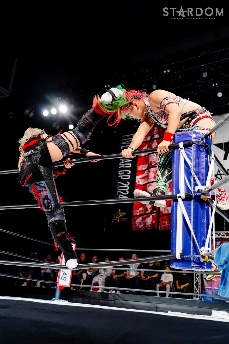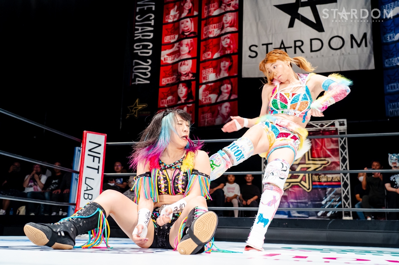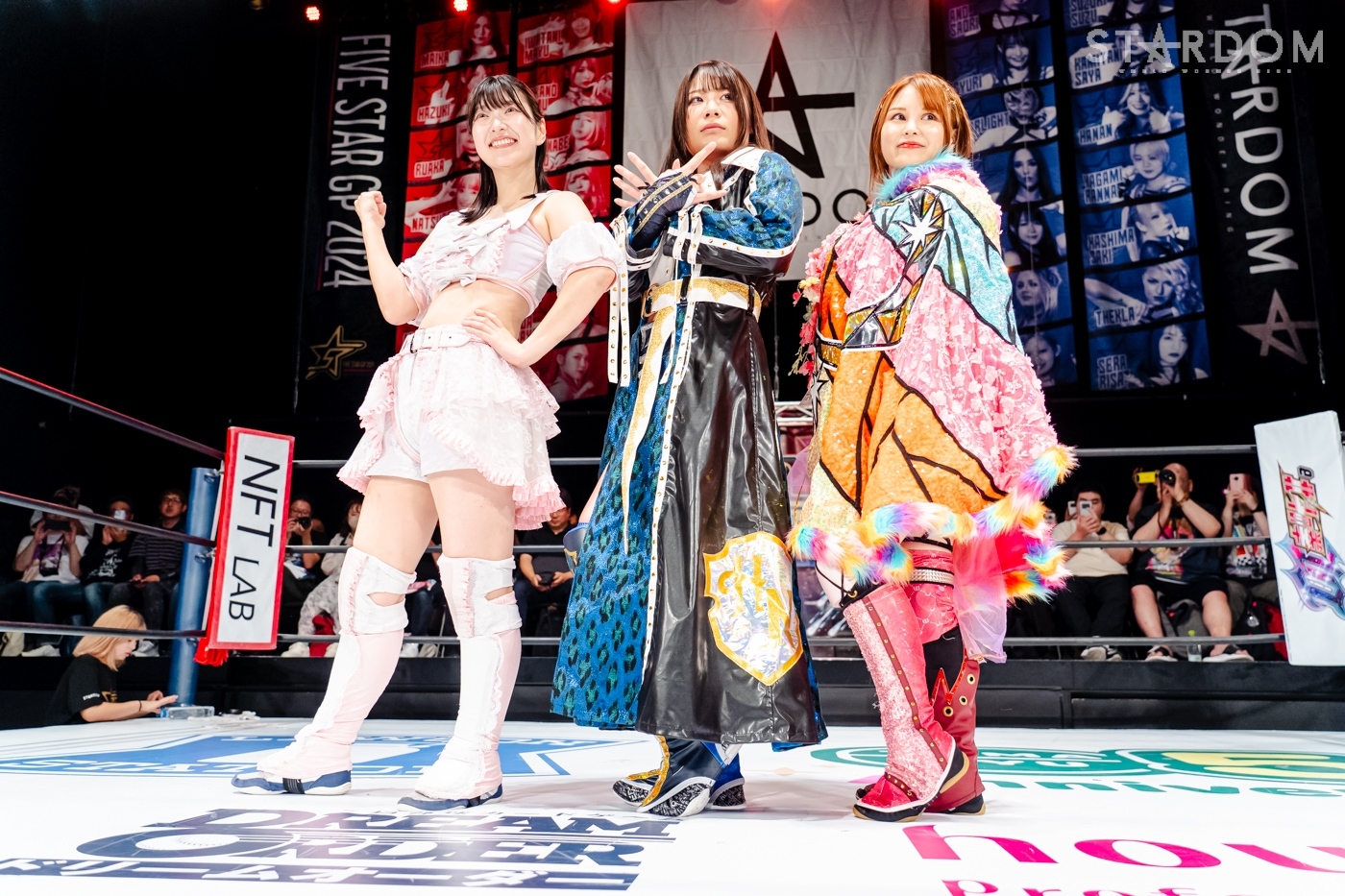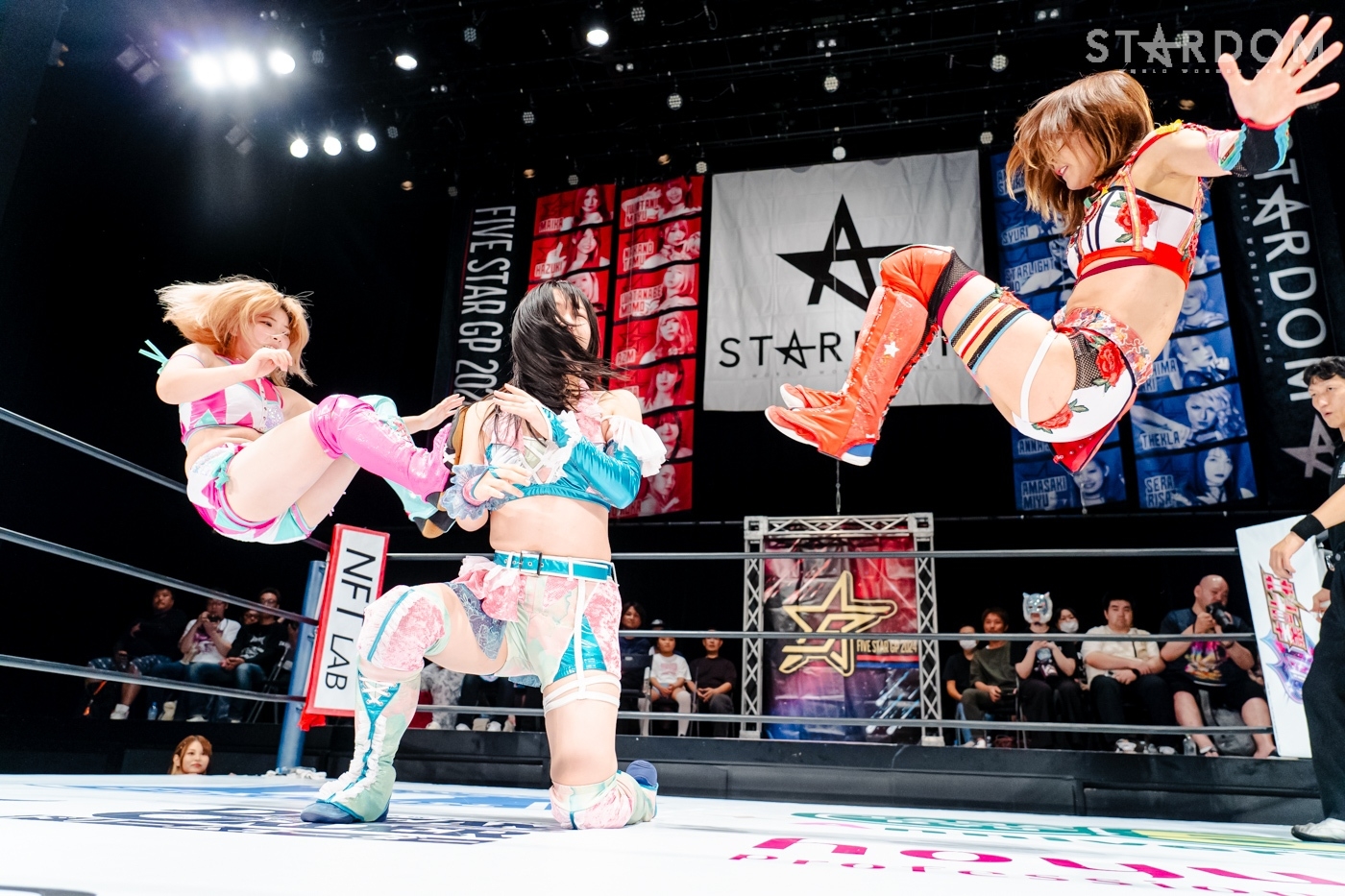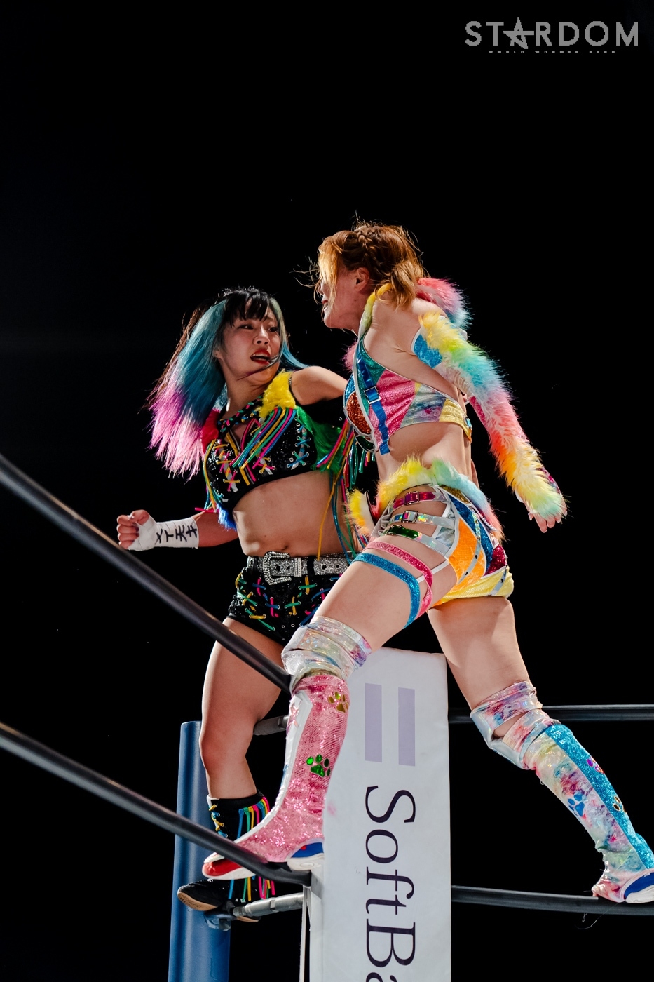 当初は刀羅ナツコ&琉悪夏&吏南組vs月山和香&向後桃&梨杏組の6人タッグマッチが発表されていたが、レディ・Cの体調不良による欠場からカード変更。妃南&月山和香&さくらあや組vsナツコ&琉悪夏&吏南組となった。妃南、月山、さくらはユニットの枠を超えてH.A.T.E.に挑む。8・31調布でフューチャー・オブ・スターダム王座を争う吏南と妃南には前哨戦だ。