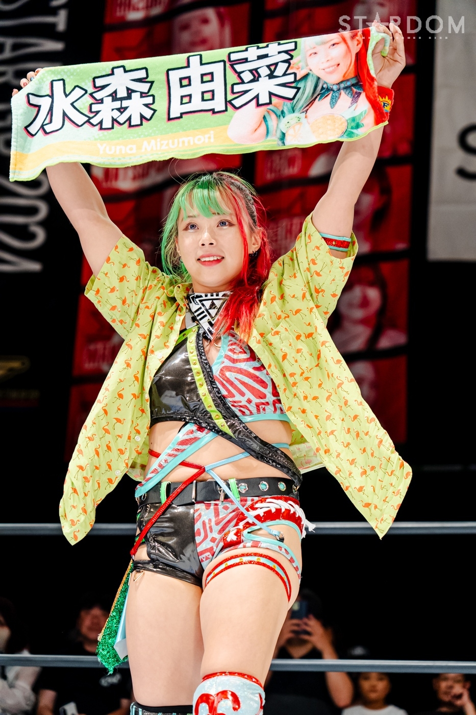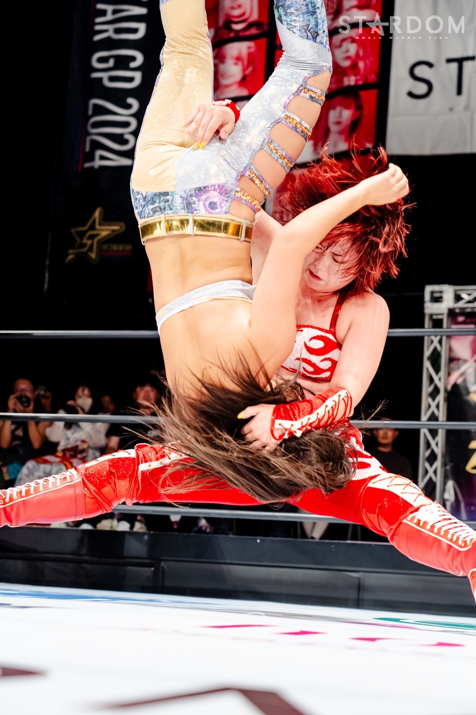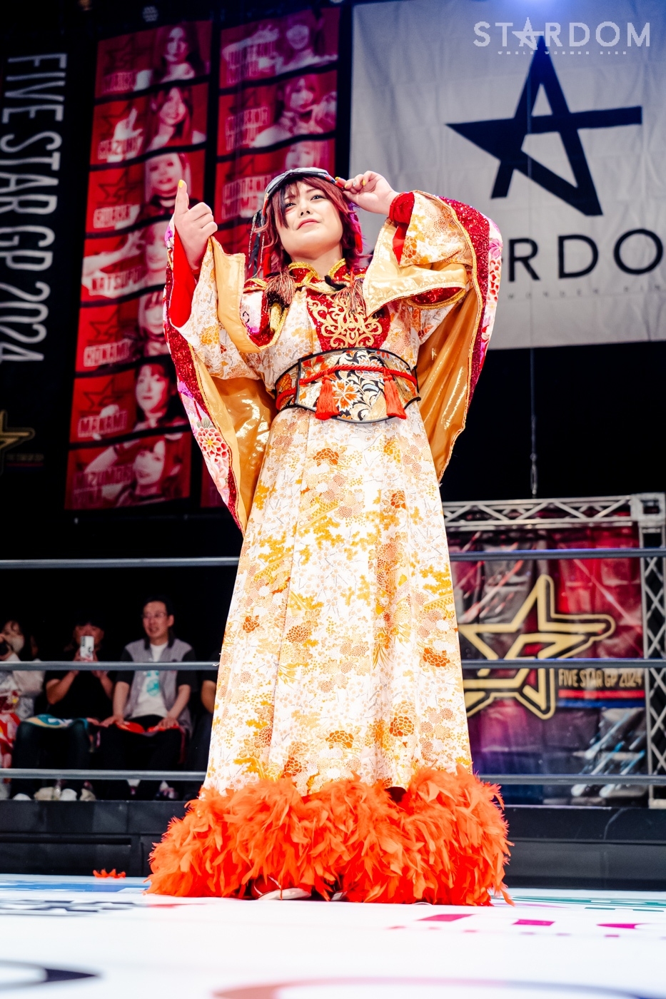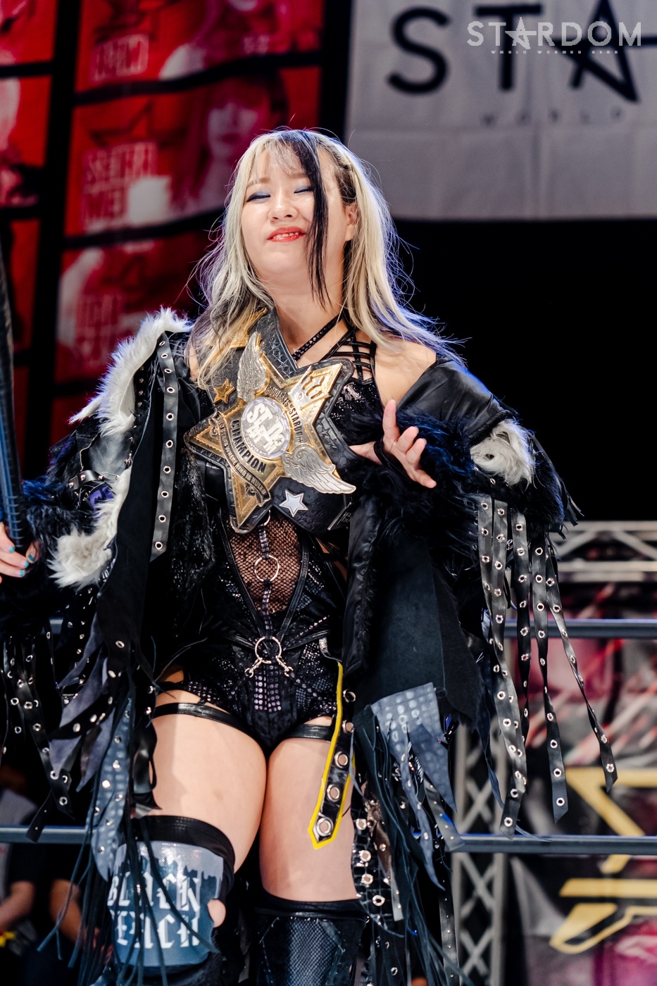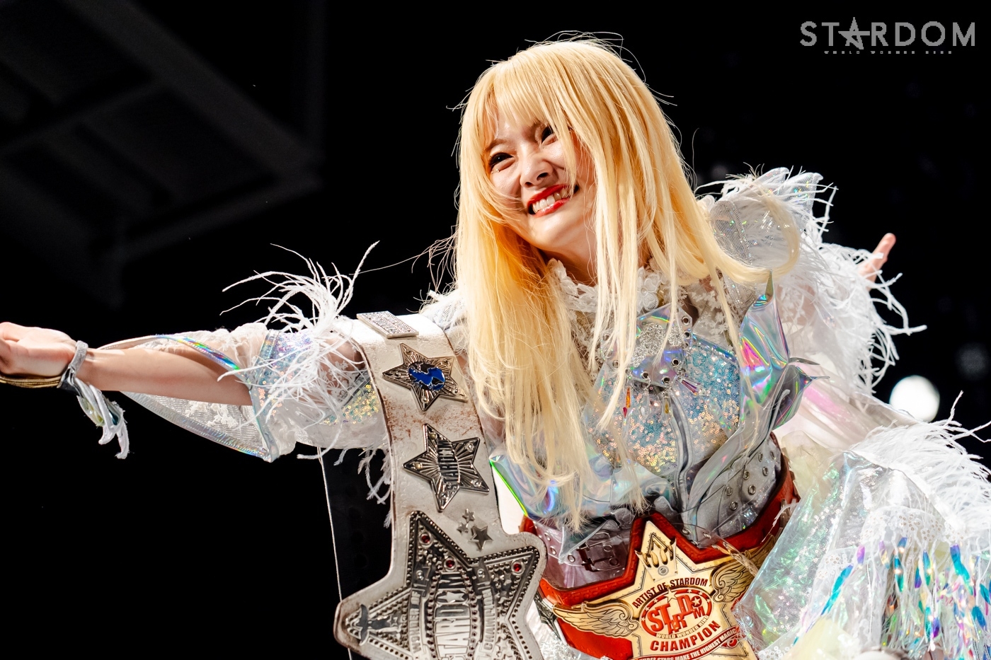 新宿で、このままいけば私1位通過だから、レッドスターズBの2位の人とやるのかな?わからないけど。そこでも勝って、31日武蔵野の森、両方勝ってスターダム初の全勝優勝者に必ず私がなります。清々しく今年こそは私の夏にして見せたいと思います。以上です。あ~疲れた」