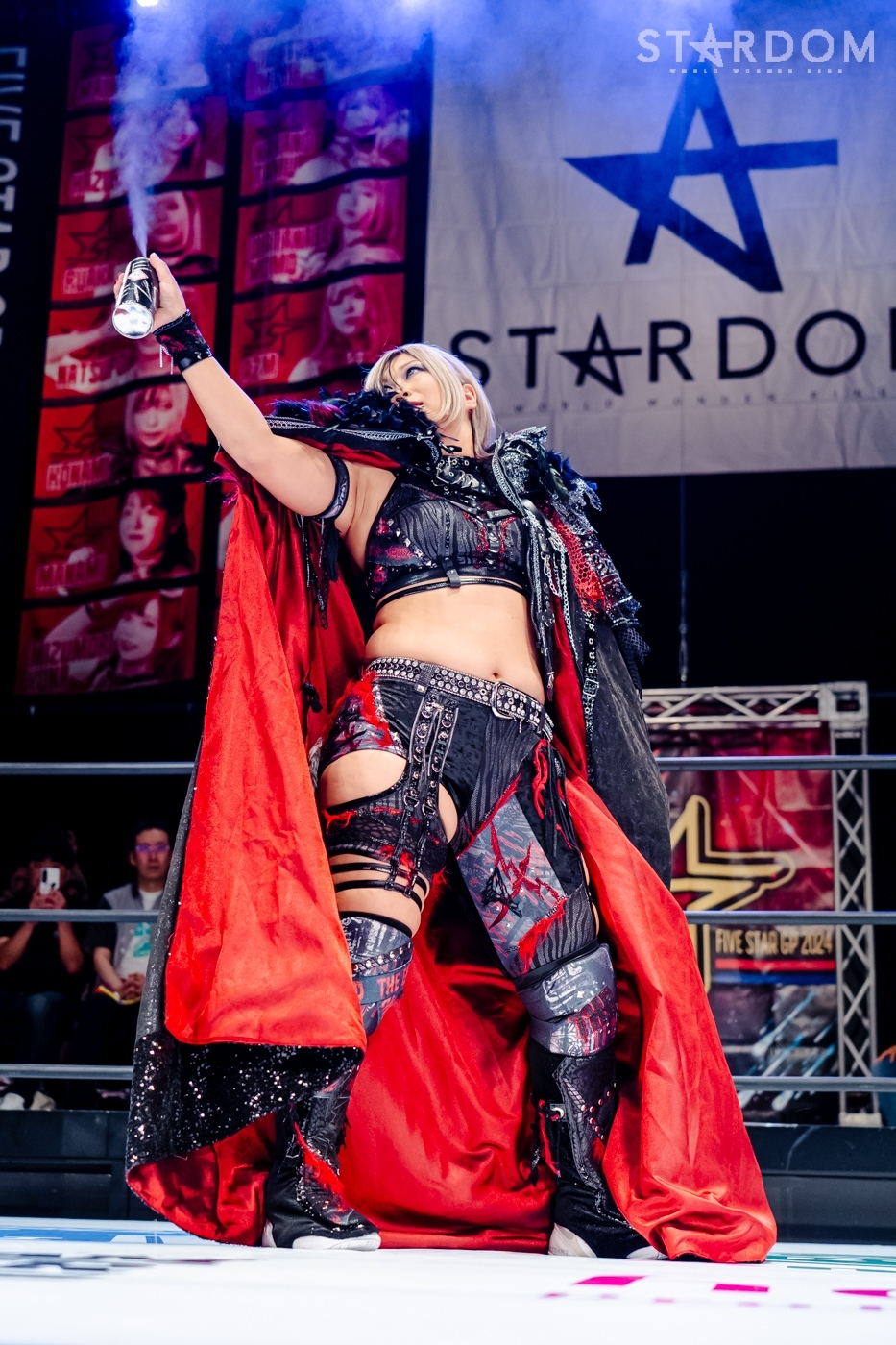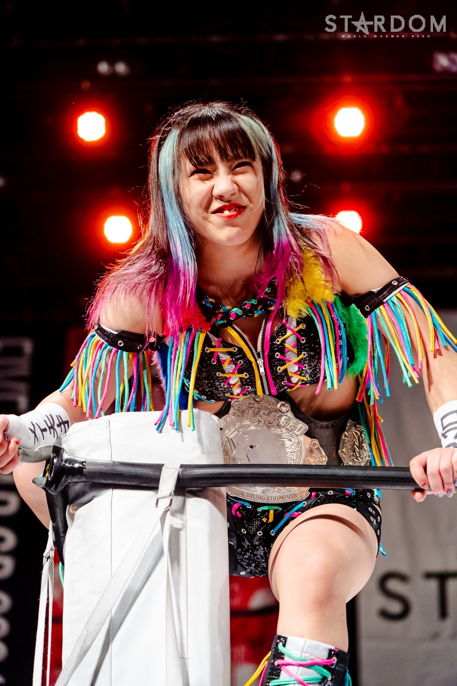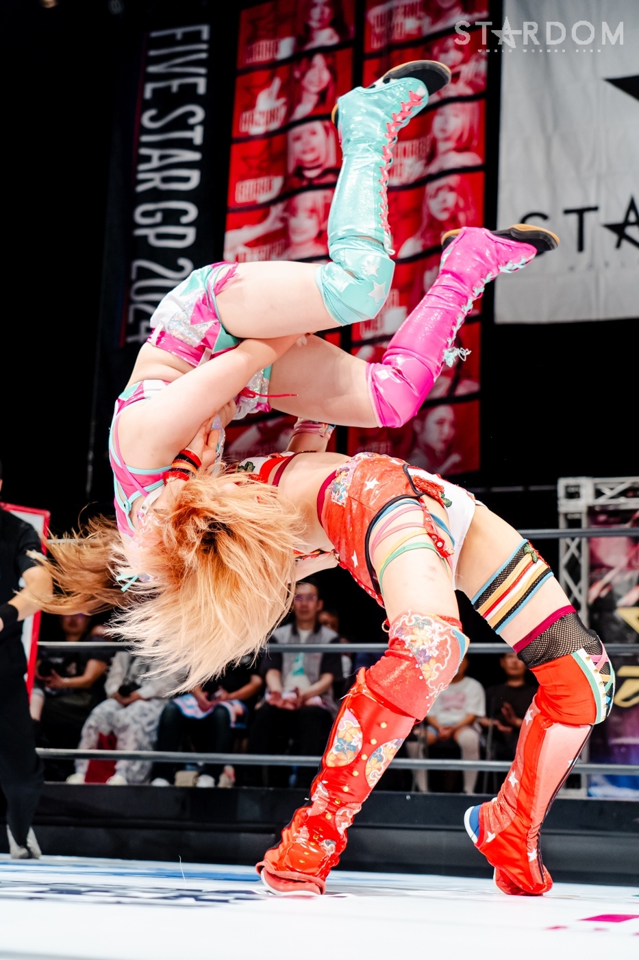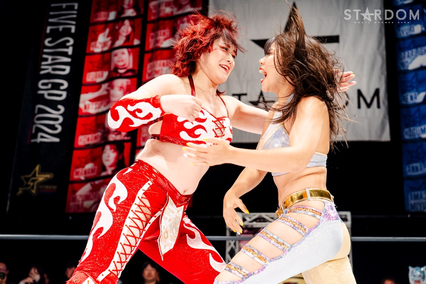 新宿で、このままいけば私1位通過だから、レッドスターズBの2位の人とやるのかな?わからないけど。そこでも勝って、31日武蔵野の森、両方勝ってスターダム初の全勝優勝者に必ず私がなります。清々しく今年こそは私の夏にして見せたいと思います。以上です。あ~疲れた」