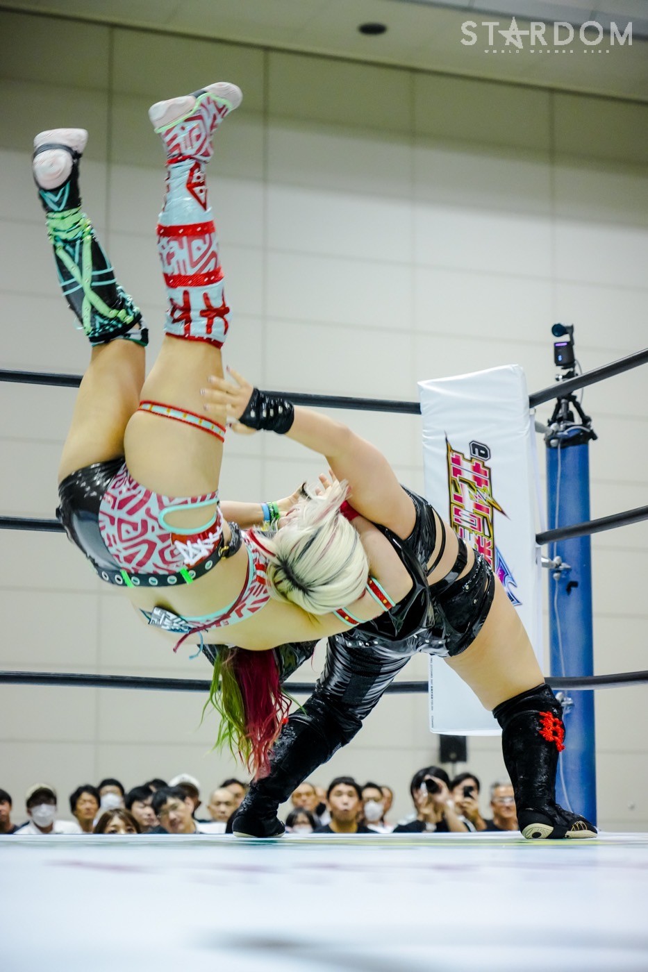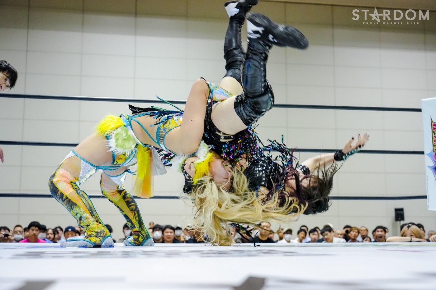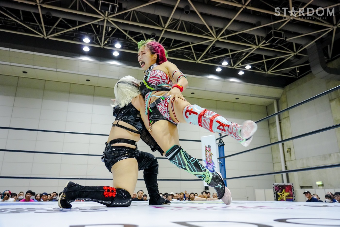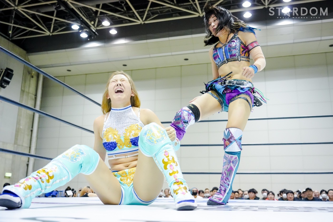 朱里がフロントネックチャンスリー、サッカーボールキック連発。天咲が返すと朱里の突進をかわしてフェースクラッシャー、スリーパー。朱里が逆片エビ固めにいくと、天咲がエスケープしエルボーで向かっていく。朱里が「こいや」「もっとこいや」と挑発し、受けて立つ。朱里の突進を止めて天咲がスイングDDT、変型DDT。朱里が返すと担ぎ上げられるも切り返してマットに叩きつける。朱里はサッカーボールキック、前からも蹴りをぶち込む。返された朱里はサソリ固め。エスケープしたい天咲を引っ張りリング中央へ。しかしなんとか天咲の手がロープに届く。朱里が担ぎ上げて山折り。天咲が返すと、朱里は流炎狙い、天咲が天橋立で切り返す。返されると高角度DDT、変型DDT。返した朱里に天咲はフィニッシュを宣言し天聖の構え。朱里がかわしてジャーマン。天咲が立ち上がると朱里がハイキック。天咲が返すと朱里は流炎を旋回して決める新技。3カウントが入り、朱里が勝利した。