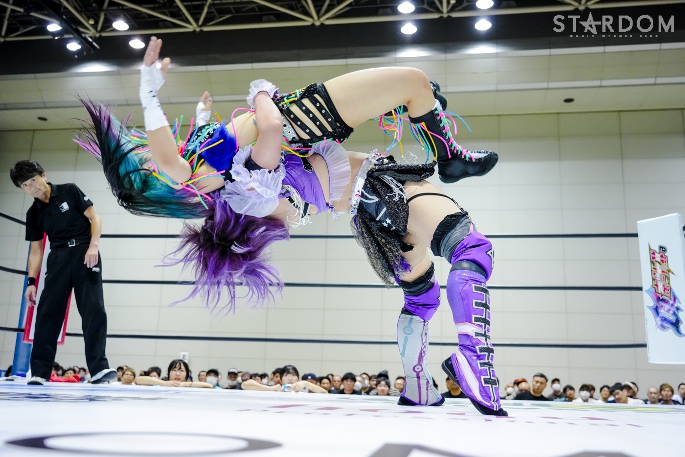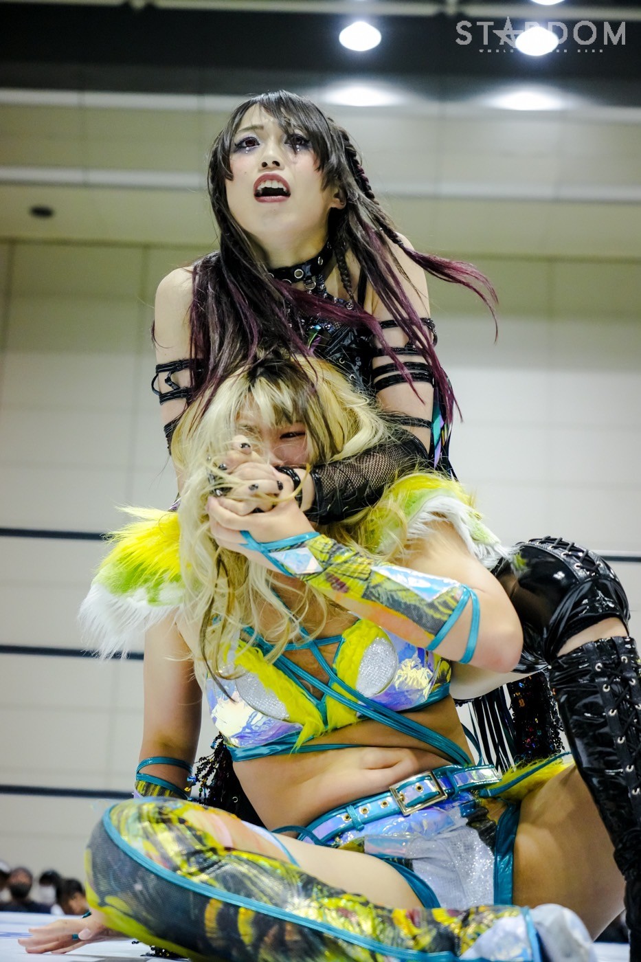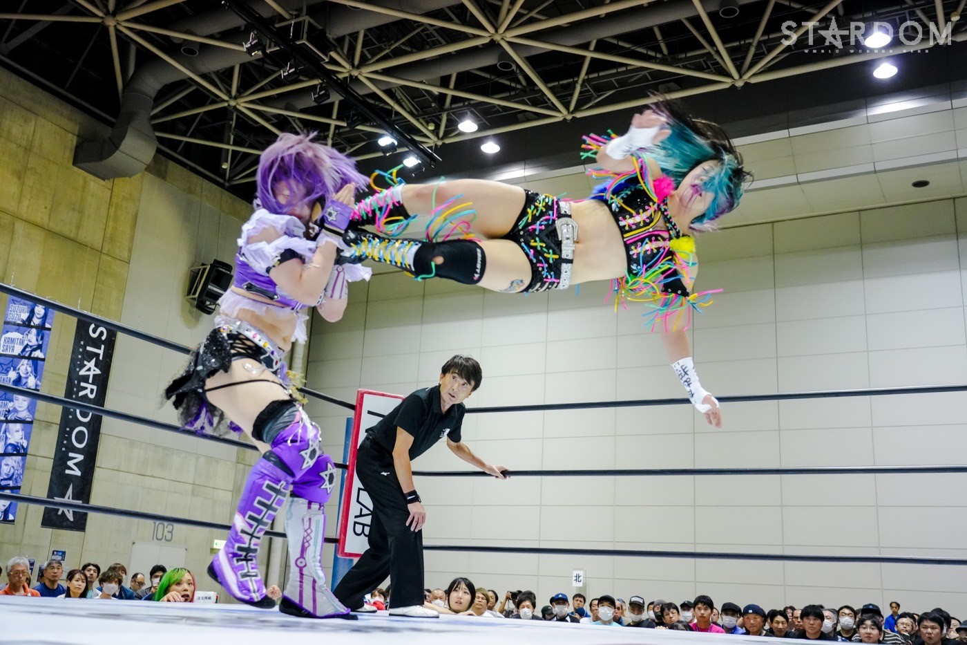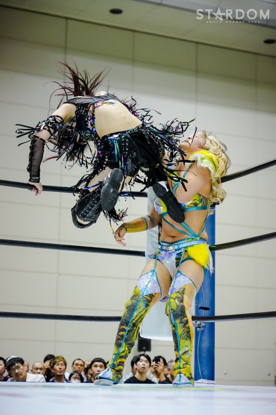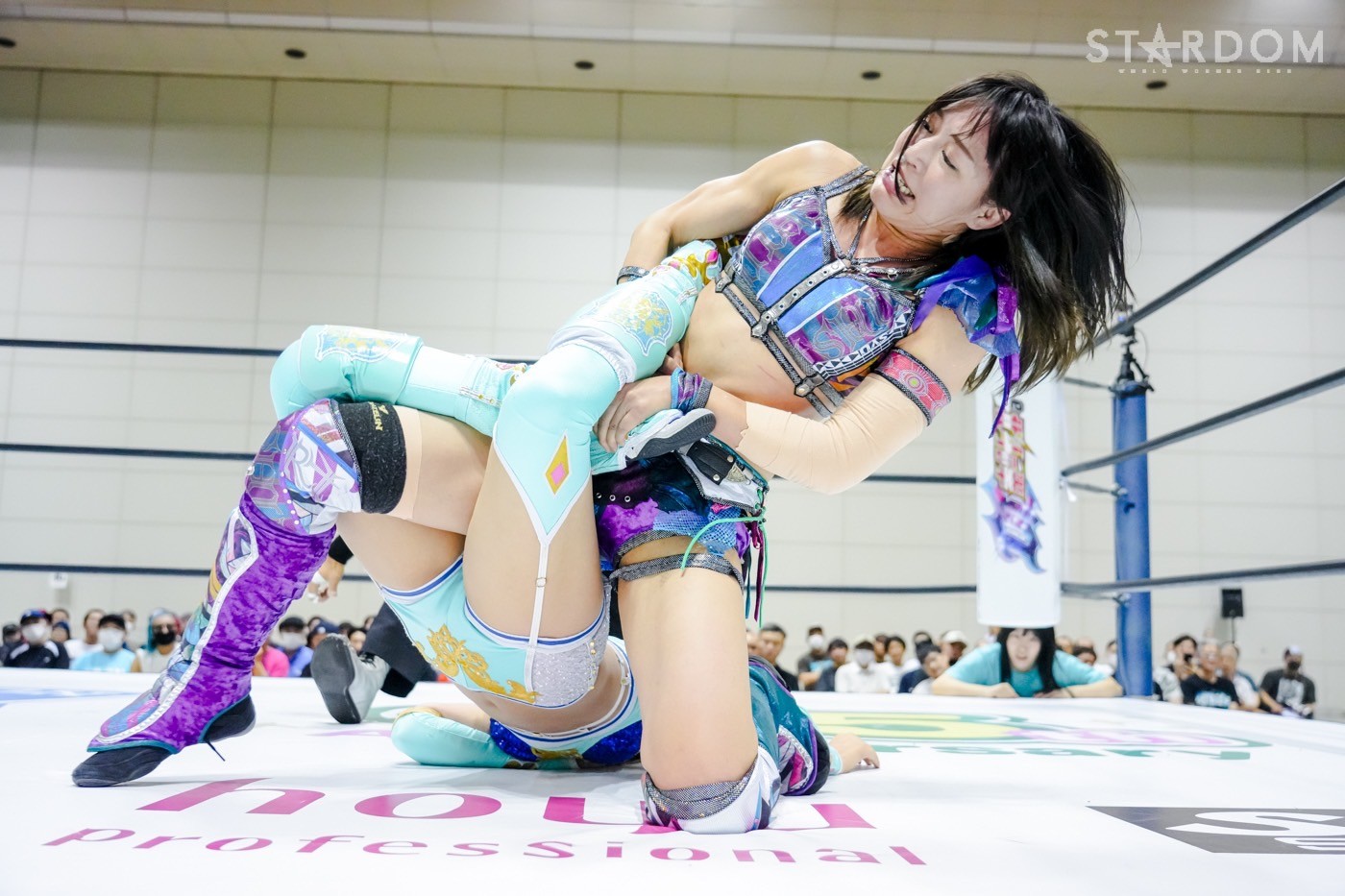 朱里がフロントネックチャンスリー、サッカーボールキック連発。天咲が返すと朱里の突進をかわしてフェースクラッシャー、スリーパー。朱里が逆片エビ固めにいくと、天咲がエスケープしエルボーで向かっていく。朱里が「こいや」「もっとこいや」と挑発し、受けて立つ。朱里の突進を止めて天咲がスイングDDT、変型DDT。朱里が返すと担ぎ上げられるも切り返してマットに叩きつける。朱里はサッカーボールキック、前からも蹴りをぶち込む。返された朱里はサソリ固め。エスケープしたい天咲を引っ張りリング中央へ。しかしなんとか天咲の手がロープに届く。朱里が担ぎ上げて山折り。天咲が返すと、朱里は流炎狙い、天咲が天橋立で切り返す。返されると高角度DDT、変型DDT。返した朱里に天咲はフィニッシュを宣言し天聖の構え。朱里がかわしてジャーマン。天咲が立ち上がると朱里がハイキック。天咲が返すと朱里は流炎を旋回して決める新技。3カウントが入り、朱里が勝利した。