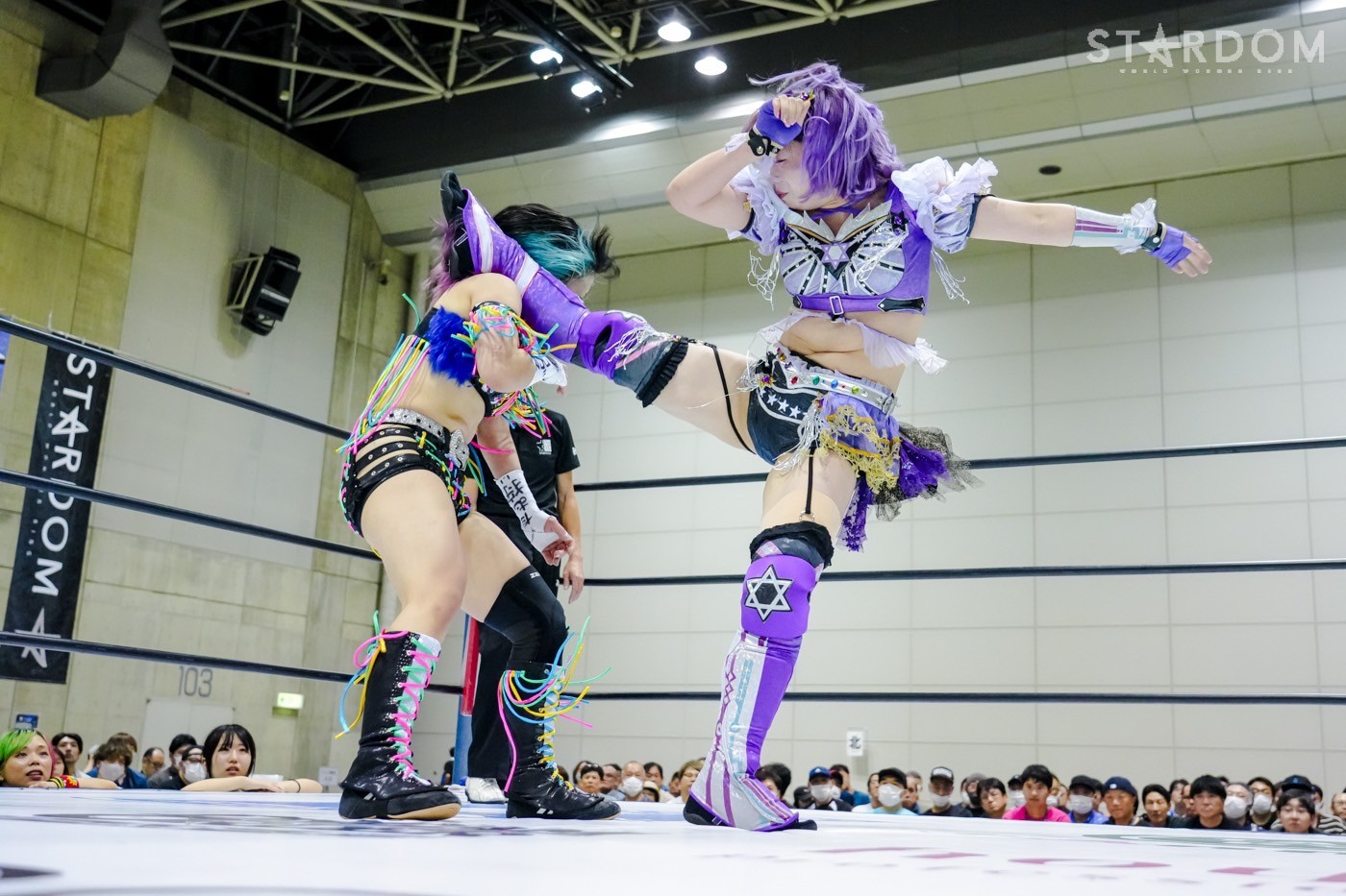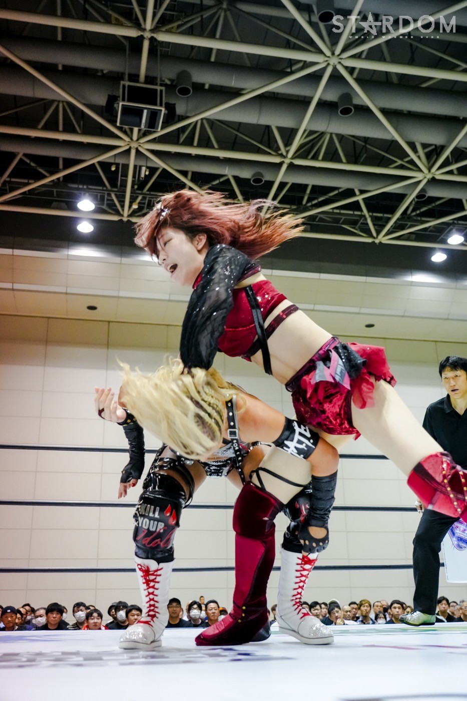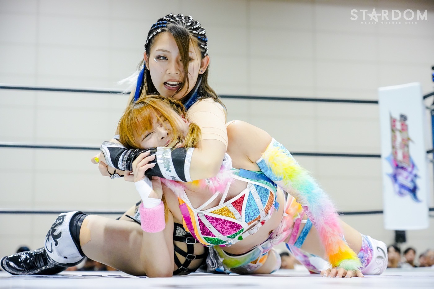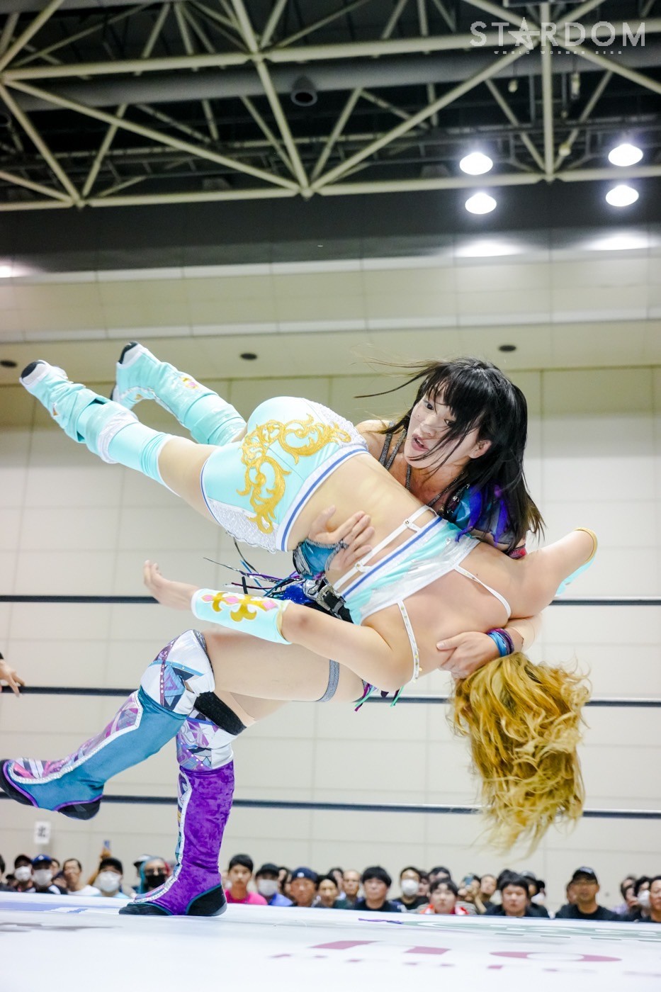 朱里がフロントネックチャンスリー、サッカーボールキック連発。天咲が返すと朱里の突進をかわしてフェースクラッシャー、スリーパー。朱里が逆片エビ固めにいくと、天咲がエスケープしエルボーで向かっていく。朱里が「こいや」「もっとこいや」と挑発し、受けて立つ。朱里の突進を止めて天咲がスイングDDT、変型DDT。朱里が返すと担ぎ上げられるも切り返してマットに叩きつける。朱里はサッカーボールキック、前からも蹴りをぶち込む。返された朱里はサソリ固め。エスケープしたい天咲を引っ張りリング中央へ。しかしなんとか天咲の手がロープに届く。朱里が担ぎ上げて山折り。天咲が返すと、朱里は流炎狙い、天咲が天橋立で切り返す。返されると高角度DDT、変型DDT。返した朱里に天咲はフィニッシュを宣言し天聖の構え。朱里がかわしてジャーマン。天咲が立ち上がると朱里がハイキック。天咲が返すと朱里は流炎を旋回して決める新技。3カウントが入り、朱里が勝利した。