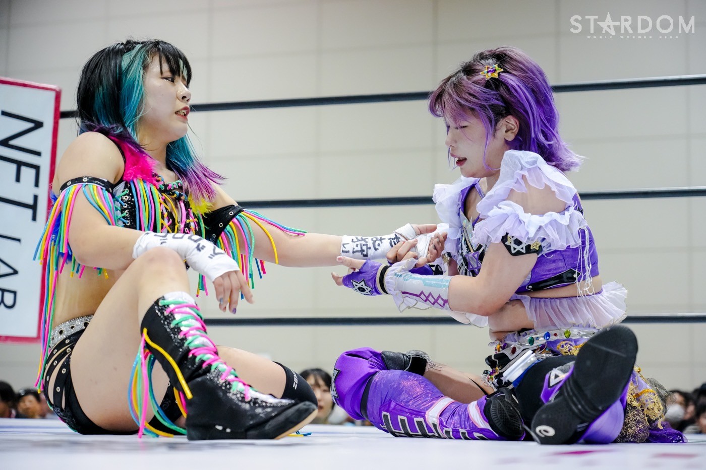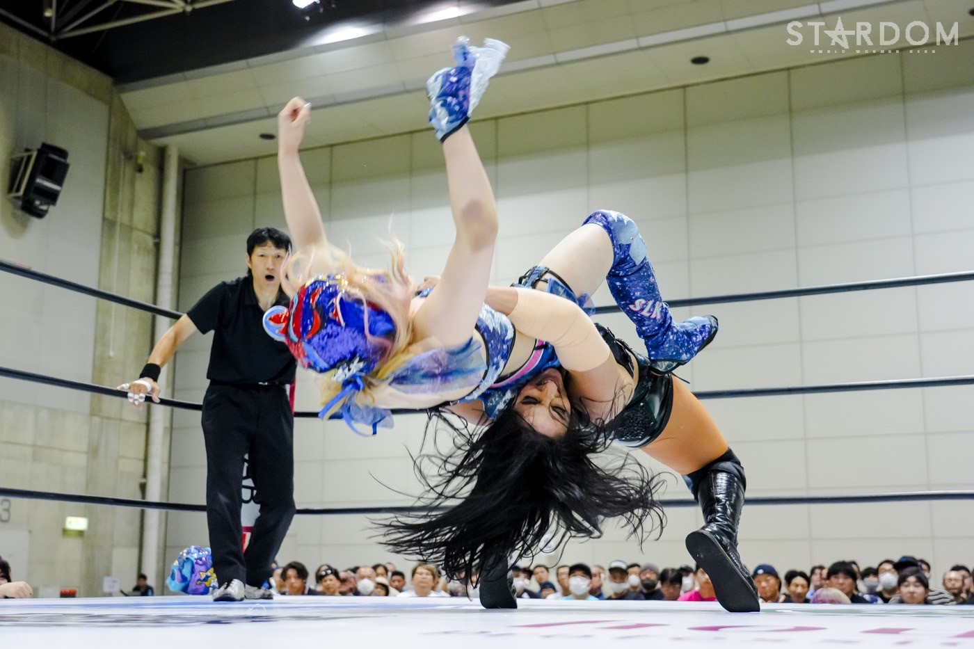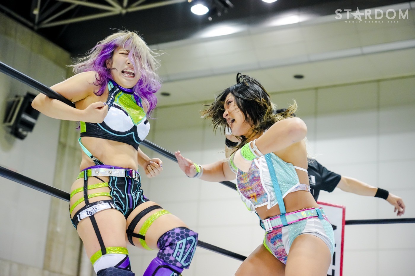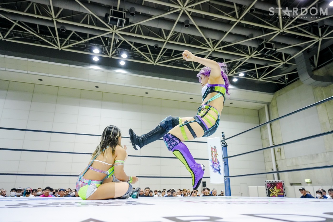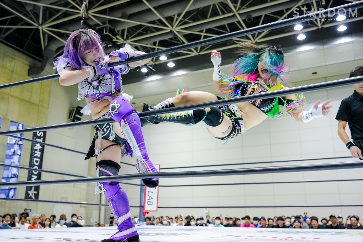 朱里がフロントネックチャンスリー、サッカーボールキック連発。天咲が返すと朱里の突進をかわしてフェースクラッシャー、スリーパー。朱里が逆片エビ固めにいくと、天咲がエスケープしエルボーで向かっていく。朱里が「こいや」「もっとこいや」と挑発し、受けて立つ。朱里の突進を止めて天咲がスイングDDT、変型DDT。朱里が返すと担ぎ上げられるも切り返してマットに叩きつける。朱里はサッカーボールキック、前からも蹴りをぶち込む。返された朱里はサソリ固め。エスケープしたい天咲を引っ張りリング中央へ。しかしなんとか天咲の手がロープに届く。朱里が担ぎ上げて山折り。天咲が返すと、朱里は流炎狙い、天咲が天橋立で切り返す。返されると高角度DDT、変型DDT。返した朱里に天咲はフィニッシュを宣言し天聖の構え。朱里がかわしてジャーマン。天咲が立ち上がると朱里がハイキック。天咲が返すと朱里は流炎を旋回して決める新技。3カウントが入り、朱里が勝利した。