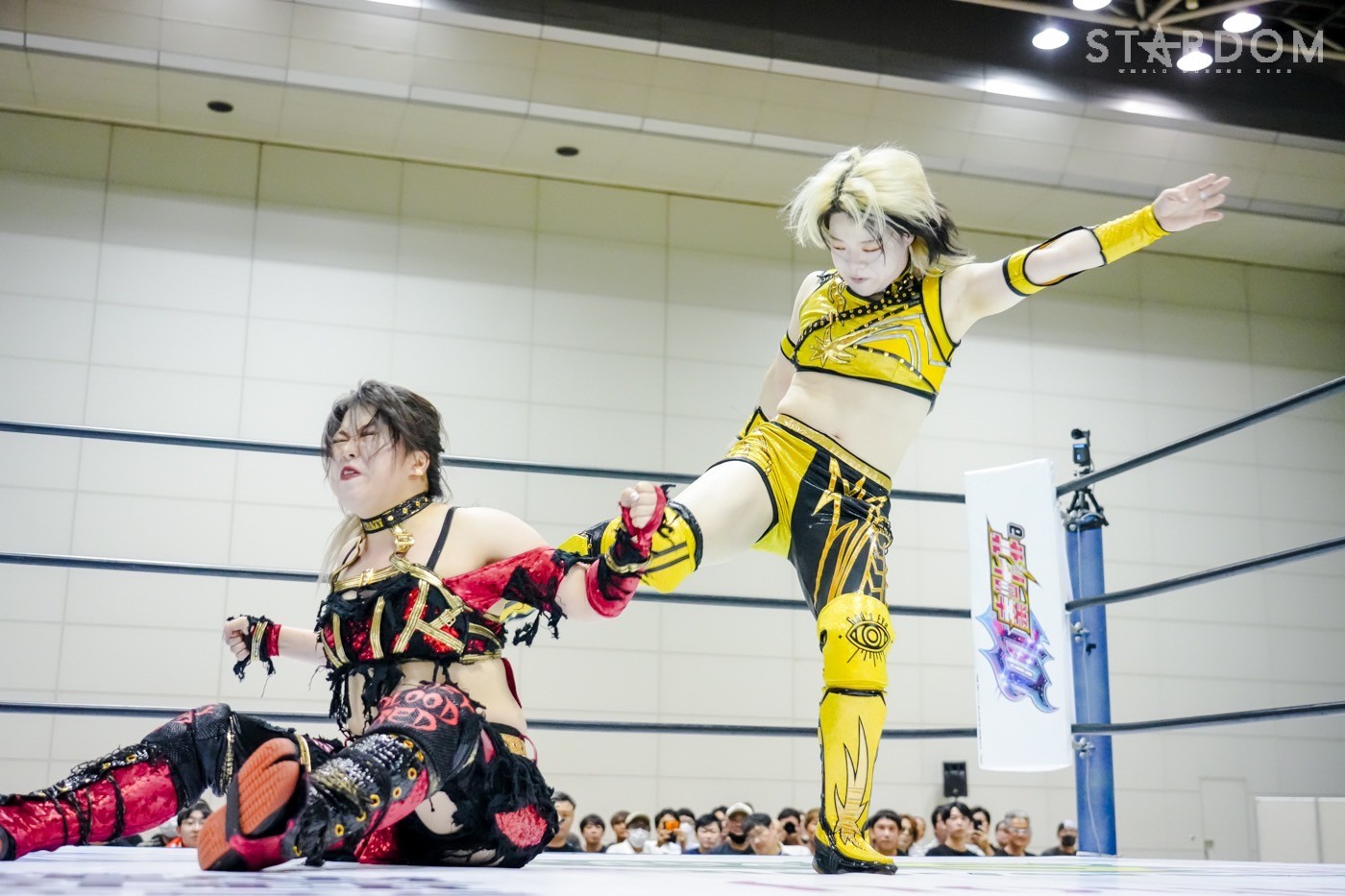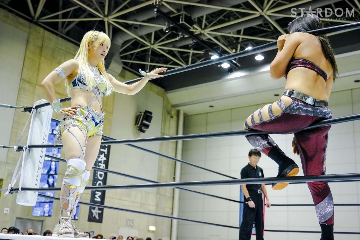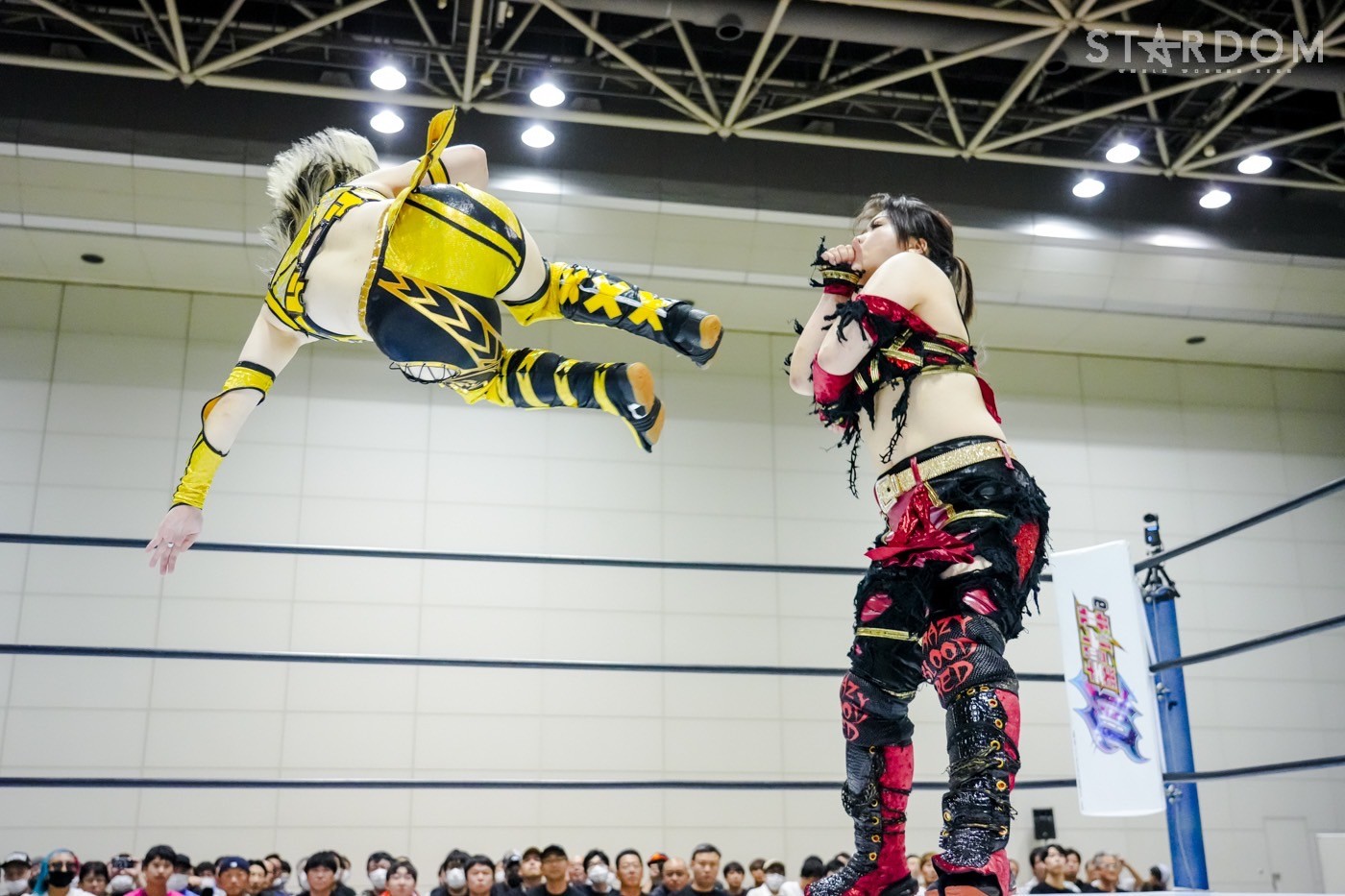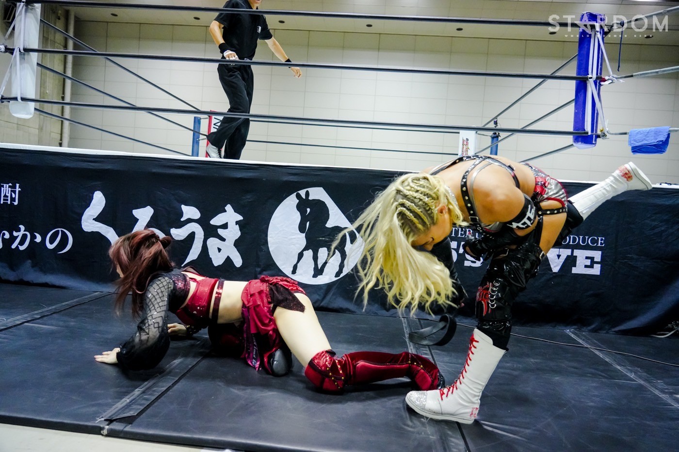 2勝3敗のジーナと2勝1敗2引き分けのスターライト・キッドによる公式リーグ戦。ジーナは前日の福島で朱里に敗れ優勝戦線から脱落。一方のキッドは天咲光由との同門対決で引き分け失点に等しい結果を出してしまったが、優勝の可能性はまだ残している。そのためにも、ジーナからの白星が何よりも必要だ。