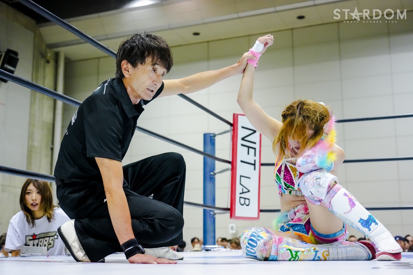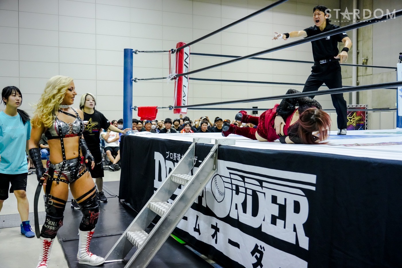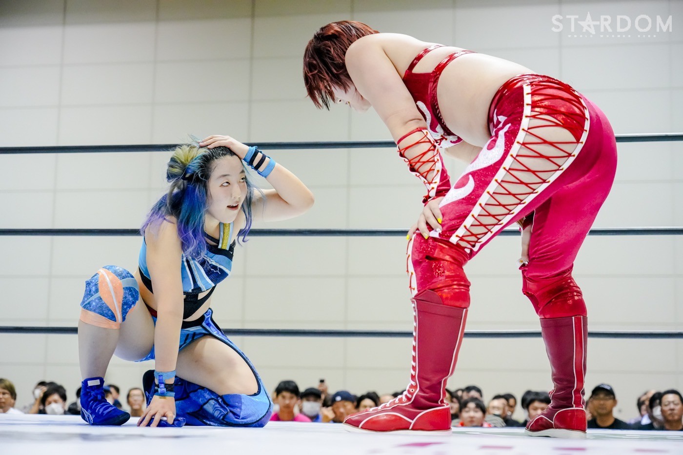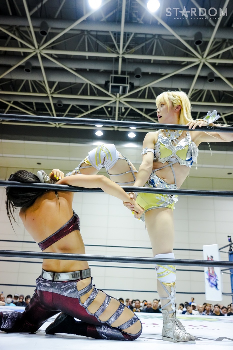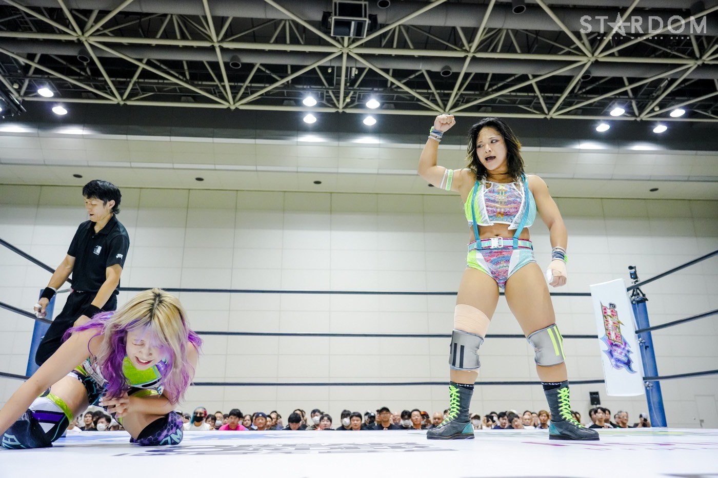 2勝3敗のジーナと2勝1敗2引き分けのスターライト・キッドによる公式リーグ戦。ジーナは前日の福島で朱里に敗れ優勝戦線から脱落。一方のキッドは天咲光由との同門対決で引き分け失点に等しい結果を出してしまったが、優勝の可能性はまだ残している。そのためにも、ジーナからの白星が何よりも必要だ。
