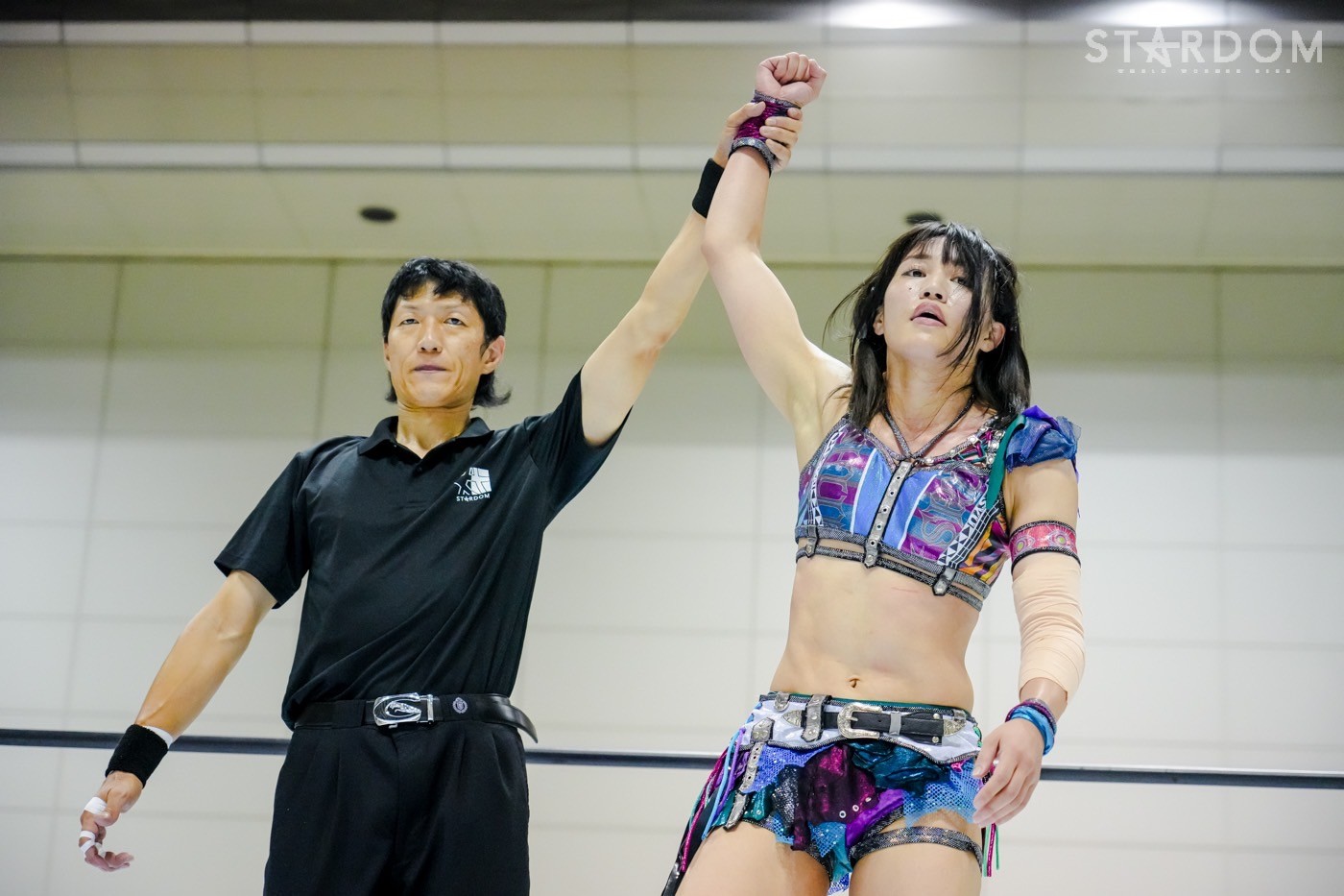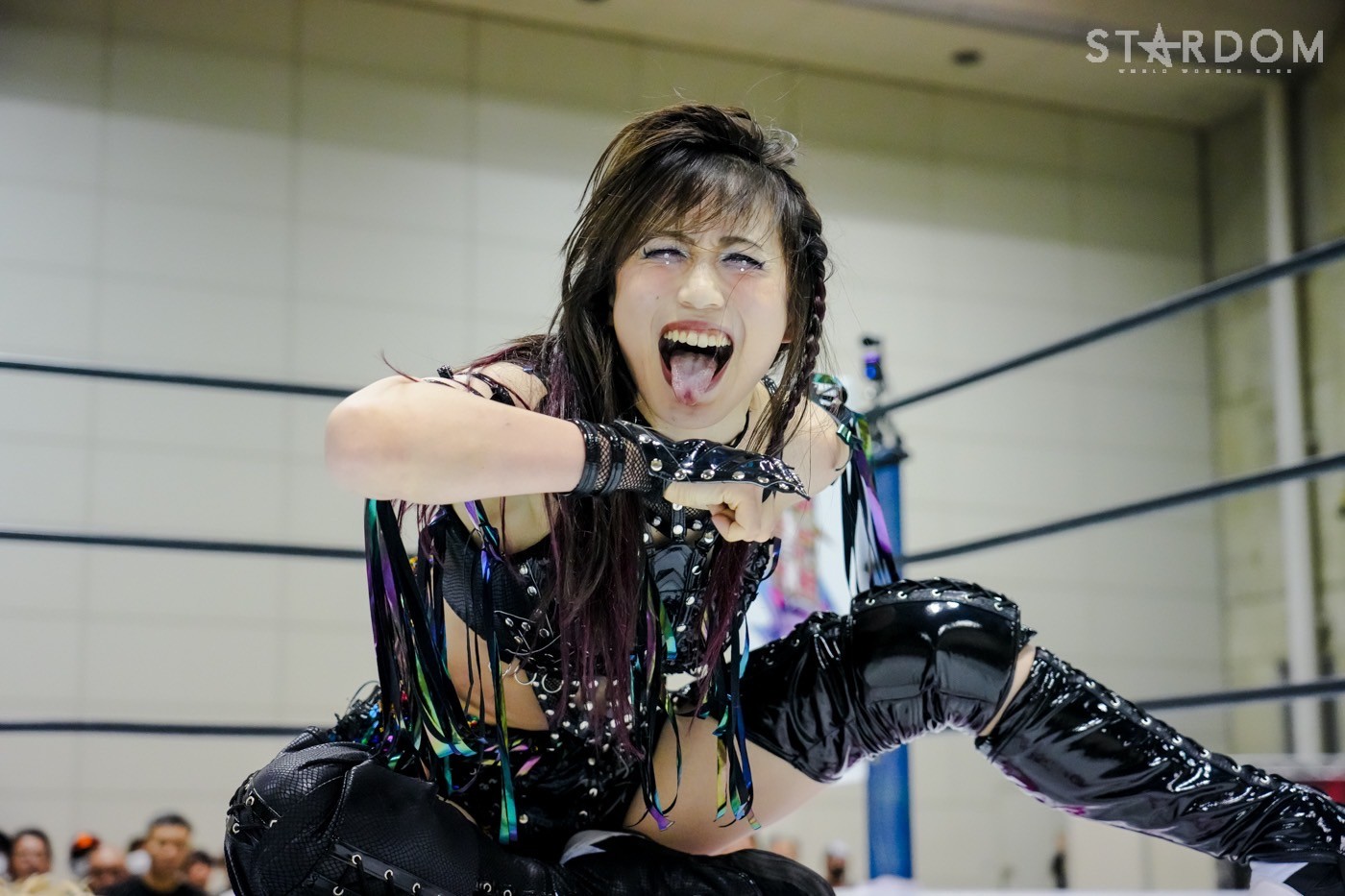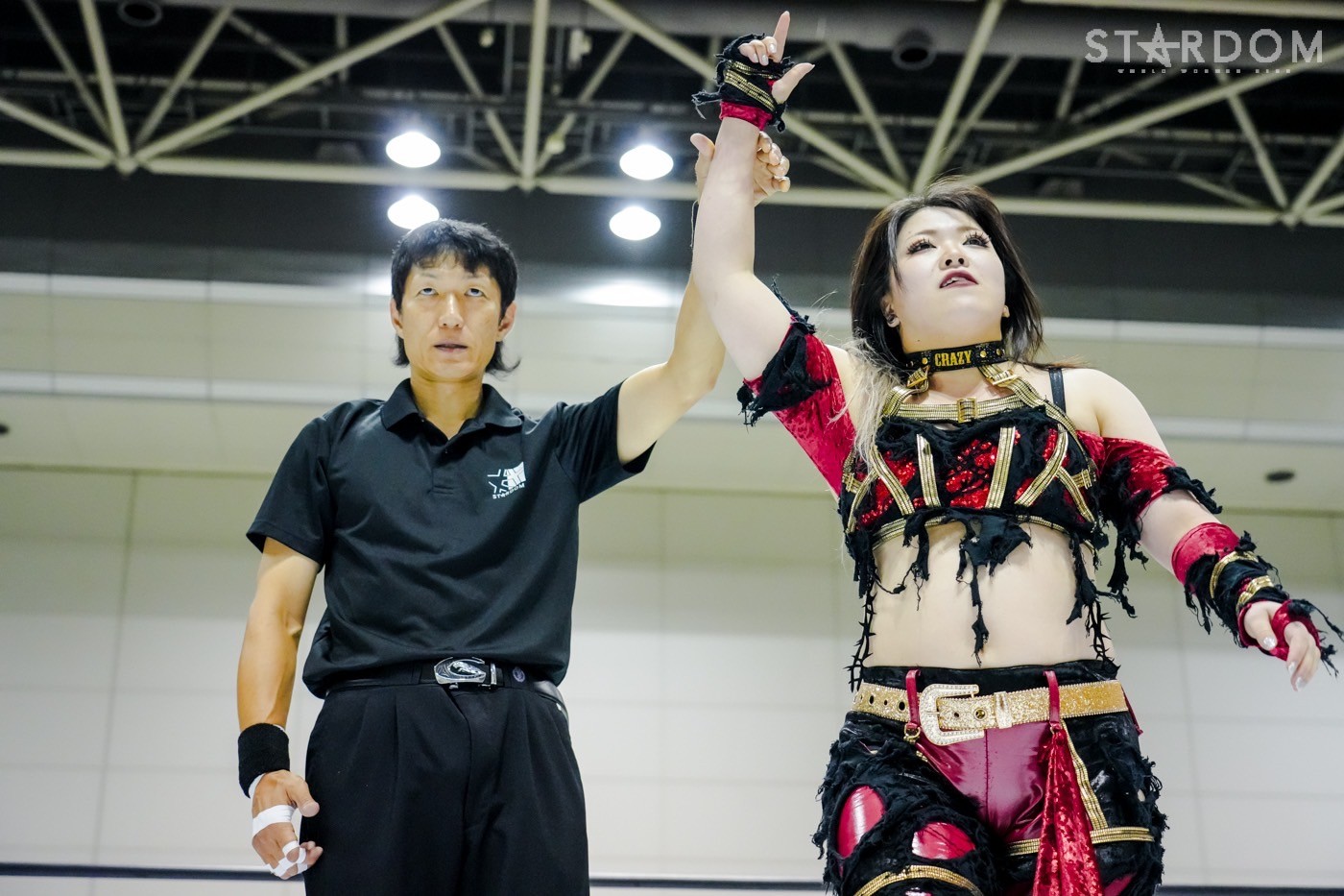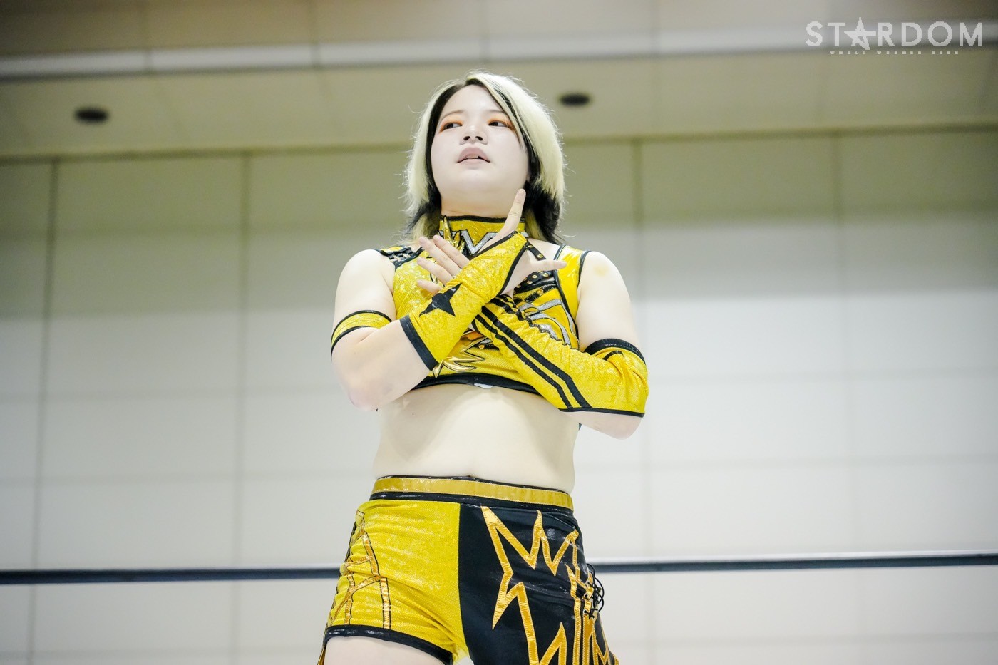 「ギリギリ、ギリギリ3カウント取りました。これで10点。今日で10点。首位? 1位ですか? 1位? 予選1位? マジか、うれしい。この前の星来芽依との試合でめっち ゃ首が痛くて今日は押さえ込むのに必死で。メンタル的にちょっときつい闘いだったけど、1位だよ。予選1位。あとはもうあれするから。優勝して、王冠とマント被って、アイツをIWGP(女子)のベルトに逆指名したいと思うので、期待してみなさん楽しみにしててください」