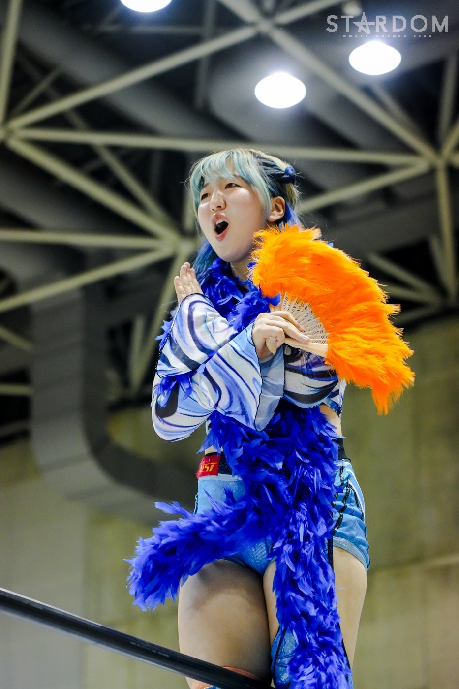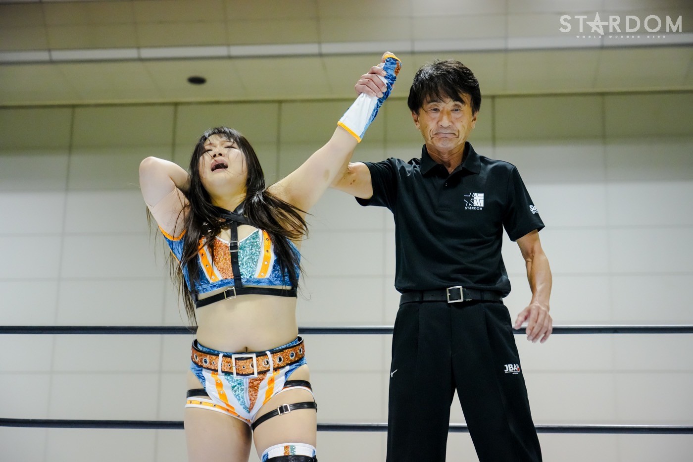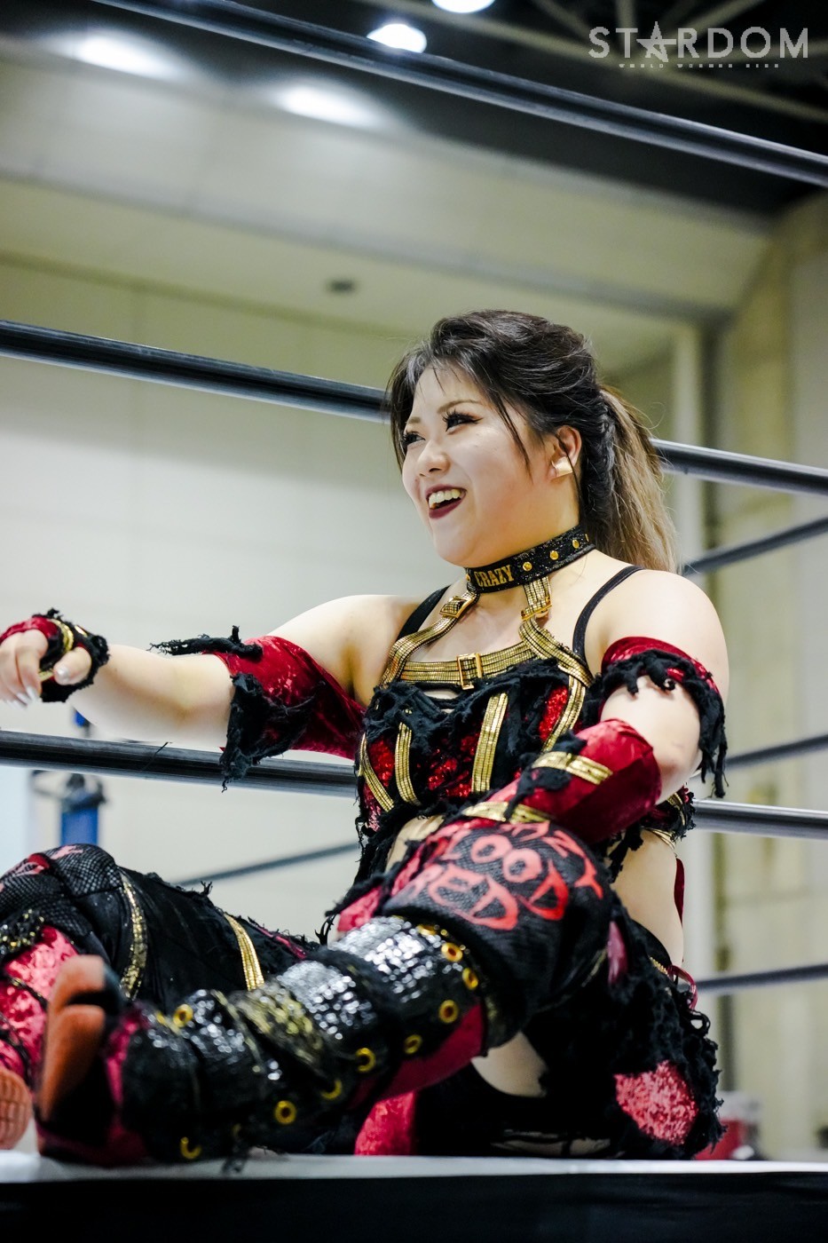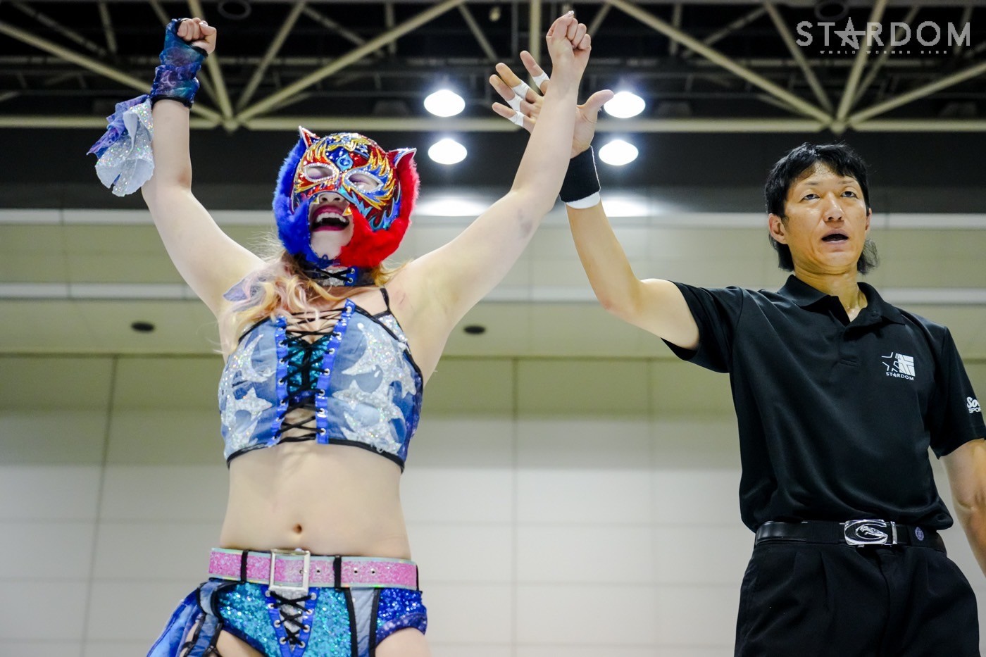 「ギリギリ、ギリギリ3カウント取りました。これで10点。今日で10点。首位? 1位ですか? 1位? 予選1位? マジか、うれしい。この前の星来芽依との試合でめっち ゃ首が痛くて今日は押さえ込むのに必死で。メンタル的にちょっときつい闘いだったけど、1位だよ。予選1位。あとはもうあれするから。優勝して、王冠とマント被って、アイツをIWGP(女子)のベルトに逆指名したいと思うので、期待してみなさん楽しみにしててください」