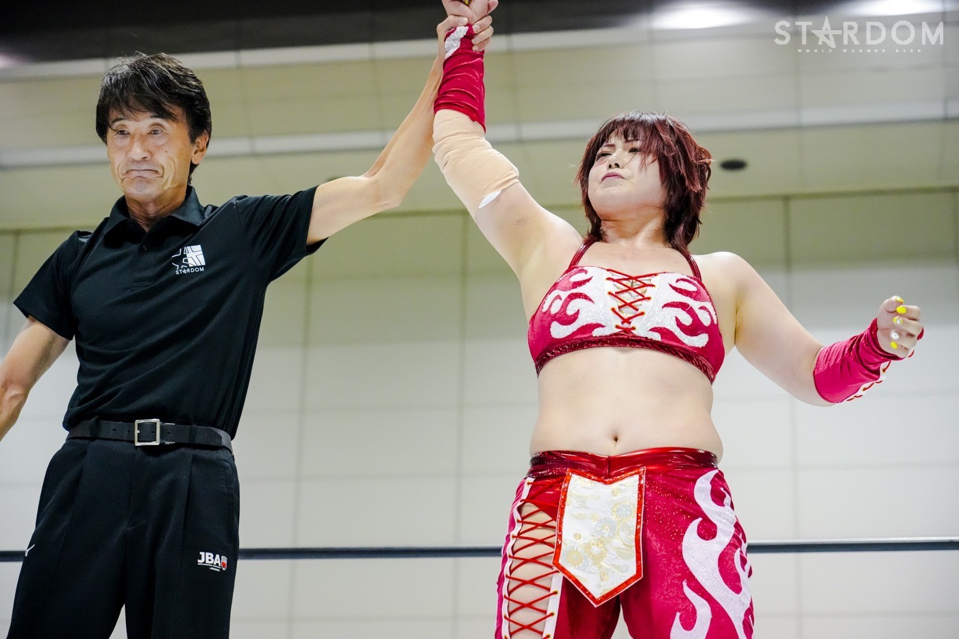 「なつぽいと白のチャンピオンと、ドロー。ドロー、結果ドローやけど、なつぽいは引き分けても9点で、レッドスターズA上がっとるわけやし、負けでしょ。15分で仕留めきれなかったのがいまのウチの実力。ただ、白いベルト、ウチはいままで何度もやってきたけど、何度やって何度負けても、まだあきらめきれない。しっかり自分のいまの実力をしっかりわかったうえでこれからも私は白いベルト、狙って突き進んでいきたいと思います」