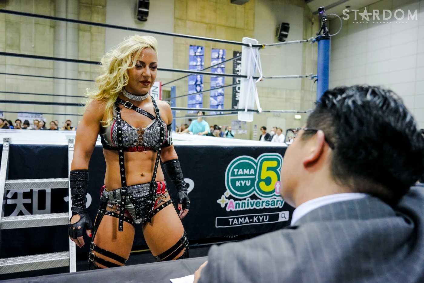 ナツコ「言ってたろ。オマエのせいでどうのこうのって、無様にどうのこうのって。言っとけばいいよ、自分に返ってくるから。別にさ、今回の5★STAR、正直私は、結果がどうとかどうでもいいよ、正直ね。オマエが私と闘うのにふさわしいくらいかっけーヤツだなって、それを見たかったわけよ。なのにさ、ほかのヤツにも、みーんなに左脚攻められて、情けないよな。こんなんでいいのかな。去年の会見とかでもさ、団体にオマエが入ってきて何年たつか忘れたけど、けっこう長い間闘ってんじゃん。私はずっと、自分があのベルト取ったら、たむとやりてえと思ってたんだよ。なんかもうその気持ちもさ、なんていうかな、自分が指名したからには、もうちょっと勢いのいい中野たむ見れたんじゃないかなって、この1カ月。別にいいよ。私はすべてを受け入れるし、その上で無様に散るのはオマエだよ。私に途中あれだけ言われようとなにもしてこなかったヤツが勝てるわけねえじゃん。いまの私に。それといま、イスでアタマでもぶっ叩いてみる? オマエそれやれんの?」