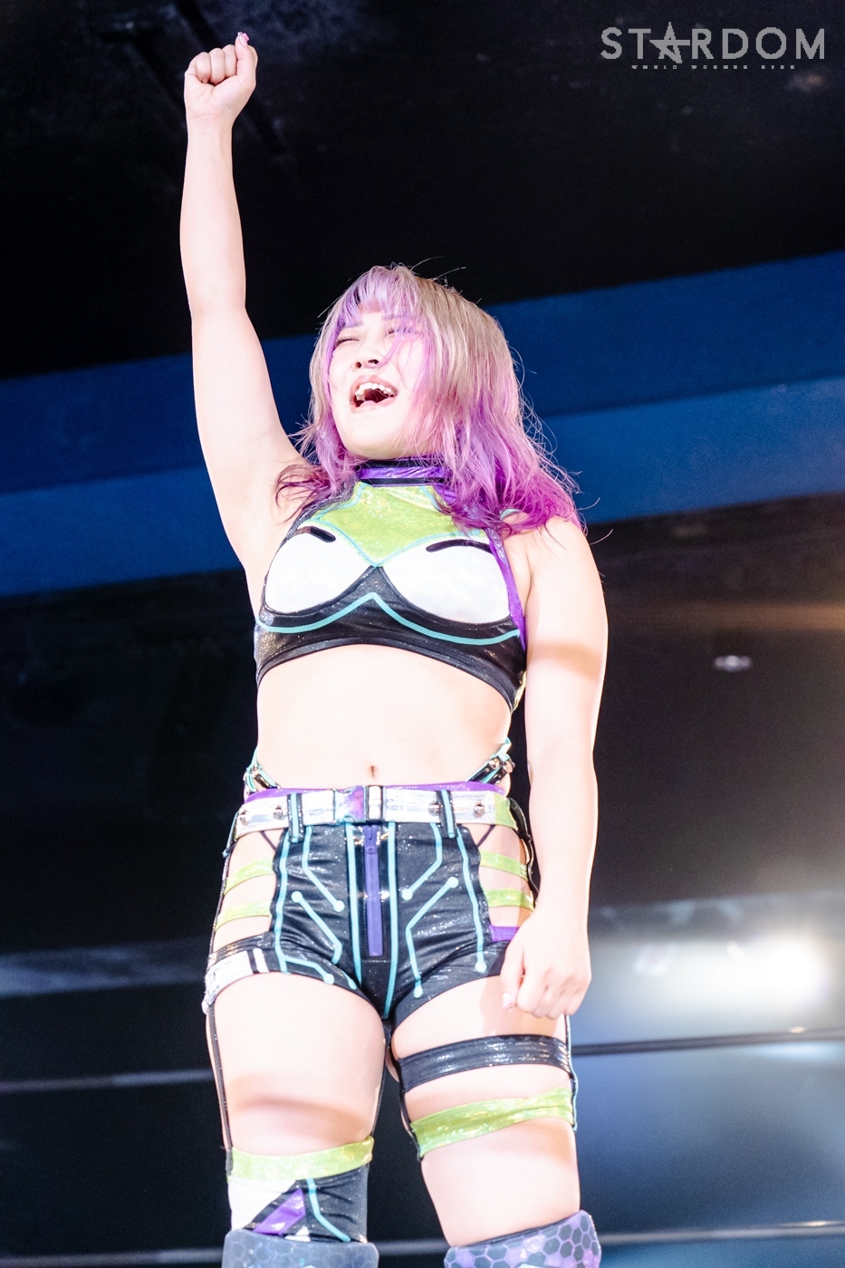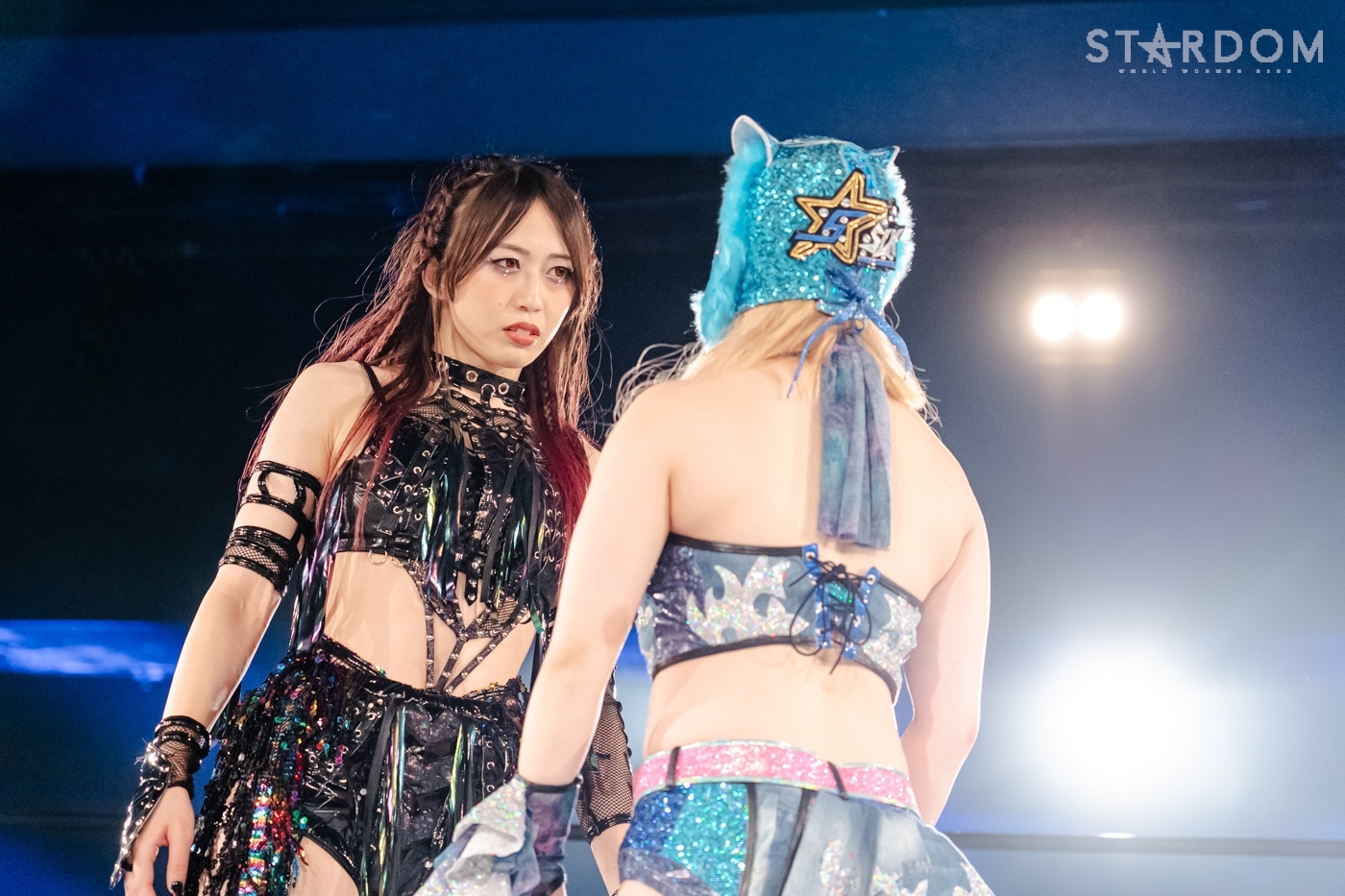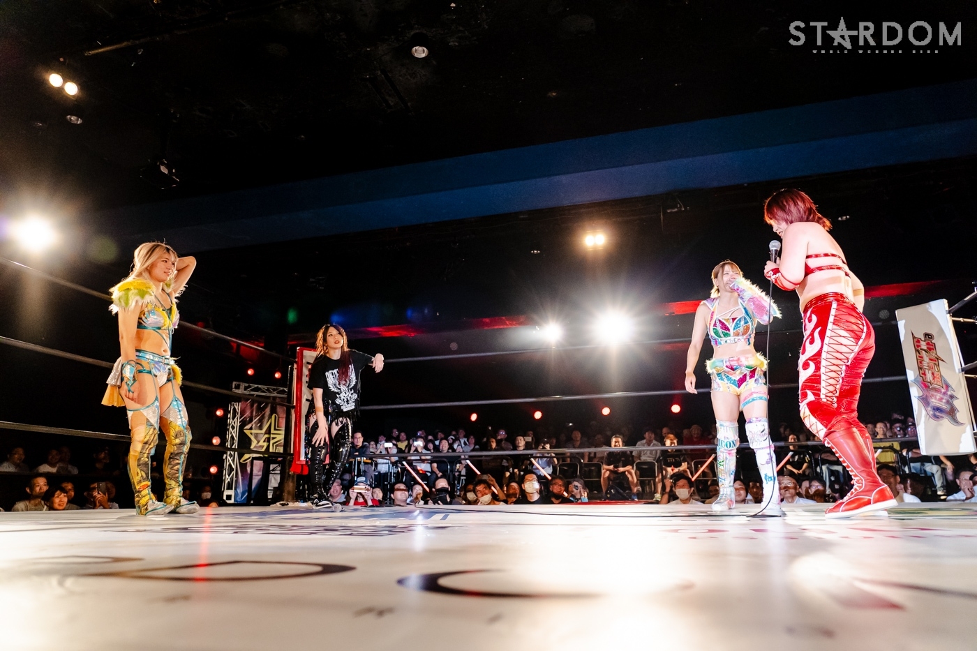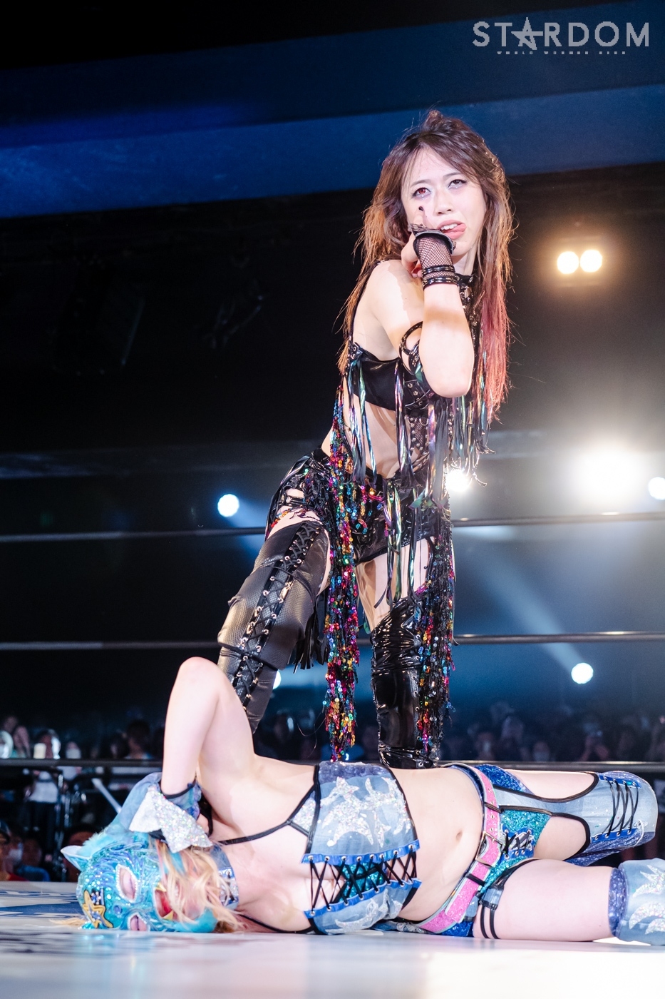 「キッド、アイツが闇堕ちの二番煎じにならないようにとか言ってたけど、アイツさあ、ヒールになってシングルの結果なにか出した? なにも結果出してないヤツに言われる筋合いはないんだよね。私はただ、かわいくて人気があって、そんなヒールレスラーで終わるつもりいっさいないから。だから、つべこべ言わず、オマエら見とけよ」