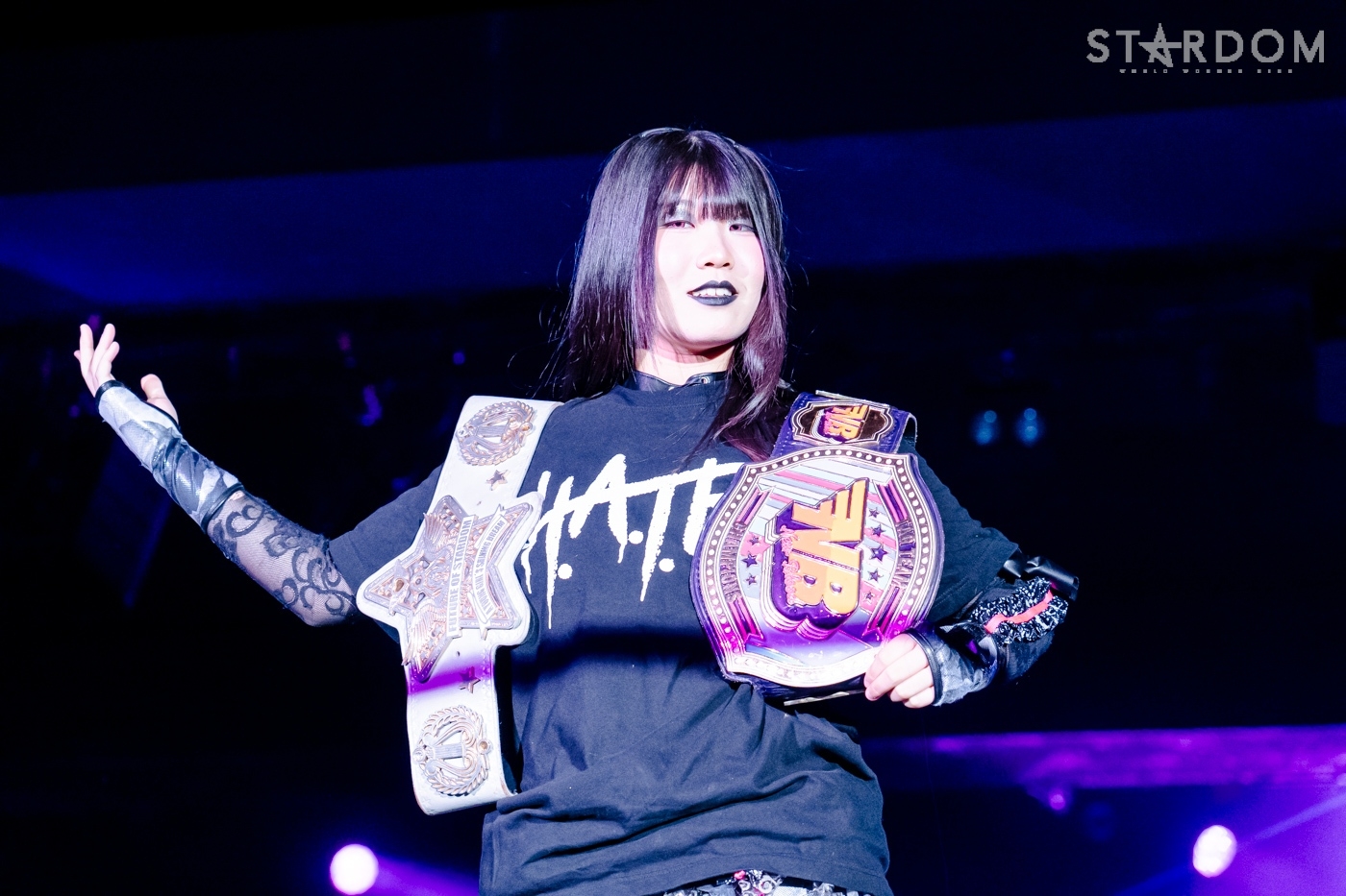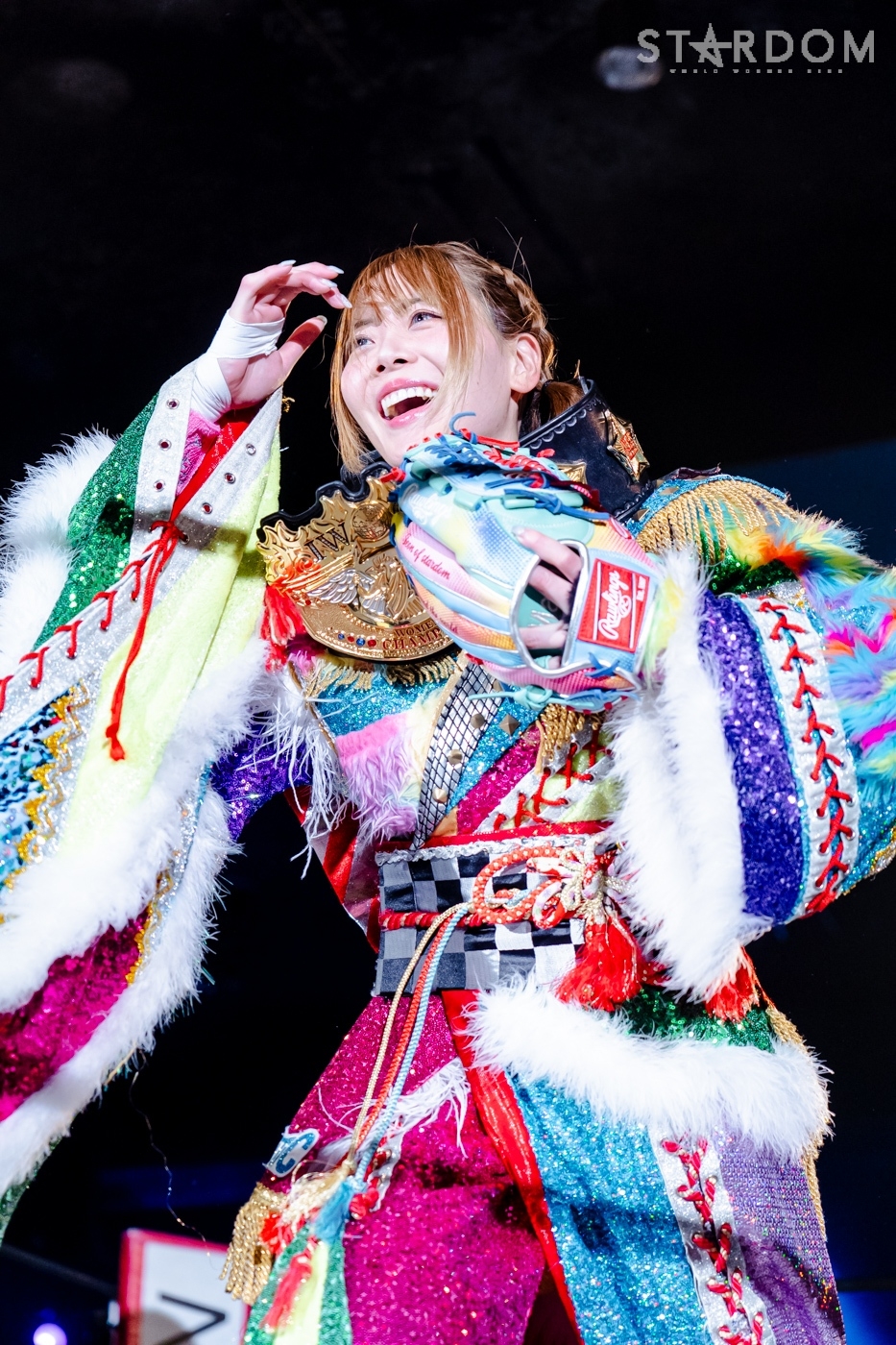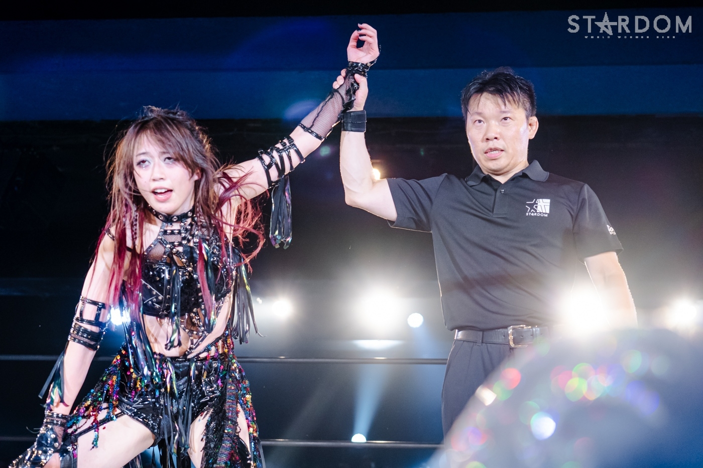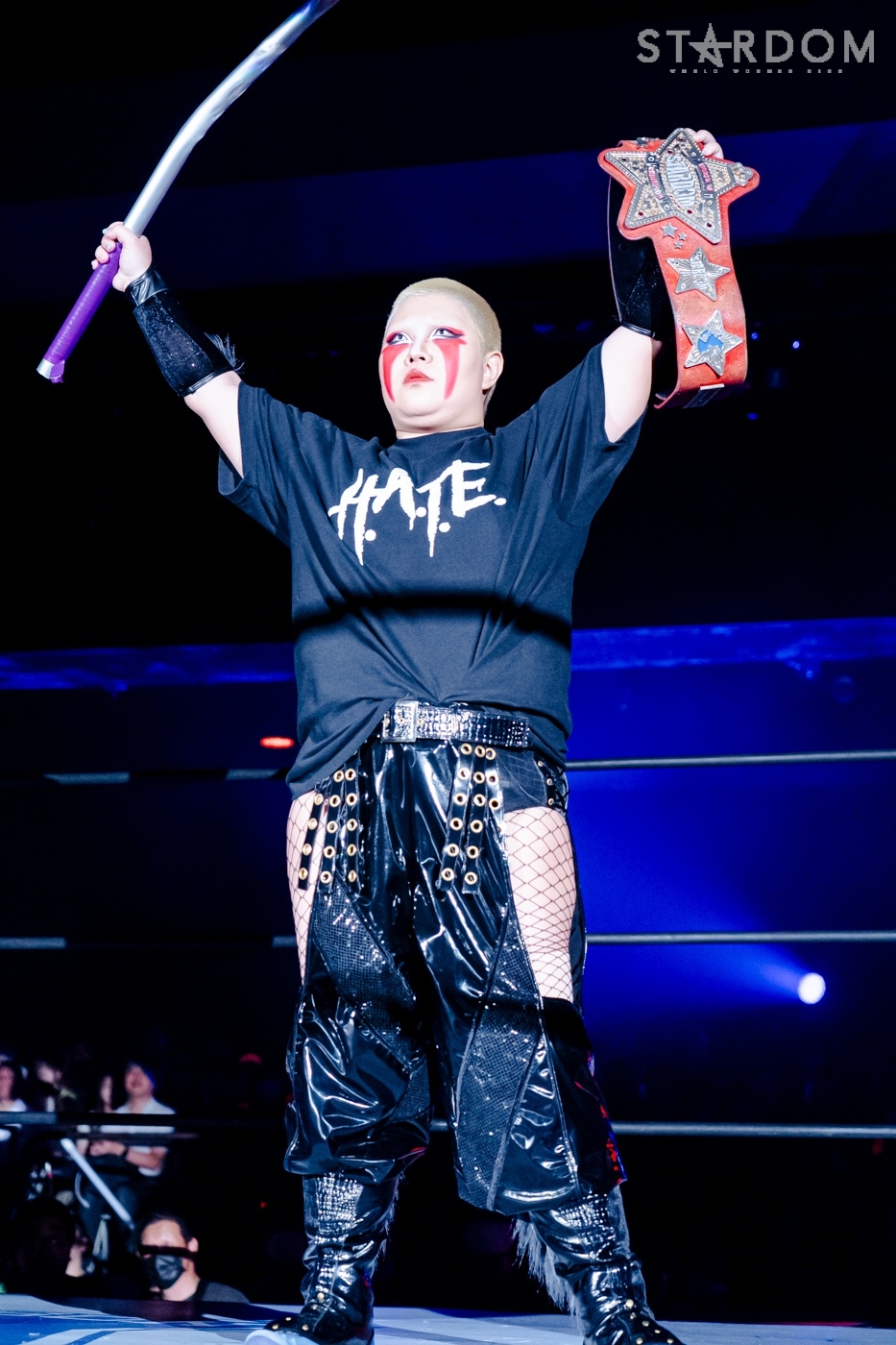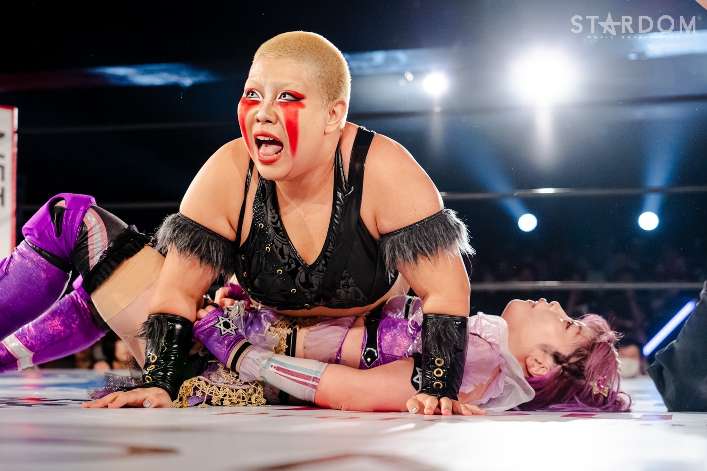 「キッド、アイツが闇堕ちの二番煎じにならないようにとか言ってたけど、アイツさあ、ヒールになってシングルの結果なにか出した? なにも結果出してないヤツに言われる筋合いはないんだよね。私はただ、かわいくて人気があって、そんなヒールレスラーで終わるつもりいっさいないから。だから、つべこべ言わず、オマエら見とけよ」