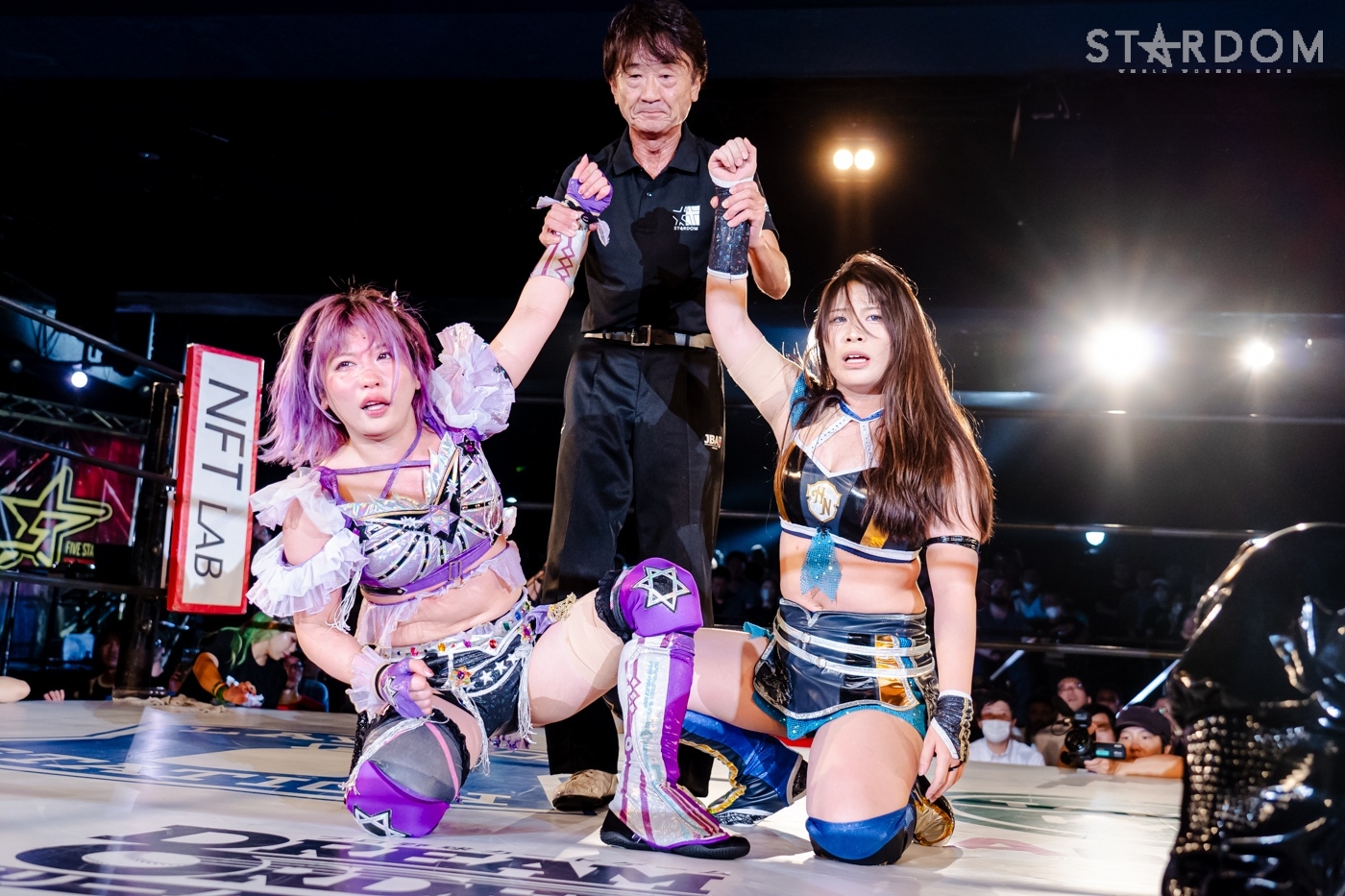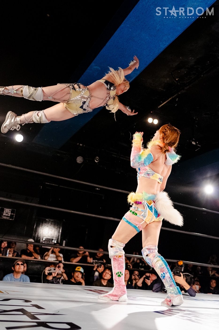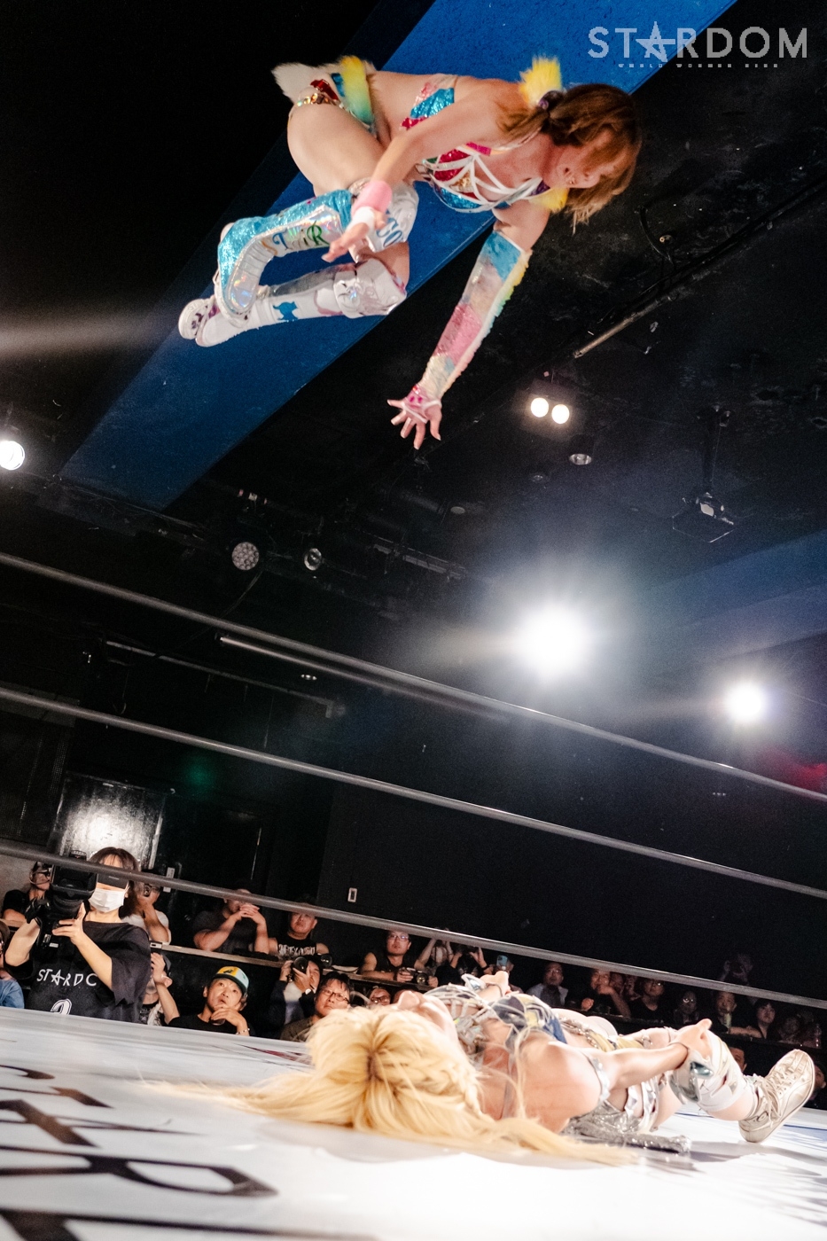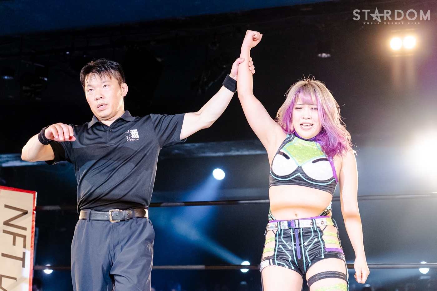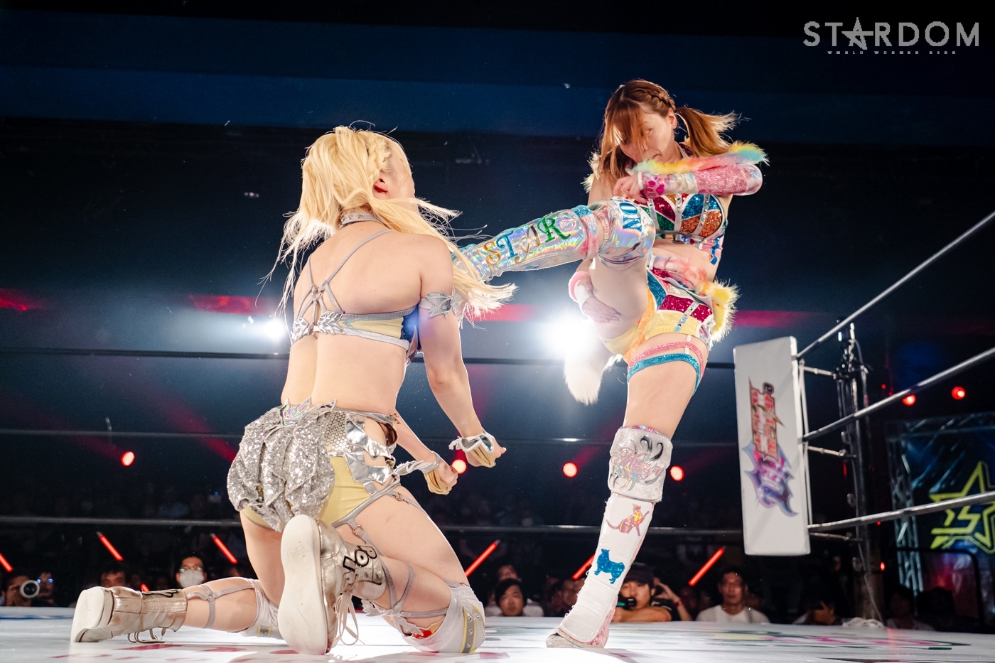ともかがリングインしヘッドロック、フェースロック。星来がエスケープすると、ともかが串刺しニーからニーをもう一発。一撃必殺!ともか蹴りをかわして星来がドロップキック。ともかが丸め込みから正拳突き。星来が返すと、ともかが強引に押さえ込む。星来が蹴りをかわしトラースキック、ジャーマン、ドロップキック狙いをともかが阻止してニーを打ち込む。ともかが持ち上げるが星来が切り返し流れ星。ともかが返してカウンターでハイキック、みちドラを決めると3カウントが入った。
