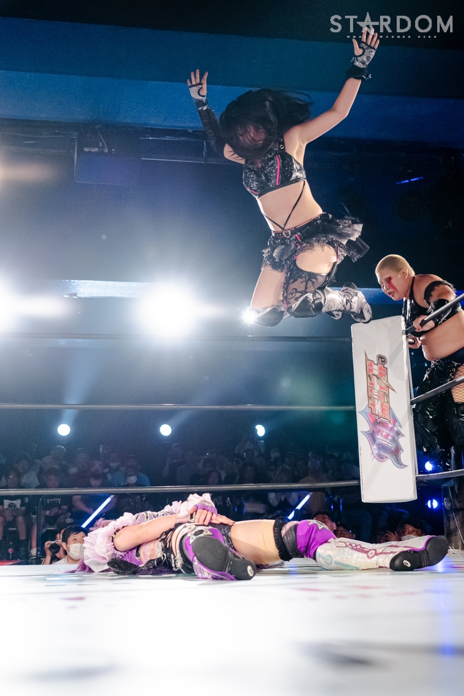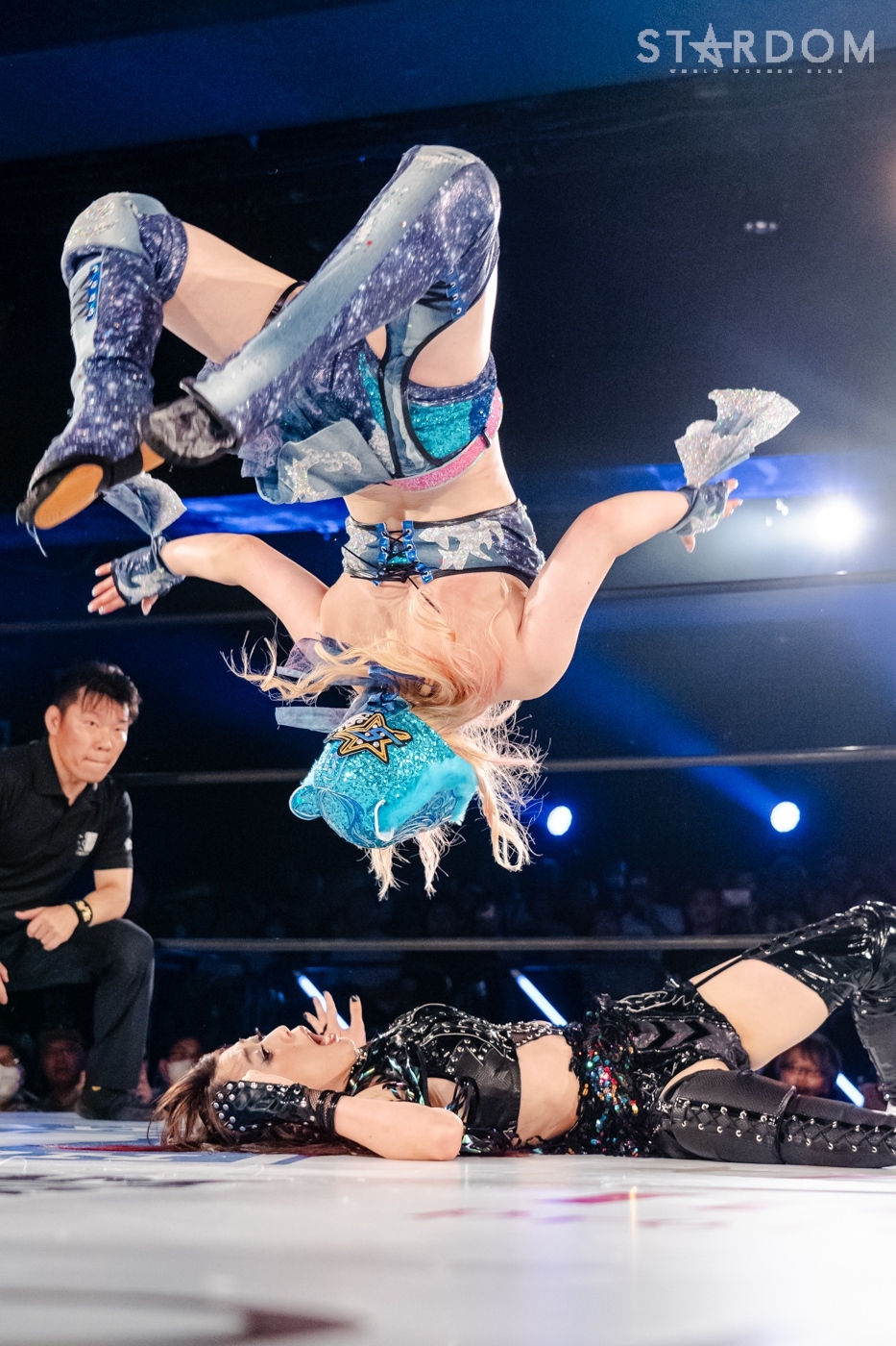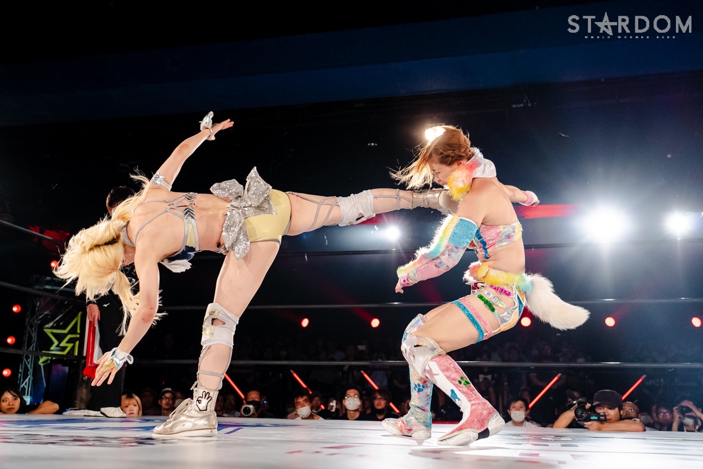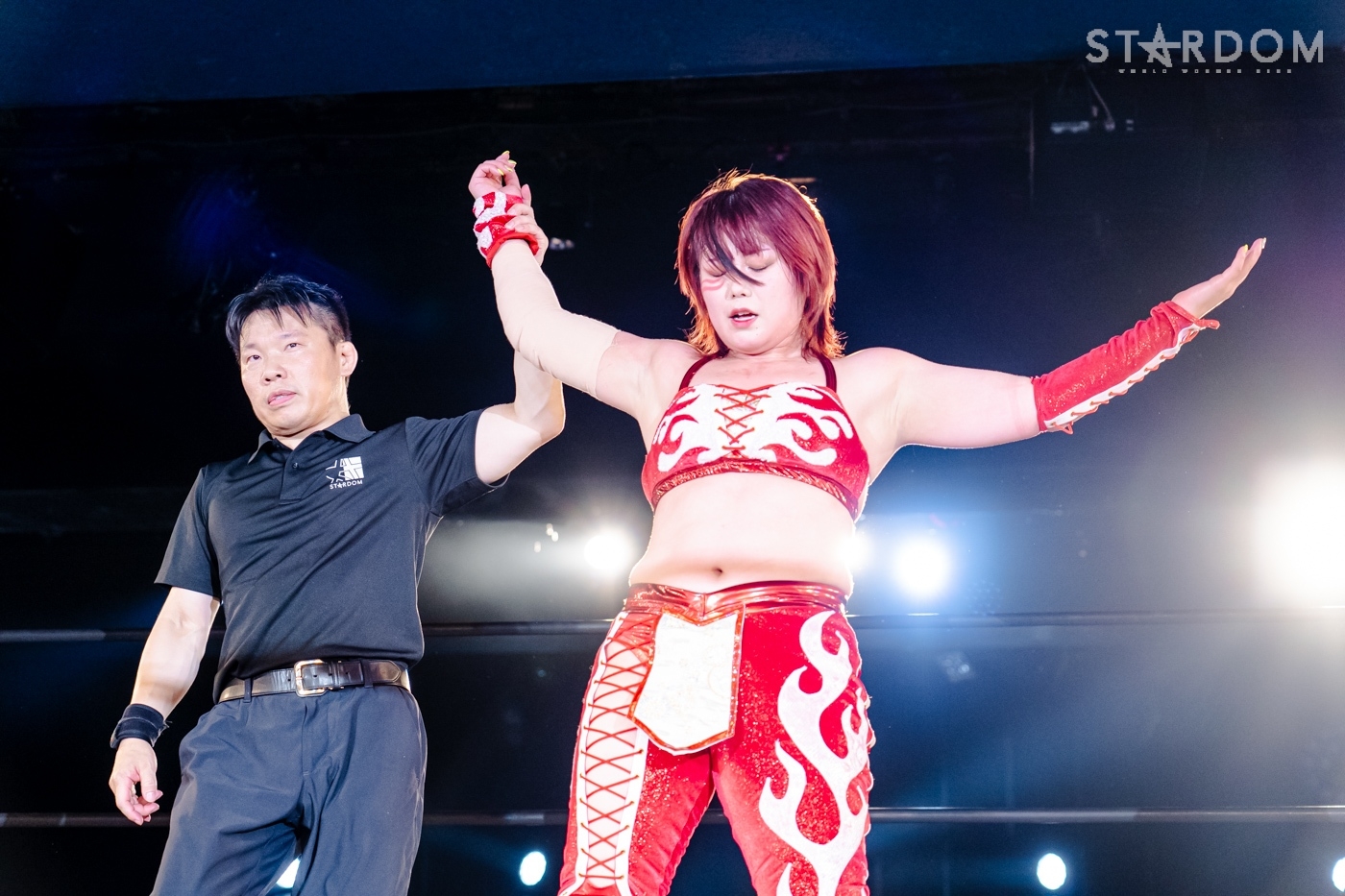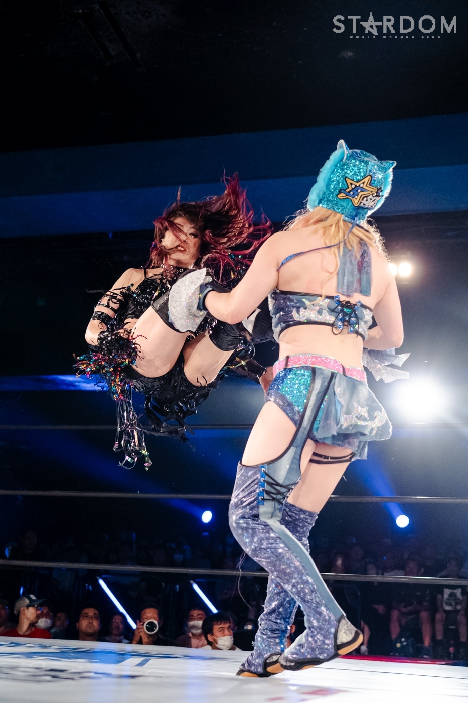 ともかがリングインしヘッドロック、フェースロック。星来がエスケープすると、ともかが串刺しニーからニーをもう一発。一撃必殺!ともか蹴りをかわして星来がドロップキック。ともかが丸め込みから正拳突き。星来が返すと、ともかが強引に押さえ込む。星来が蹴りをかわしトラースキック、ジャーマン、ドロップキック狙いをともかが阻止してニーを打ち込む。ともかが持ち上げるが星来が切り返し流れ星。ともかが返してカウンターでハイキック、みちドラを決めると3カウントが入った。