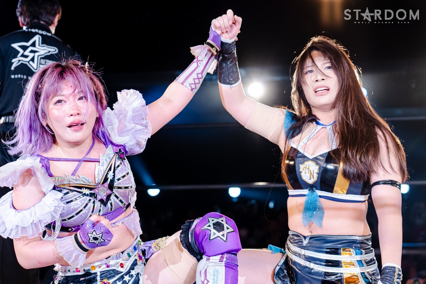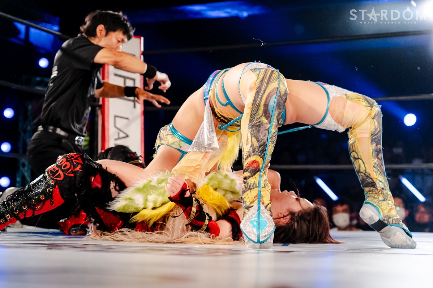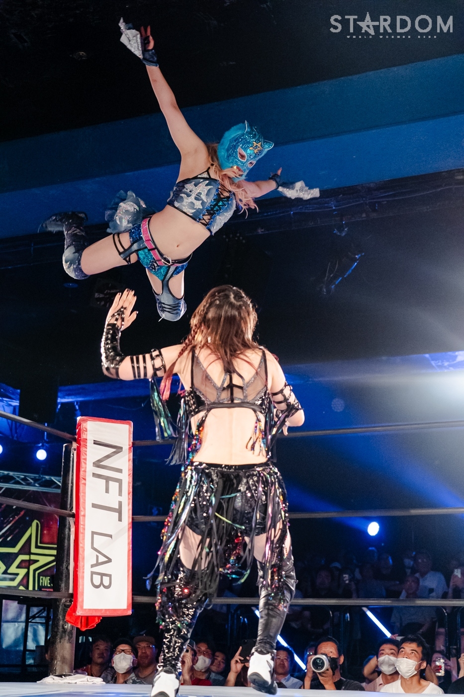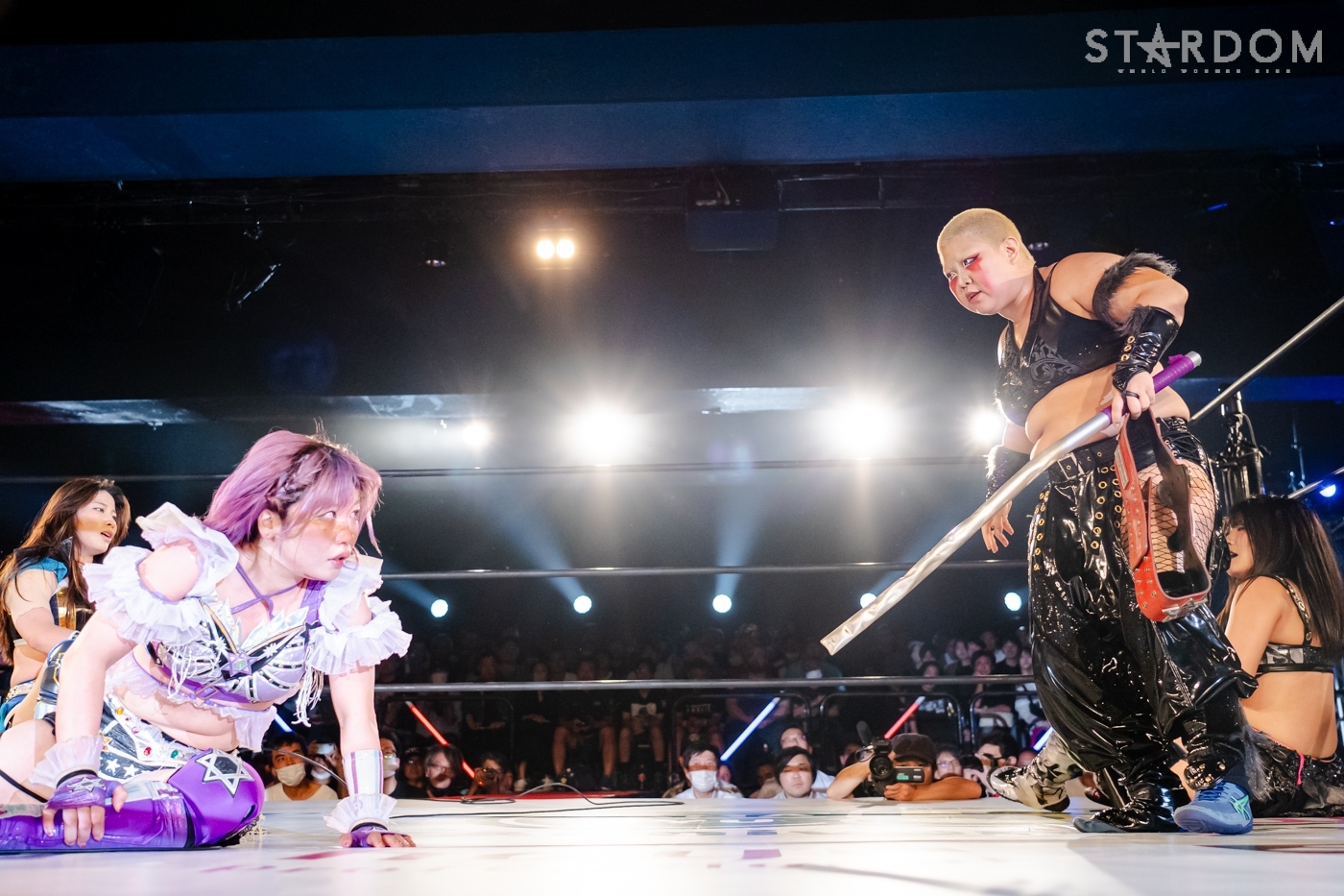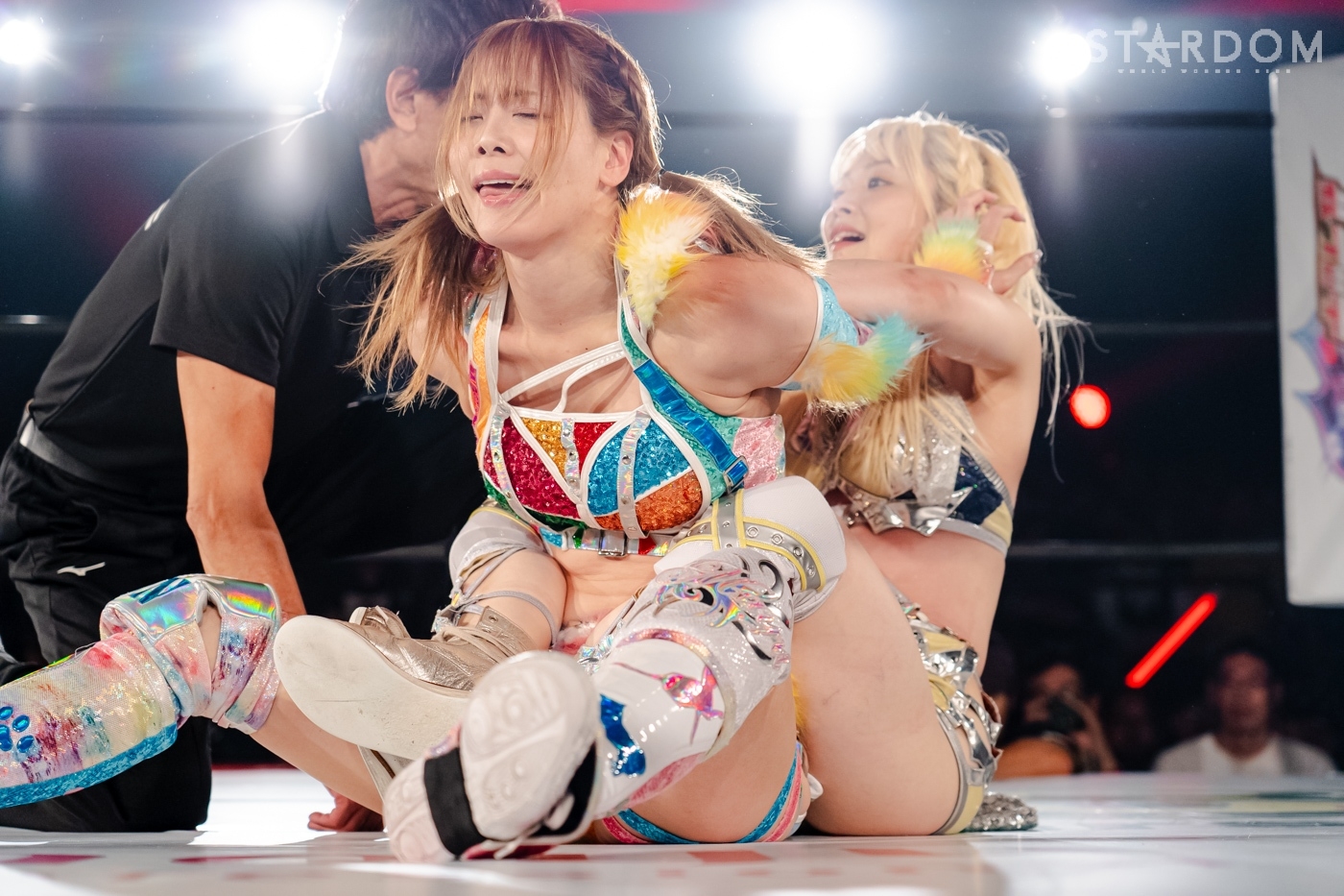 ともかがリングインしヘッドロック、フェースロック。星来がエスケープすると、ともかが串刺しニーからニーをもう一発。一撃必殺!ともか蹴りをかわして星来がドロップキック。ともかが丸め込みから正拳突き。星来が返すと、ともかが強引に押さえ込む。星来が蹴りをかわしトラースキック、ジャーマン、ドロップキック狙いをともかが阻止してニーを打ち込む。ともかが持ち上げるが星来が切り返し流れ星。ともかが返してカウンターでハイキック、みちドラを決めると3カウントが入った。