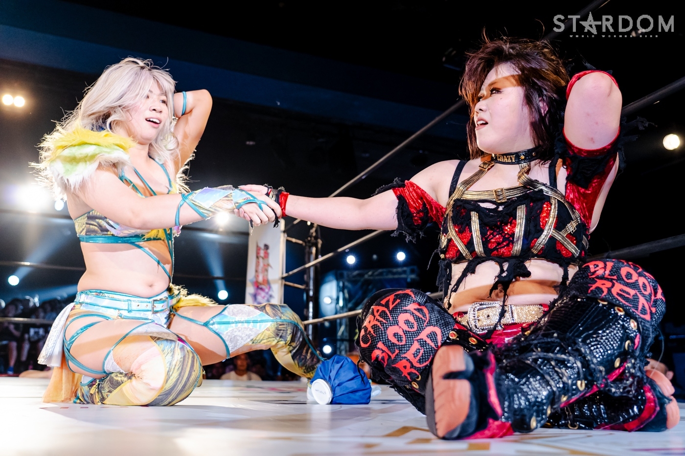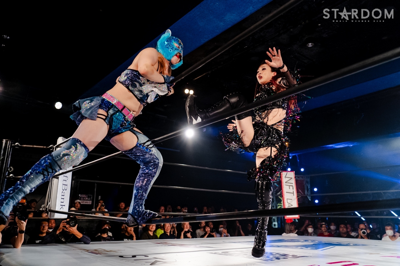ブルースターズBブロック1位の上谷沙弥とAブロック2位のスターライト・キッドによる準々決勝。闇堕ち経験者による一騎打ちはどんな結末を迎えるか? 上谷はクイーンズクエストから大江戸隊あらためH.A.T.E.入りし、ヒールターンを果たしたばかり。キッドは大江戸隊を離れ、新ユニット・ネオジェネシスを結成した。個人の闘いである5★STAR GPで、心機一転が好影響を与えるのは?