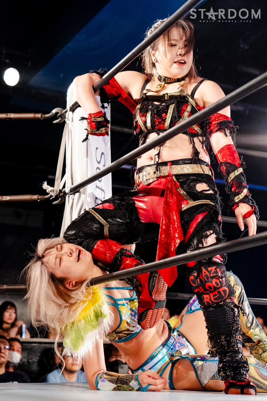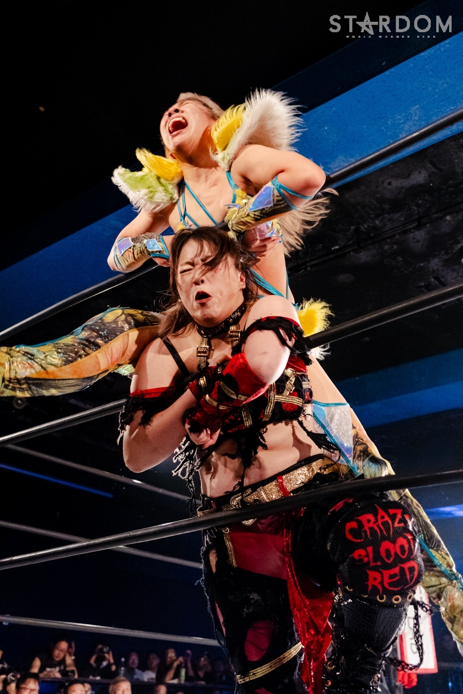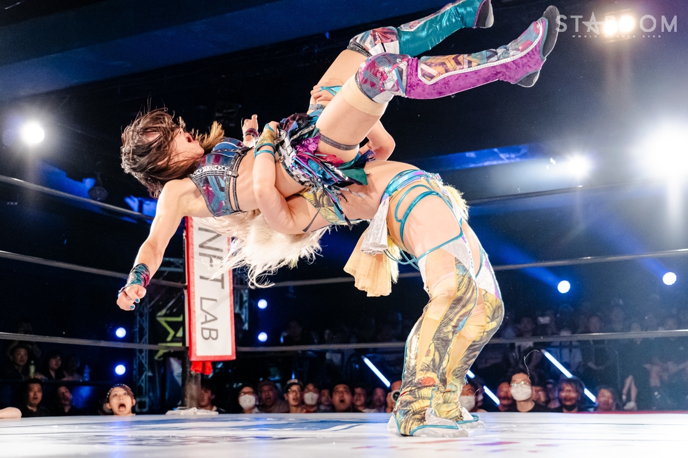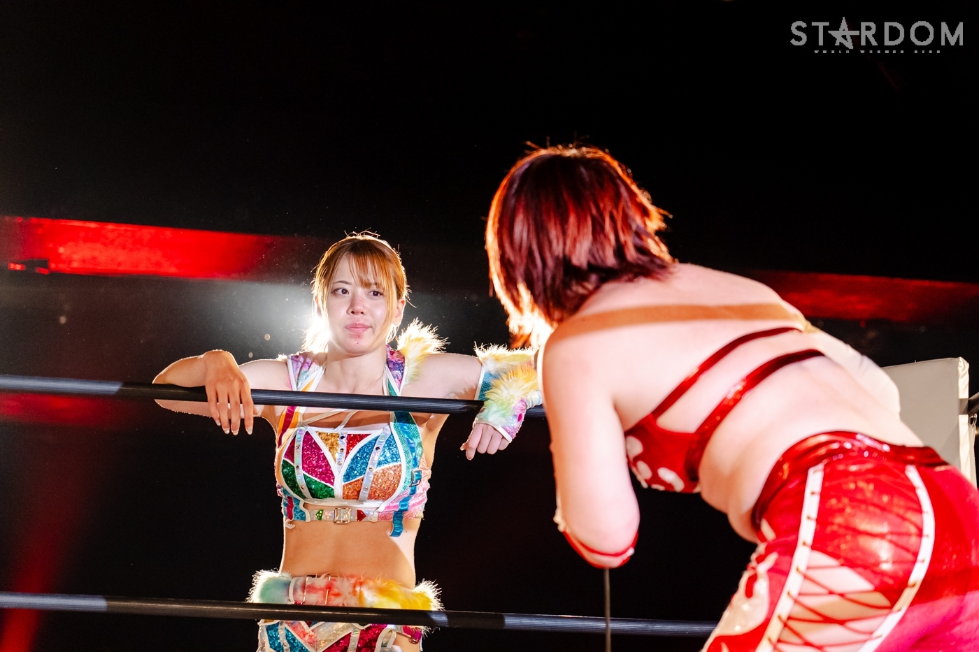 鈴木が入場直後に奇襲を仕掛け場外に羽南を送り出し、髪を束ねて客席に叩きつける。サードロープに乗せると、リング下から顔面蹴り。羽南が返すと鈴季が張り手の連打。羽南もやり返し、エルボーを乱打する。鈴季が先を読んでスピア、サブミッションで動きを止めにかかる。羽南がエスケープすると、反転してボディーアタック。しかし体勢を崩してしまう。鈴季はコーナーに追い込みエルボー連打。羽南がカウンターで払い腰を見舞い、背後からニーアタック。鈴季が返すと、羽南はブロックバスター狙い。鈴季のハイをかわすとバックを取る。鈴季が「なめんじゃねえ!」とエルボーをぶち込む。羽南がエルボーをやり返し、鈴季も応戦。エルボーの打ち合いから鈴季が打ち込むが羽南がやり返す。鈴季が髪を引いて倒すが羽南がヘッドバット、鈴季もヘッドバットで両者ダウン。鈴季が連打も崩れ落ちた羽南が立ち上がる。そこに鈴季がもう一発。鈴季は気合を入れてコーナーへ。羽南が追いつき、バックドロップ。フェイマサ―。しかし鈴季が返してみせる。羽南はフィニッシュを宣言して、ブロックバスター狙い、鈴季がリバースフランケン。羽南が返すと、鈴季はフィニッシュ狙いでジャーマンの構え。羽南が切り返すと鈴季の蹴りをかわしてエルボースマッシュ。エルボーが連続腕交錯、羽南がブロックバスター、1で返した鈴季がテキーラショット。しかし羽南が返してみせる。鈴季がバズソーキック連打。羽南がかわしバックドロップ、鈴季がかわしてジャーマン。羽南がすぐにバックドロップ。鈴季の突進をキャッチしバックドロップホールド連発で3カウントを奪った。