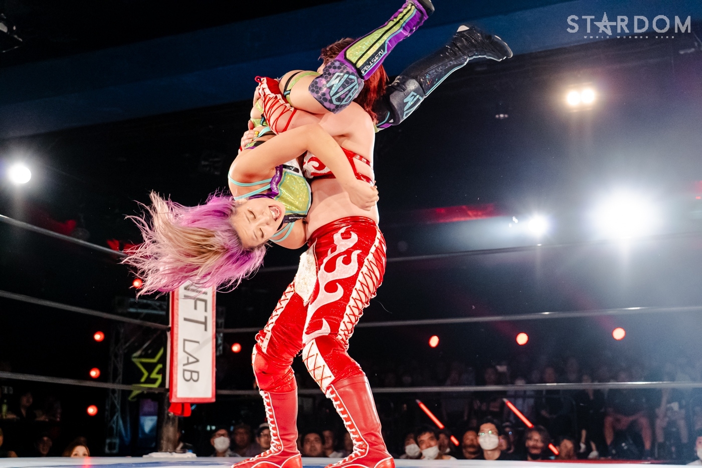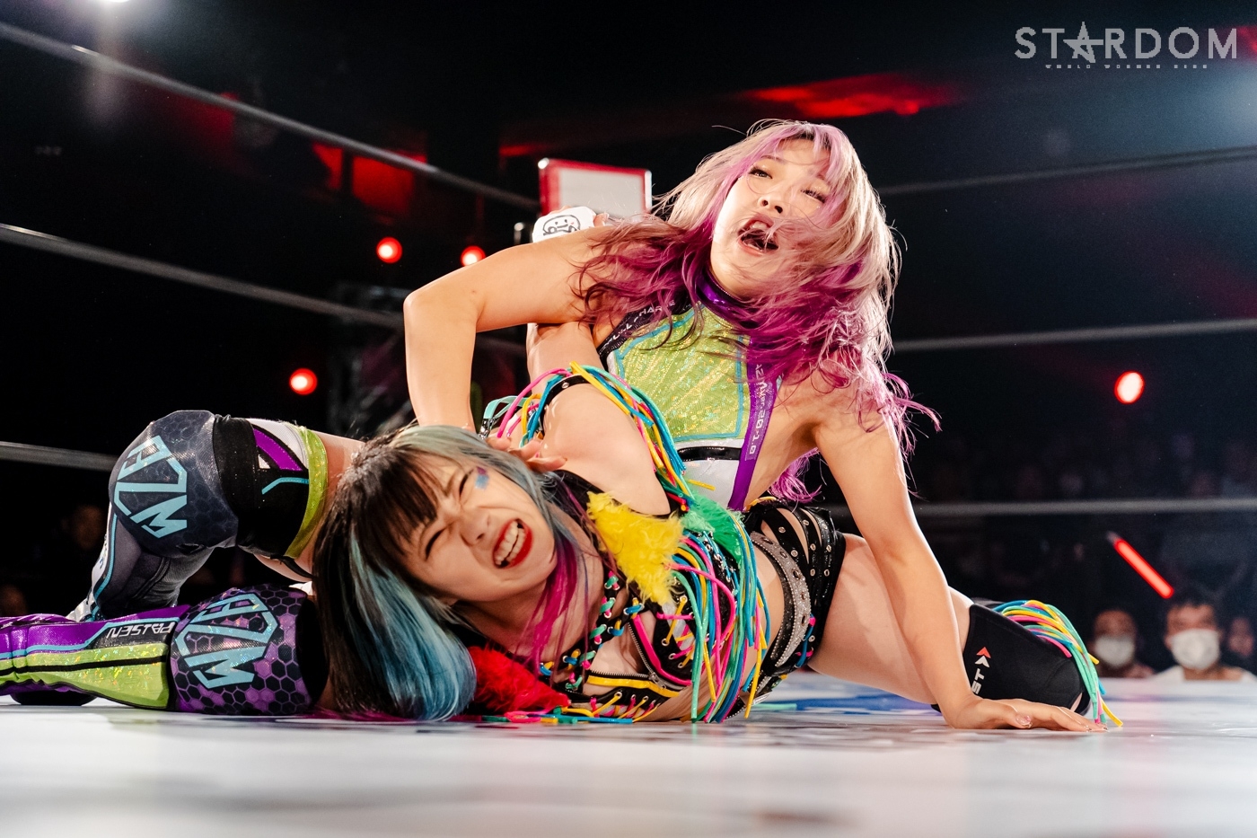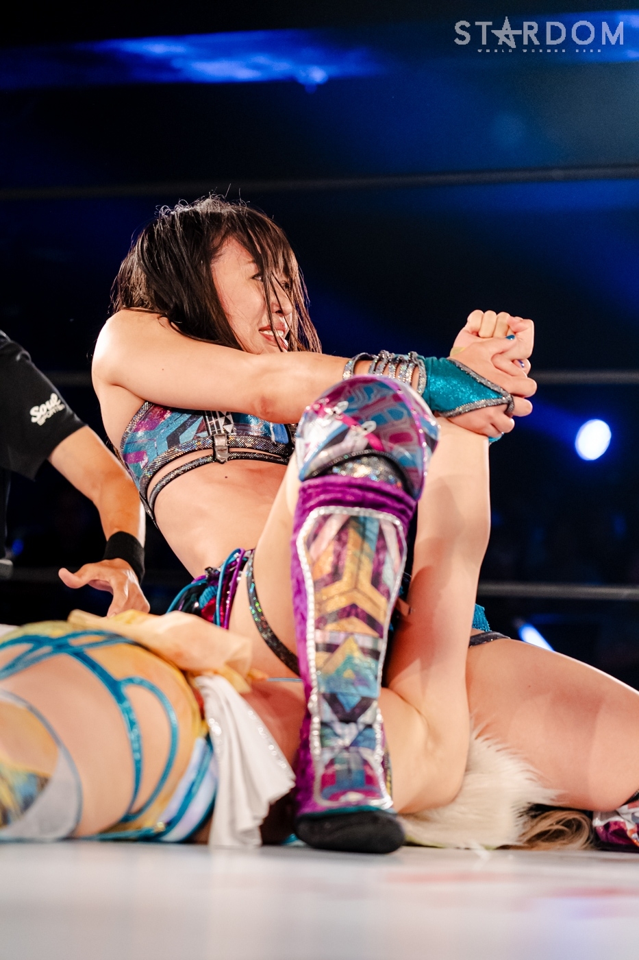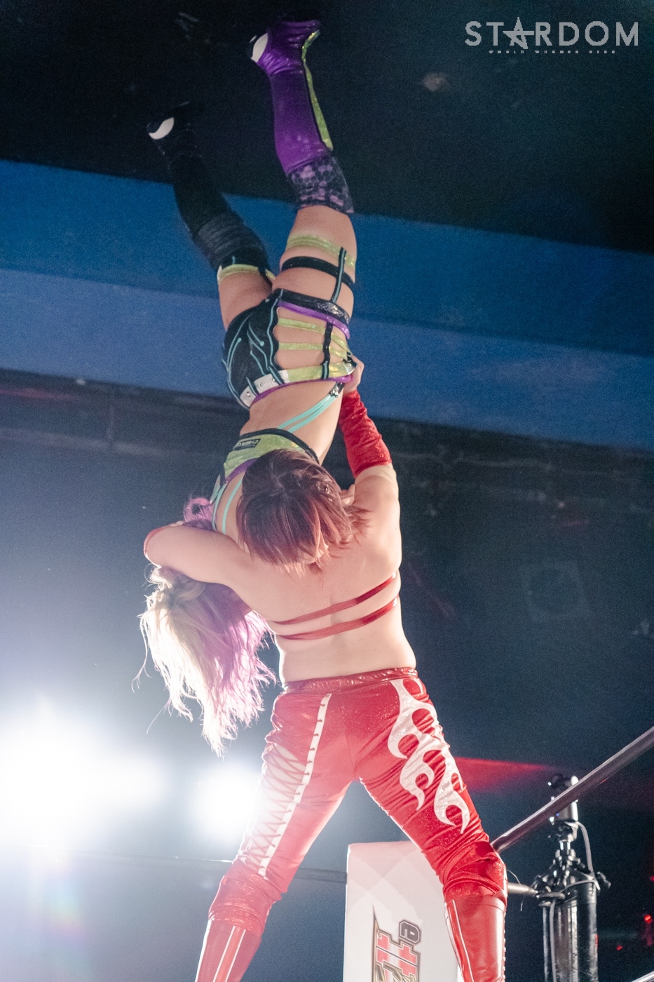 グラウンドの攻防でスタートし、朱里がヘッドロック、三角絞め、腕固め。羽南がエスケープすると羽南が払い腰で叩きつける。朱里がニーからフロントネックチャンスリー。腕十字狙いを羽南がエスケープ。朱里がサッカーボールキック連発。羽南が返すと、朱里がストンピング連打、羽南が突進を止めてニーアタック。場外に送り出すと予告してエプロンからプランチャ。羽南がランニングエルボースマッシュ。朱里が返すと、ブロックバスター狙いを切り返しワキ固めから腕固め。羽南がなんとかエスケープ。羽南のエルボースマッシュに朱里が仁王立ち。羽南がフェイマサ―、ブロックバスターホールド。朱里が返すと、羽南はフィニッシュを宣言してバックを取る。ロープに逃れる朱里を戻してラリアット。朱里がかわしてジャーマンも羽南がフェイマサ―。朱里がコードブレイカー、ニーアタック。羽南がバックドロップ。エルボーの打ち合いから朱里がミドルキック3連打。10分経過。朱里がスリーパー、胴締めに移行するが羽南の足がロープへ。朱里がトップに乗せてDDT。羽南が返すと、朱里はフィニッシュを宣言して流炎の構え。羽南が丸め込むが2カウント。朱里が引き起こすと羽南がバックドロップ。2発目狙いは朱里が切り返しニーアタック。流炎の構えを切り返し羽南が突進、しかしハイキックを食らう。朱里が流炎を旋回して決める紅蓮。決まったと思われたが羽南が肩を上げる。朱里はバズソーも羽南がかわし丸め込む。3カウントが入り羽南が朱里を破ってみせた。
