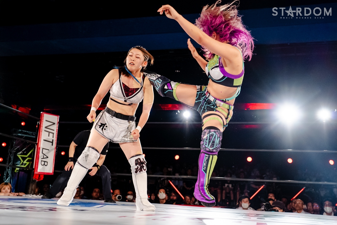 星来がドロップキック、AZMが丸め込みの連続。AZMのドロップキックをかわし丸め込みの応酬。エルボーが交錯し、星来がジャーマン。星来のドロップキックをAZMがハイで迎撃。両者ダウン。AZMがバックを取り投げ捨てるとハイキック。星来が返すと、AZMがカナディアンデストロイヤー狙い。星来が切り返し丸め込む。星来のドロップキックがヒットもAZMがカナディアンからあずみ寿司。3カウントが入り、連勝のAZMが勝ち抜け、決勝トーナメント進出となった。