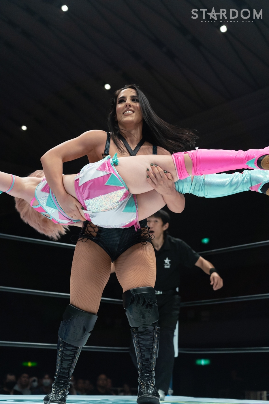 握手をかわしロックアップ、ジーナが腕を取りにいくと梨杏も取り返す。腕の取り合いから梨杏がロープを利用。ジーナが切り返しグラウンドで丸め込む。梨杏が返すと、ジーナは再度グラウンドに持ち込みヘッドロック。梨杏が丸め込みの連続からドロップキック、マヒストラル。ジーナが返すとラリアット。梨杏がかいくぐってコルバタを決める。梨杏の突進をジーナがかわし突進。梨杏が足を出して回避し、コルバタからドロップキック。梨杏は予告してボディースラムの構え。ジーナが切り返し、逆片エビ固め。梨杏がエスケープすると、ジーナがドロップキックからダブルアームスープレックス、旋回式サイドスラム。返した梨杏にジーナはブレーンバスターの体勢。滞空時間を取ると梨杏が逃れようとする。しかし、ジーナは強引に叩きつけてみせる。梨杏が返すと、ジーナがファイヤーマンズキャリー。梨杏がこらえて突進するが、ジーナがかわして押さえ込む。梨杏が返してエルボー連打。ジーナがチョップを叩き込み梨杏が崩れ落ちる。ジーナは梨杏を引き起こし、コーナーに振る。梨杏がかわしてコルバタからボディースラム狙い。ジーナがこらえると梨杏がアームホイップ。ジーナがボディースラムを切り返すと、梨杏がフィッシャーマンで叩きつける。返したジーナがノーザンライトも2カウント。ジーナの突進をかいくぐり梨杏が丸め込み。ジーナが返すと、バックキック、二段式ジャーマン。3カウントが入り、ジーナが梨杏を破った。