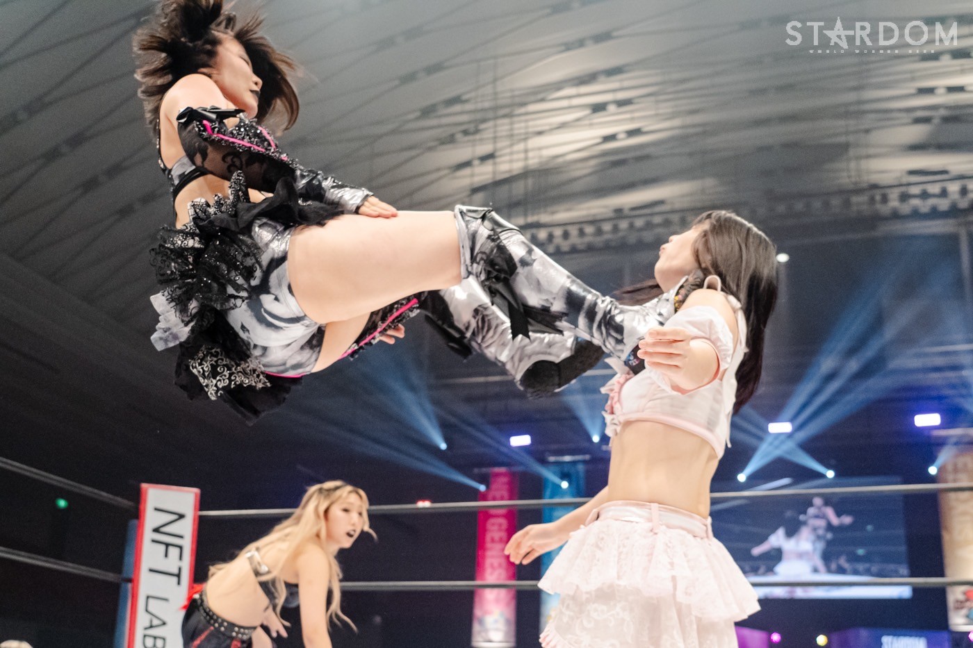 ゴッズアイの朱里&鹿島沙希&レディ・C組とH.A.T.E.の渡辺桃&小波&テクラ組が6人タッグマッチで対戦。試合の内容と結果によってはゴッデス・オブ・スターダム王座戦線に動きが出るかもしれない闘いだ。
