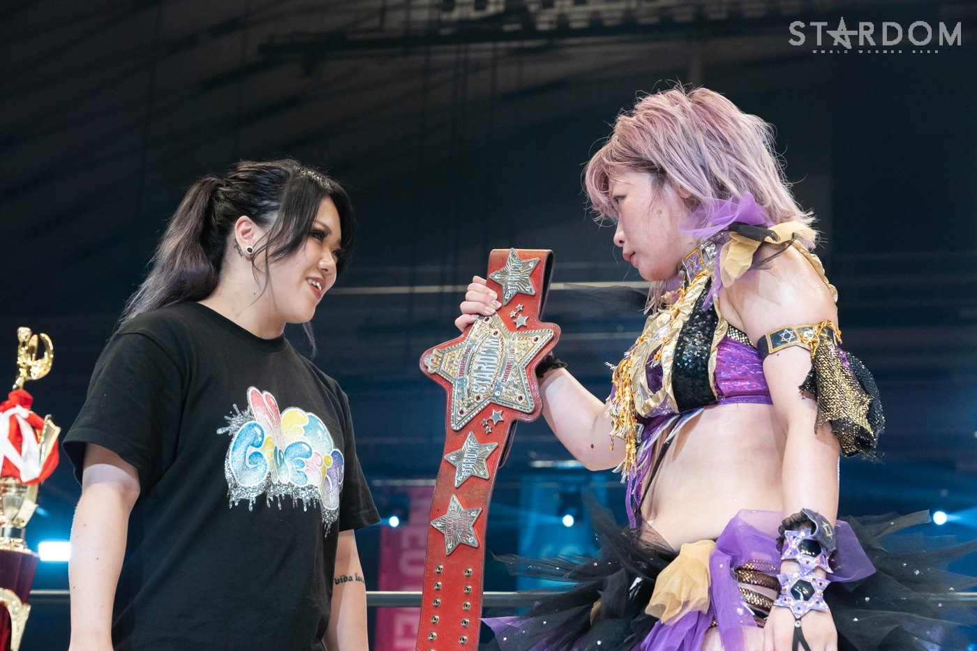 中野「舞華! なんでそんなに強いの? スターダムに舞華がいてくれて本当によかった。舞華…スターダムを守ってくれて、ありがと、ウフ。でもこれからは、たむが舞華よりも~っとも~っとスターダムのこと照らしていくから、スターダムもベルトもずっと守り続ける! だからまた挑戦しにきてくれないとイヤだからね!」