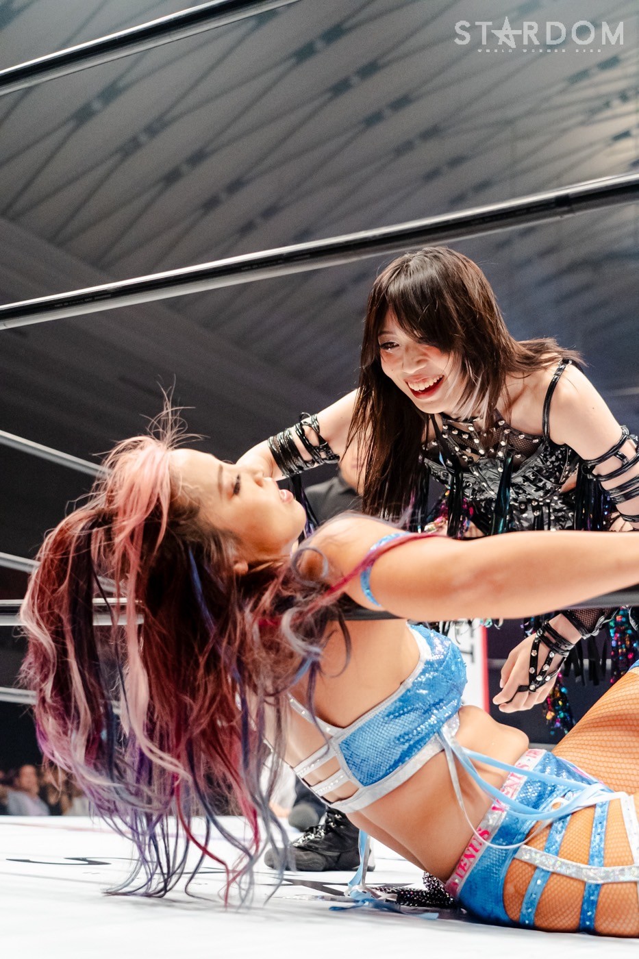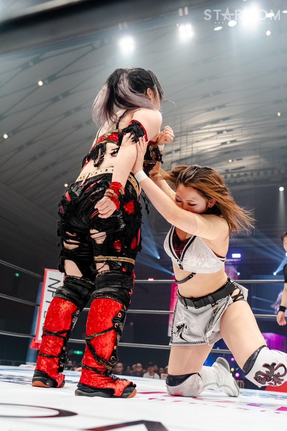 かつてワンダー・オブ・スターダム王座を争った白川未奈と上谷沙弥が一騎打ち。先月は白川が5★STAR GPを欠場しアメリカ遠征、AEWで準レギュラーの座をキープし、イギリスで王者にもなった。その間、クイーンズクエストに別れを告げH.A.T.E.入りで闇堕ちした上谷は5★STAR GPで準優勝。白川が帰国後に対戦したい相手として名前を挙げたのが上谷だった。闇堕ち上谷に白川はいったい何を感じるのか?
