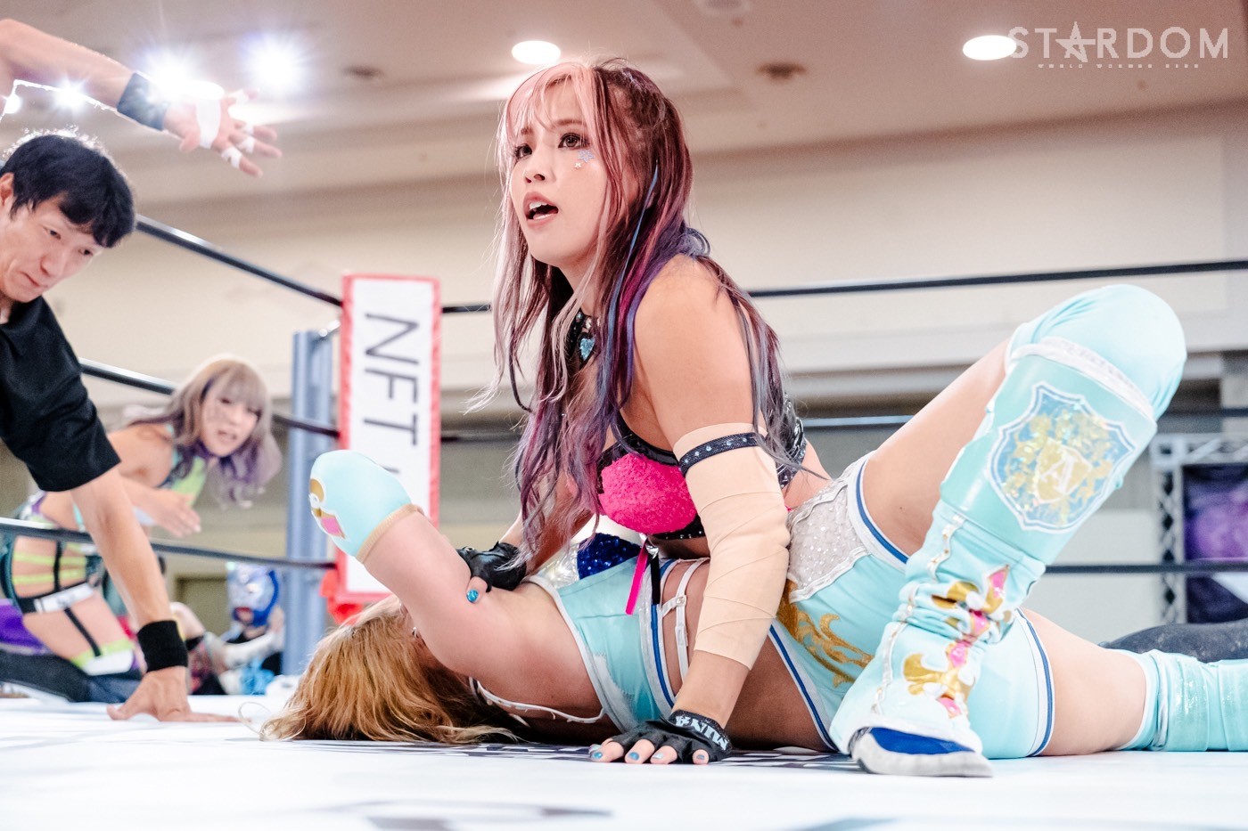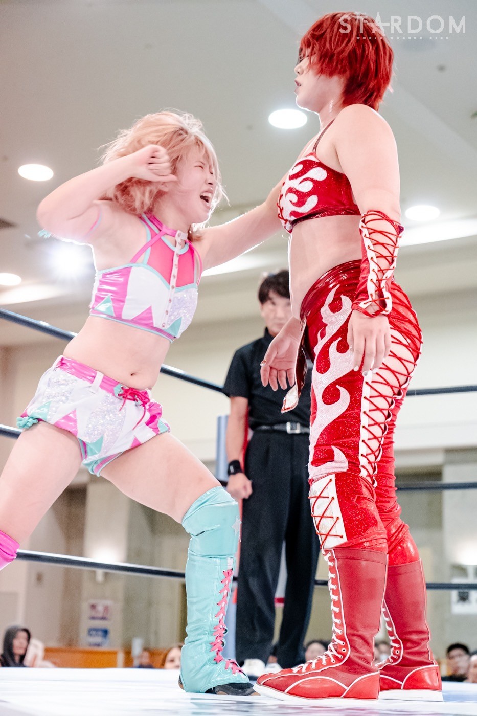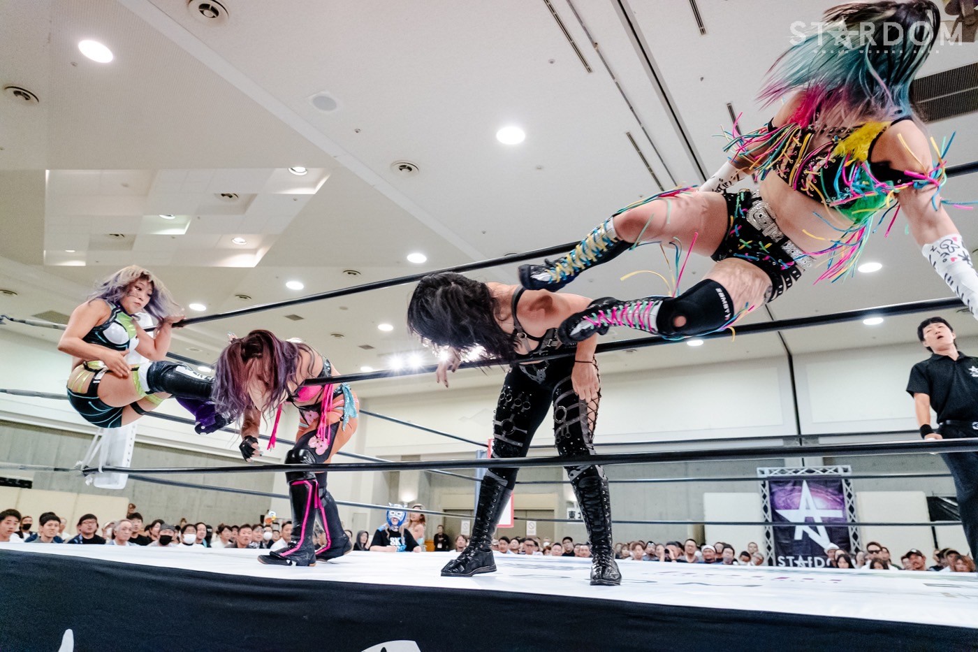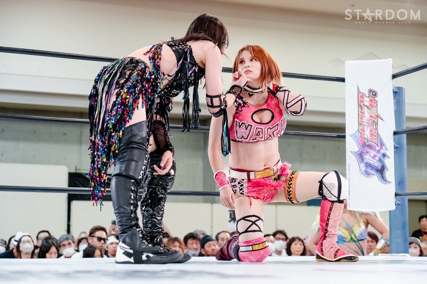 コズミックエンジェルズの中野たむ&なつぽい組と、ネオジェネシスのスターライト・キッド&鈴季すず組がタッグマッチで激突。中野は舞華を破りワールド・オブ・スターダム王座の初防衛を果たしたばかりで、次期挑戦者には鈴季を指名。よってこの試合は10・5名古屋でおこなわれるタイトルマッチへの前哨戦。大一番に向けて弾みをつけるのはどちらか?