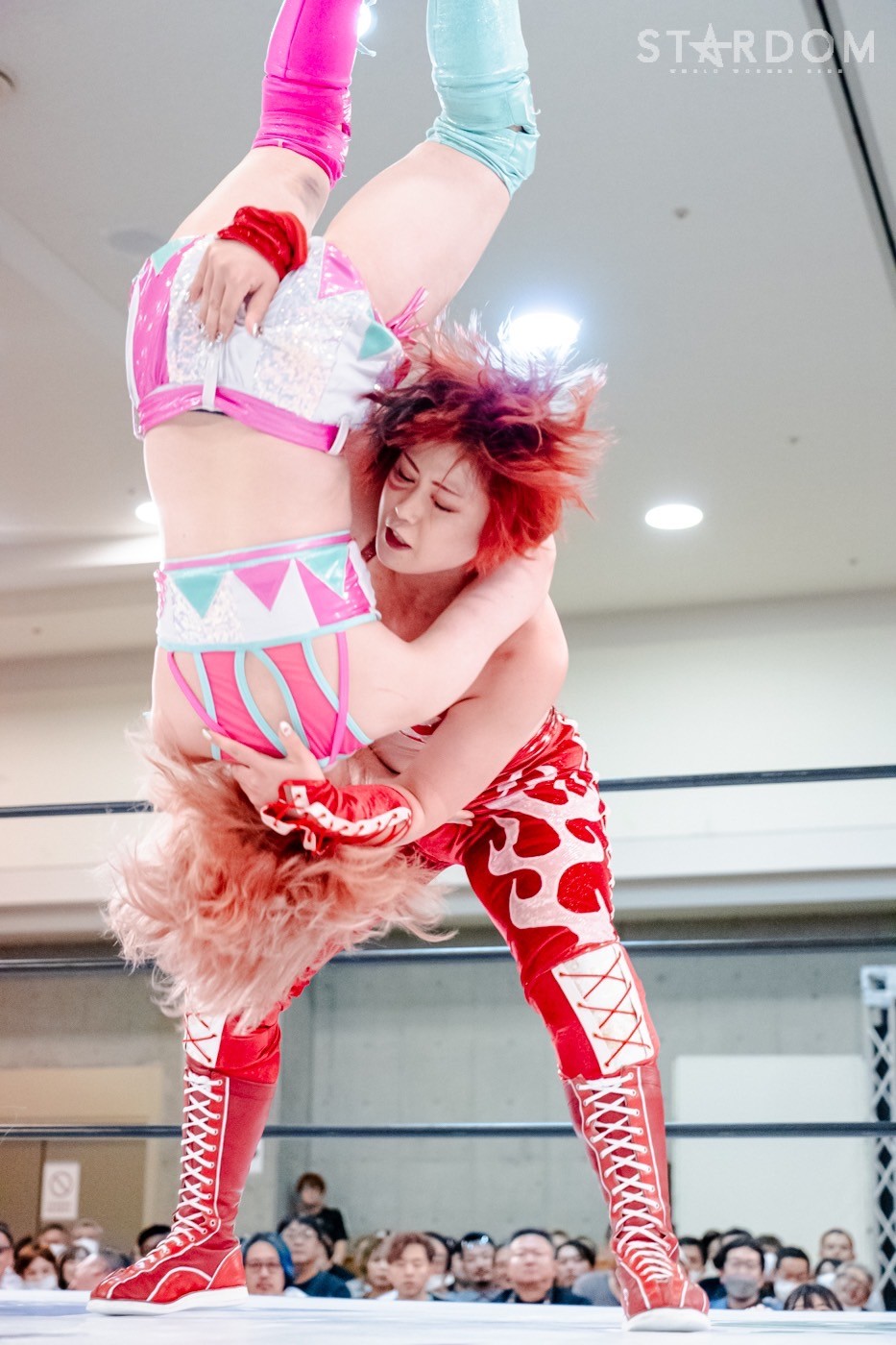 梨杏のセコンドに、さくらあや&玖麗さやかがつく。梨杏が「お願いします!」と握手を求めると、舞華も静かに応じて試合がスタート。梨杏コールのなか、梨杏が足を取りにいくが、舞華がグラウンドで上になる。梨杏がネックロックにいこうとすると、舞華がグラウンドで反転し、マウントポジション。梨杏が反転しカバー。舞華が1カウントで返すと、梨杏が腕を取りにいく。舞華が切り返し腕を取る。舞華は腕十字を狙う。梨杏が上になりカバー、返されるとドロップキックの5連発。舞華がかわしてヘッドロック。梨杏が切り返そうとするが、舞華がさらに締め上げる。舞華はヘッドロックをかけてグラウンドへ。舞華が立ち上がると、梨杏が切り返して腕を取る。舞華が切り返し再びヘッドロック。梨杏がヘッドロックに切り返すが、舞華がロープに振ってアームホイップ、コーナーに叩きつけると串刺しラリアット、ショルダータックル。梨杏が返すと、舞華は逆エビ固め。梨杏がエスケープも、舞華がパワフルなボディースラム5連発。しかし、梨杏が返してみせる。「応援されてるぞ」「きかねえよ」と舞華。仁王立ちで梨杏のエルボーを受けて立つ。舞華がエルボー一発で倒して突進。梨杏がかわしてクロスボディーも、キャッチされて叩きつけられる。舞華は逆エビ固め。梨杏がロープに手を伸ばすが、舞華はエスケープを許さず中央に引き戻す。梨杏がもう一度エスケープにトライ。動きが止まるが、なんとかロープに到達する。舞華が「こいよ」と挑発。梨杏が立ち上がりエルボー連打。しかし、舞華が打たれるたびに前進し、コーナーに追い込む。なおも梨杏はエルボー連打。舞華が串刺しラリアット。別コーナーに振り、もう一発狙うと、梨杏が止めてコルバタで叩きつける。梨杏は「投げるぞ!」と叫ぶも、舞華が反対にボディースラム。梨杏がバックを取るが、舞華が跳ね除ける。舞華の突進に梨杏がエルボー、フェースクラッシャー。舞華が返すと、梨杏は押さえ込みの連続。10分経過。梨杏がスリーパー、舞華が立ち上がりコーナーに叩きつける。梨杏は離さずに締め続ける。舞華がコーナーに押し込むも、梨杏がもう一度飛びついてスリーパーを継続。舞華は前方に叩きつけるも、梨杏がすぐにエルボー連打。梨杏の突進を止めて舞華が「終わりだ」と予告。しかし、梨杏が切り返して丸め込みの連続。ラリアットをかわしてさらに丸め込むが2カウント。梨杏のエルボー連打に舞華は「もっとこい!」。梨杏は張り手から突進するが、パワースラム、スライディングラリアットを食らう。梨杏が返すと、舞華はフィニッシュを宣言してバックドロップ。しかし、梨杏の肩が上がる。舞華は梨杏を引き起こしラリアット。大の字でダウンの梨杏に舞華は、「もっとこい!」と挑発。梨杏が立ち上がると、舞華がみちのくドライバー。3カウントが入り舞華が梨杏をピンフォールした。