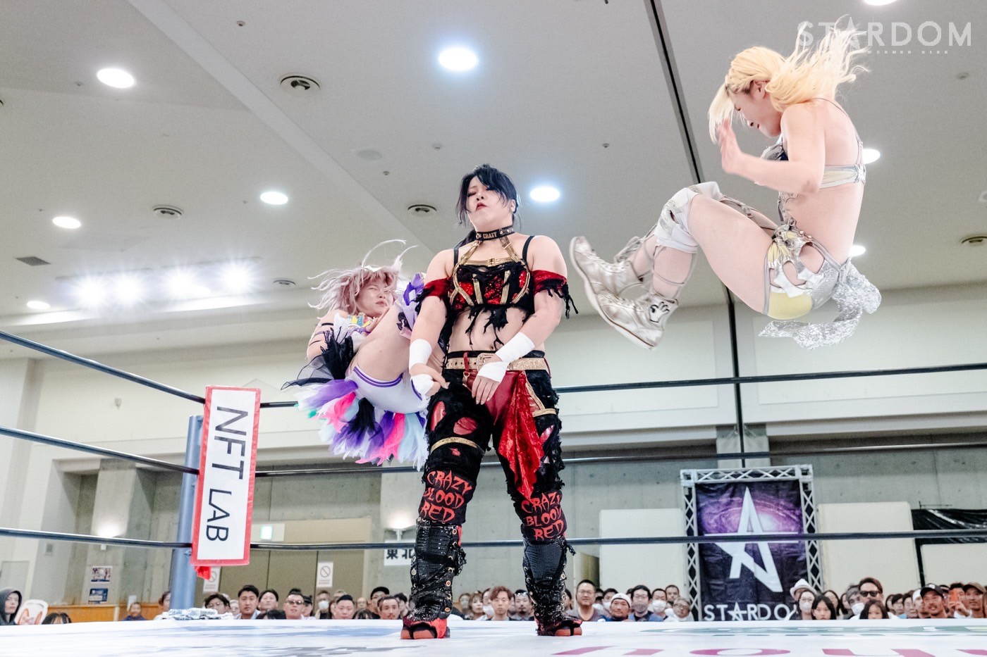 STARSの羽南、E neXus Vの月山和香、H.A.T.E.の上谷沙弥が一度に闘う3WAYマッチ。ヒール転向の上谷の闘いぶりがキーとなりそうだ。