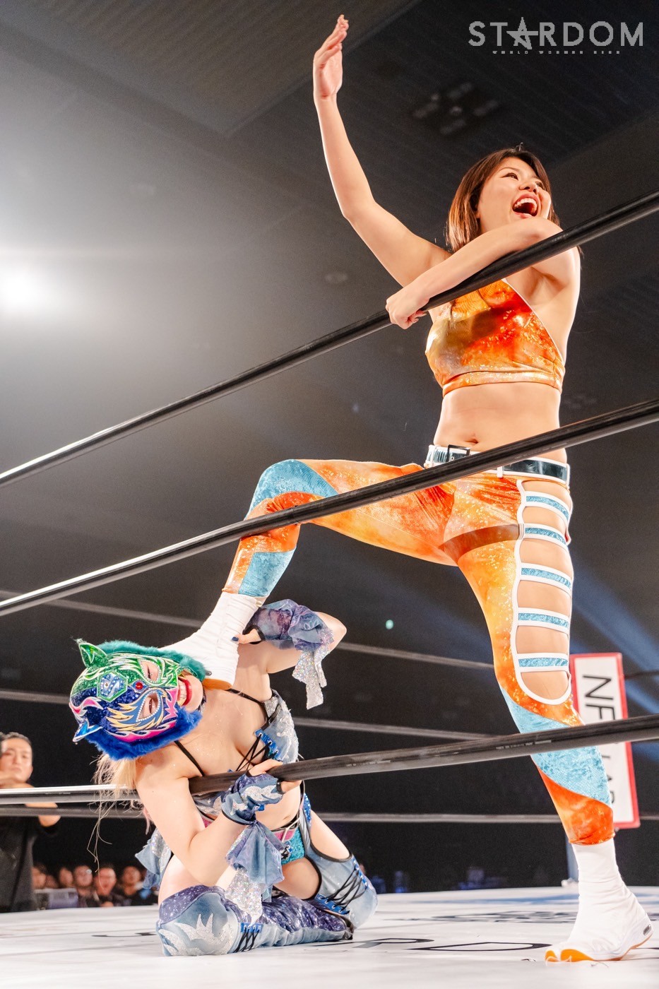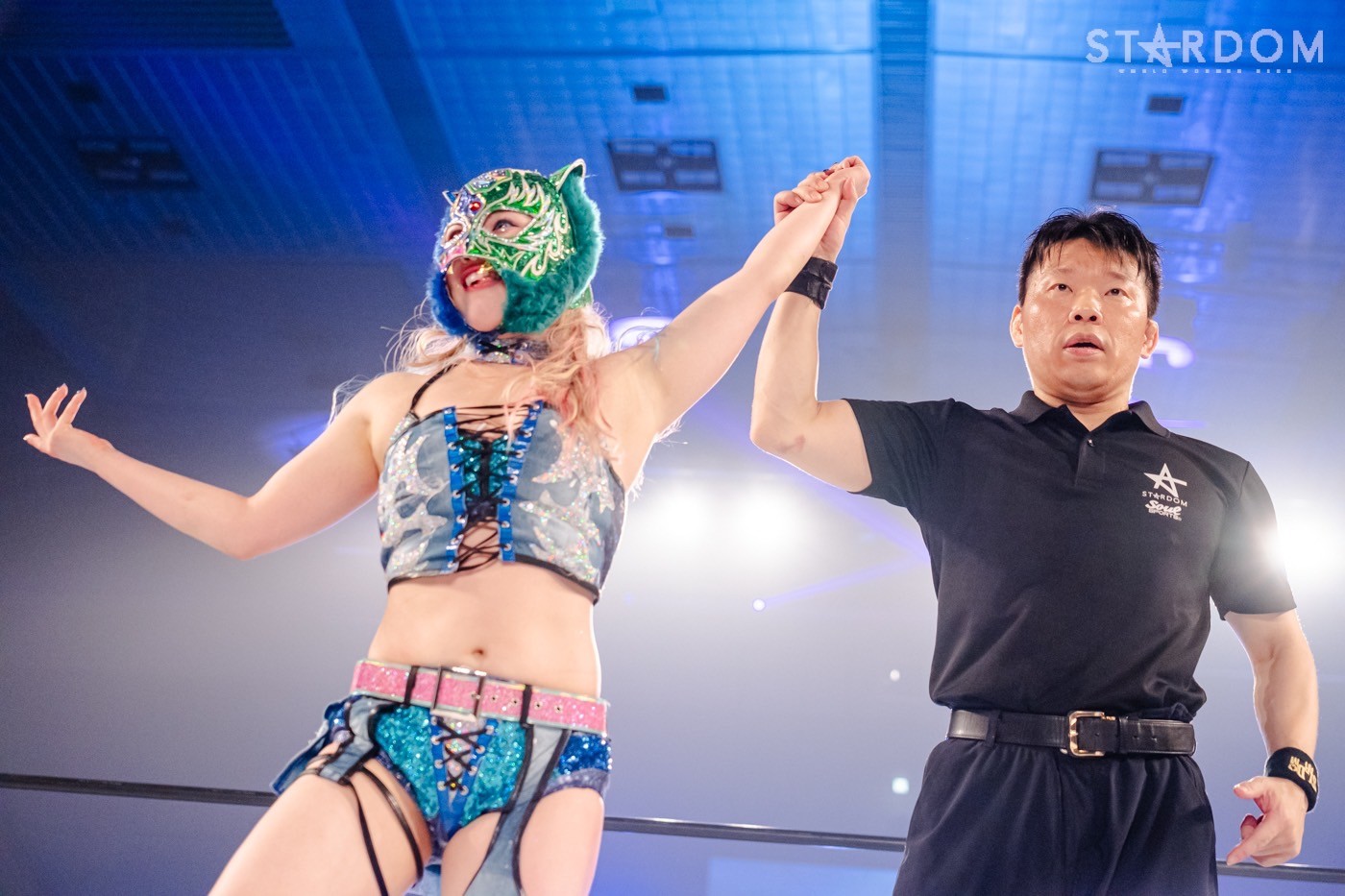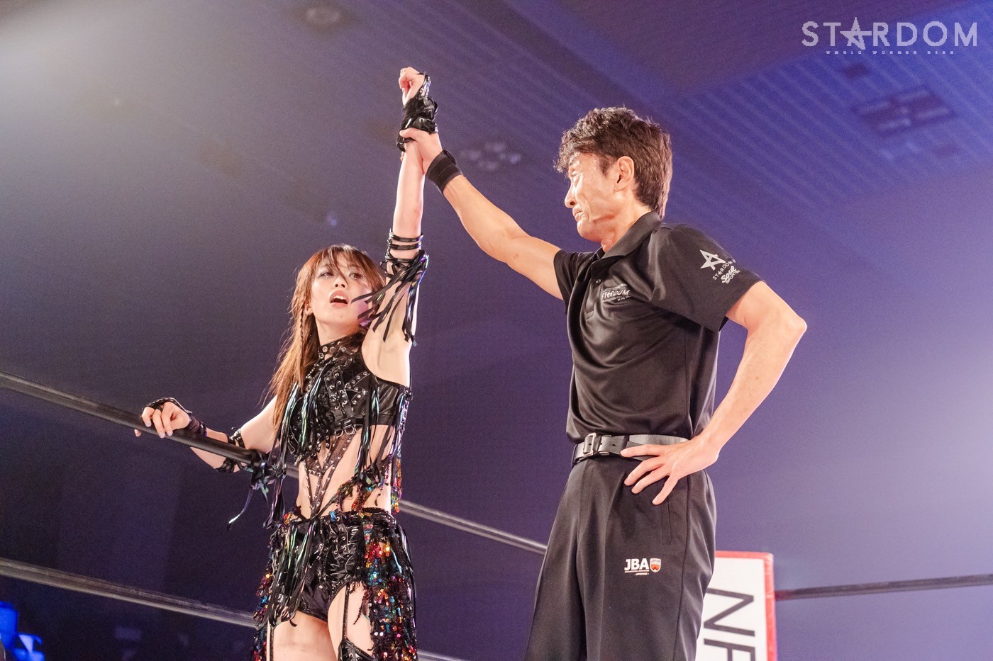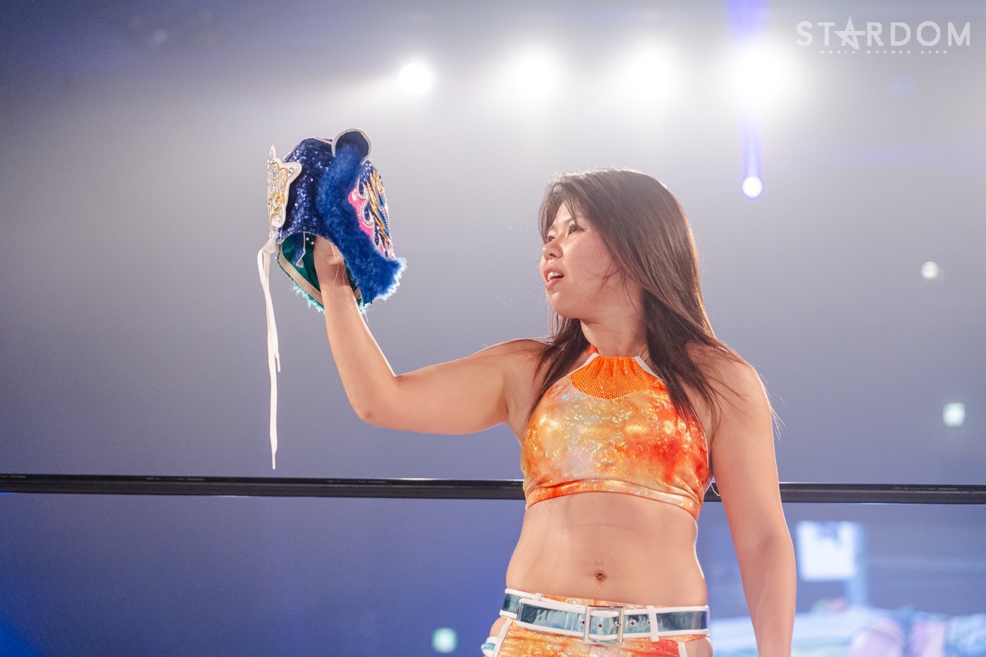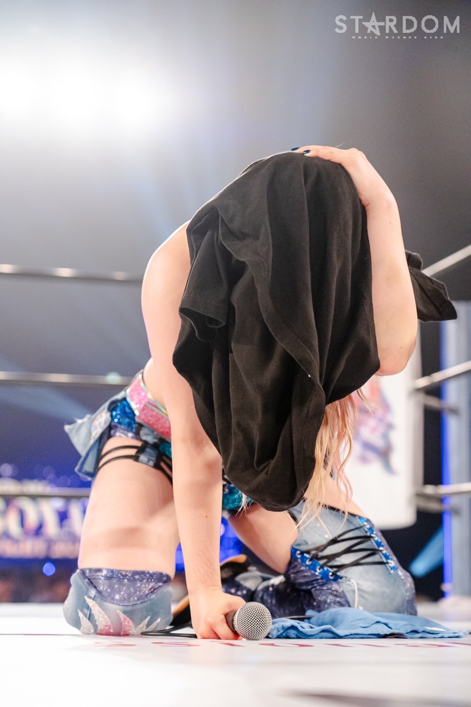天咲「スターダムの超新星でデビューしてこのベルト目標にしてここまで頑張ってきて、もう超新星の役目は果たしたかなって。でも、これからもこのベルトと一緒にともに成長していきます」