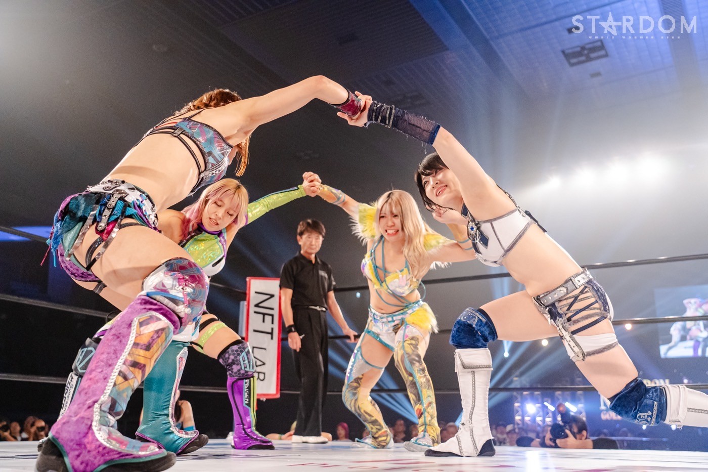 ネオジェネシスの星来芽依&AZM組、ゴッズアイの朱里&レディ・C組、コズミックエンジェルズの安納サオリ&さくらあや組、STARSの羽南&飯田沙耶組が一度にぶつかるタッグマッチでの4WAY戦。さまざまな要素が絡み合うなかで最後に勝ち名乗りを受けるユニットは?