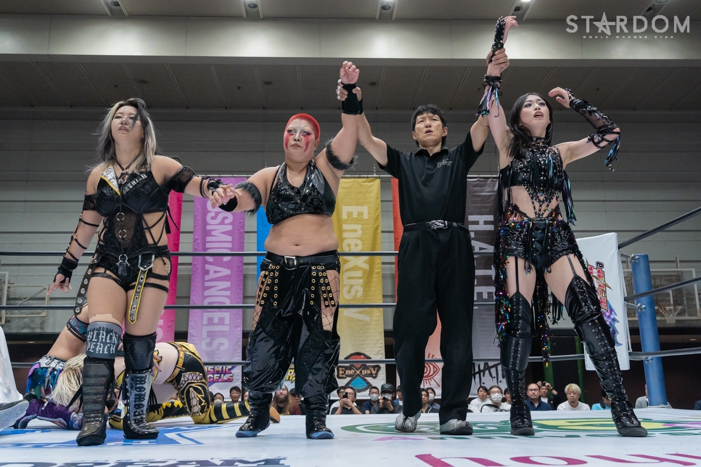 STARSの羽南、E neXus Vの梨杏、H.A.T.E.の琉悪夏が一度に闘う3WAYマッチ。フューチャー・オブ・スターダム王座をめぐり切磋琢磨してきた羽南と琉悪夏の間に新人の梨杏が入ることで、どんな化学反応が見られるか?