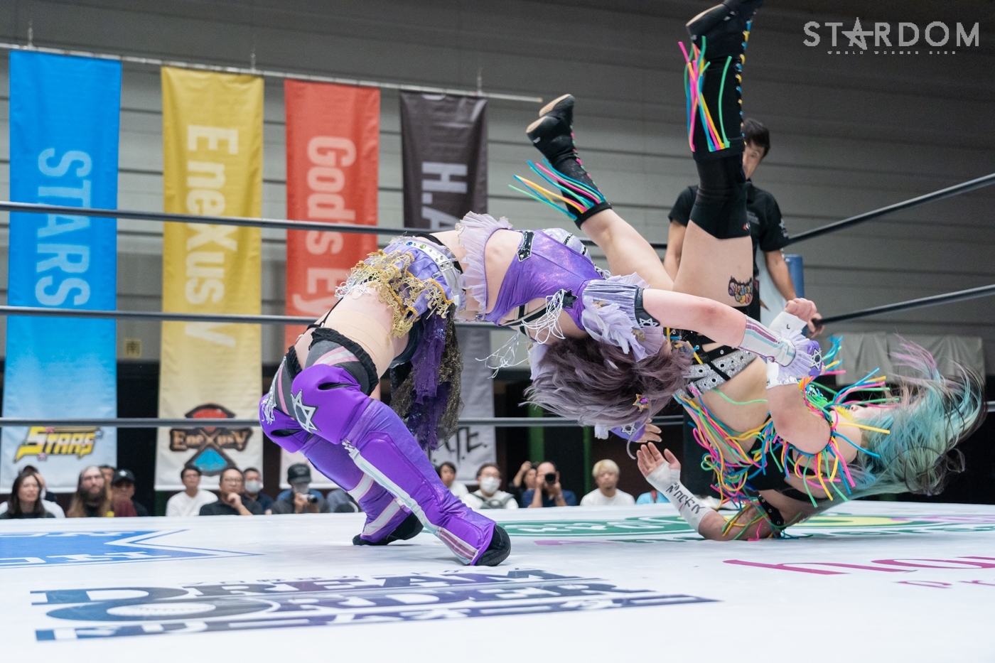 STARSの岩谷麻優&向後桃組とE neXus Vの月山和香&HANAKO組がタッグで対戦。