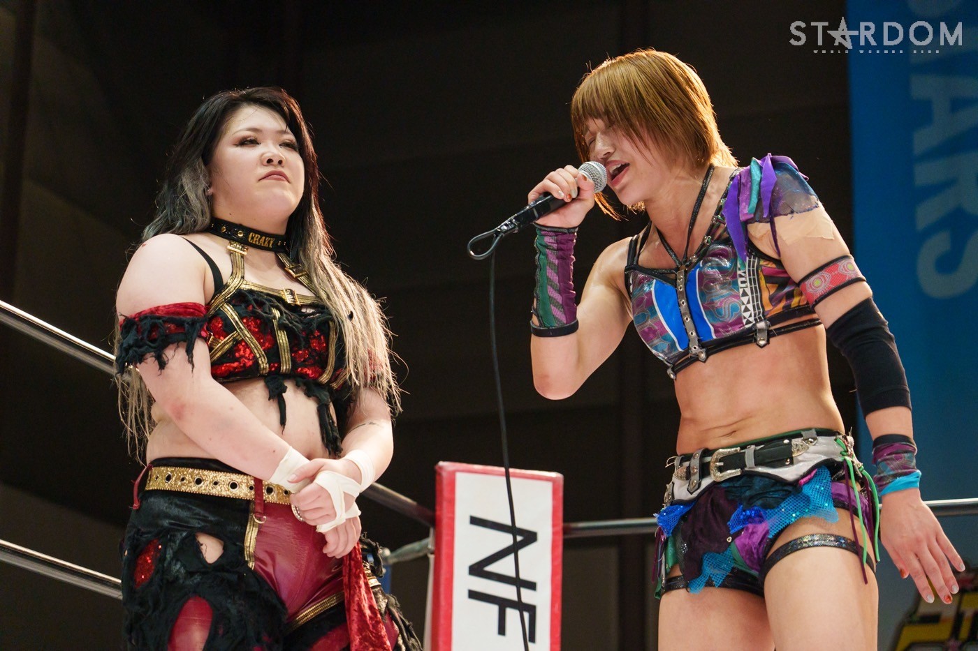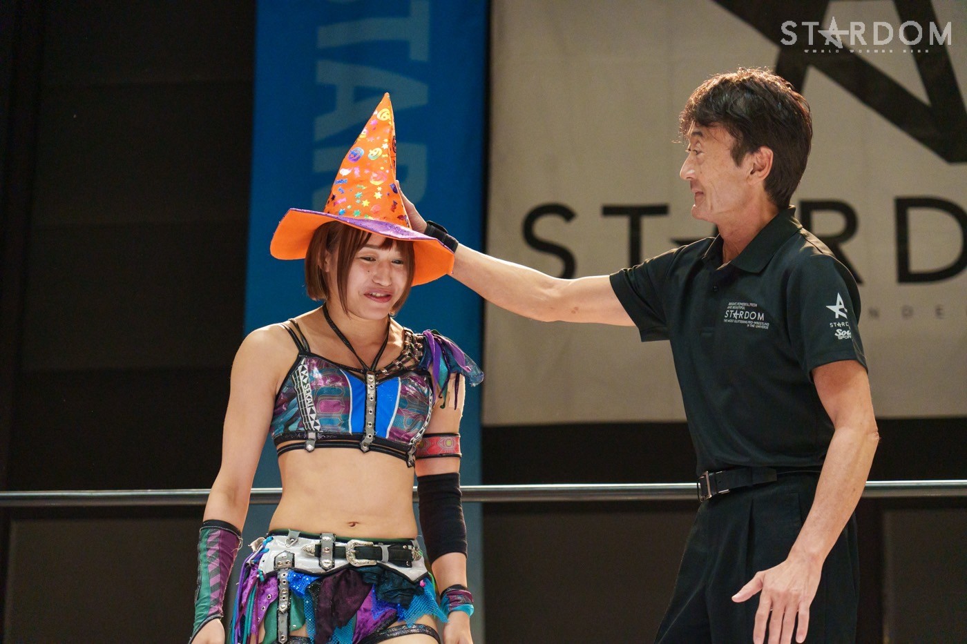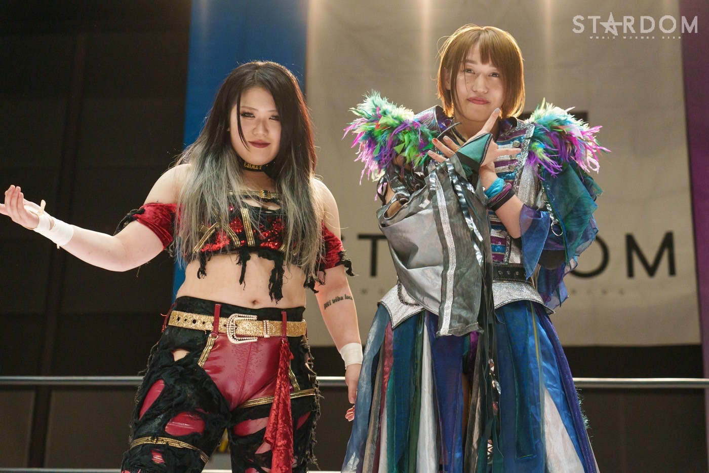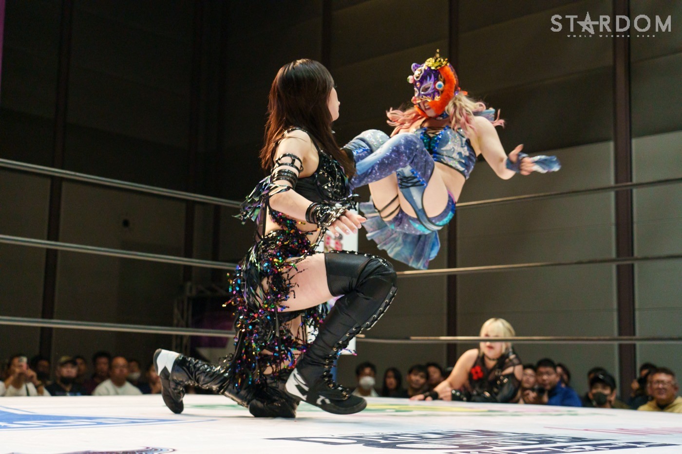 朱里「待って待って。(白川に)マジで誰ですか? みなさんこんにちは! そして、ハロウィーンの日にスターダムを選んでくれてありがとうございます。なかなかすずと組むことがないんだけど、ちょっと私的には楽しかった。(鈴季に)聞かせて。聞きたい」